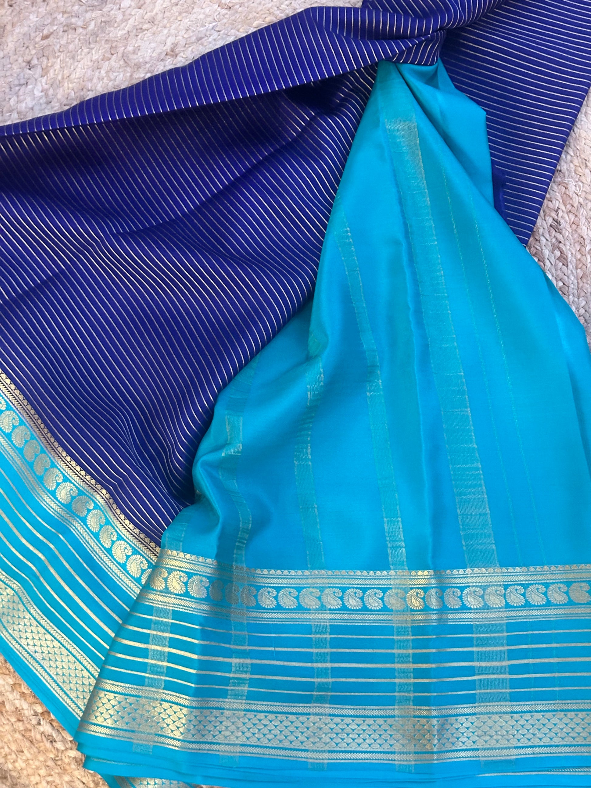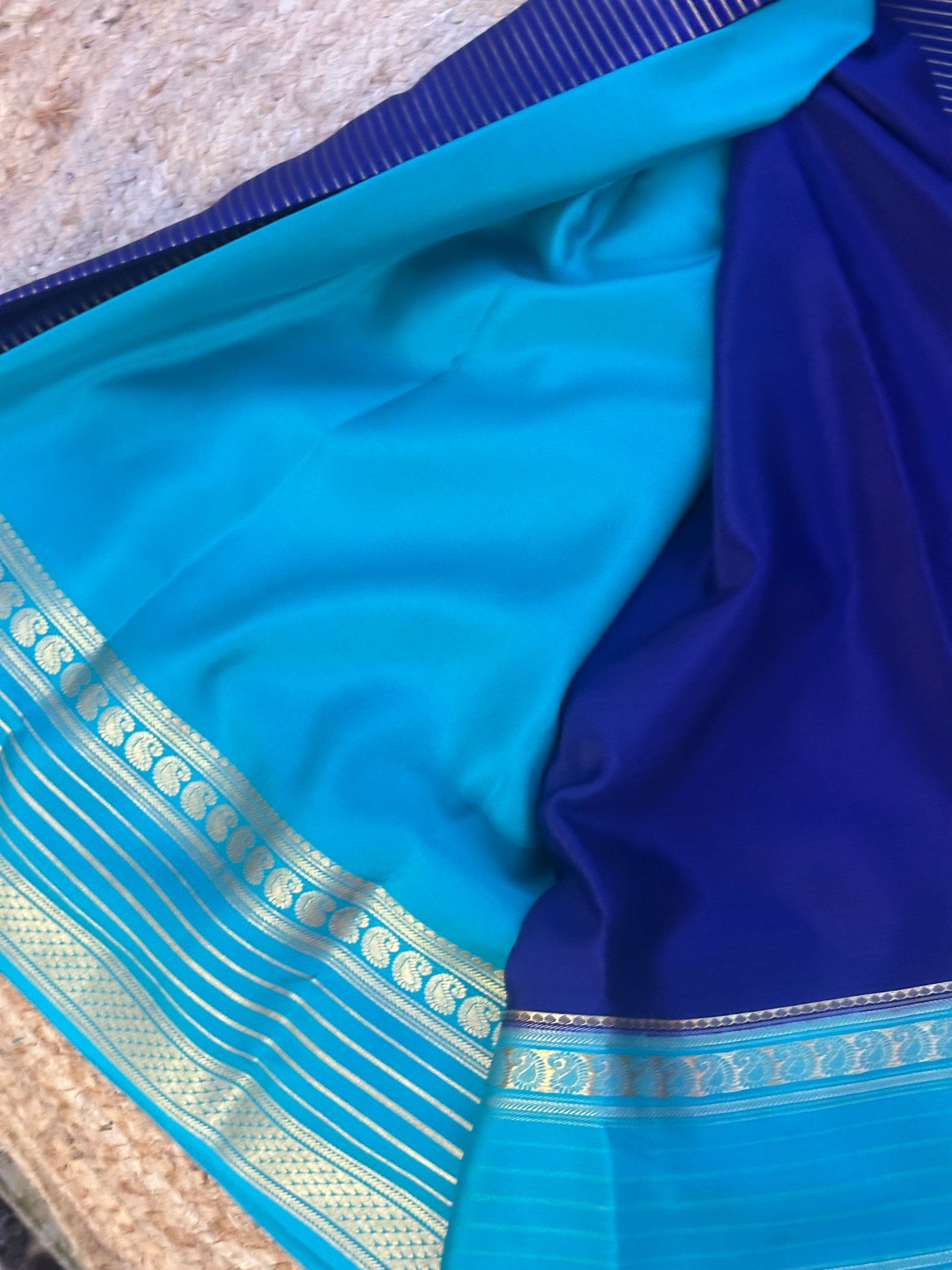 Deep blue and sky blue pure crepe Mysore Silk sarees 120 gsm