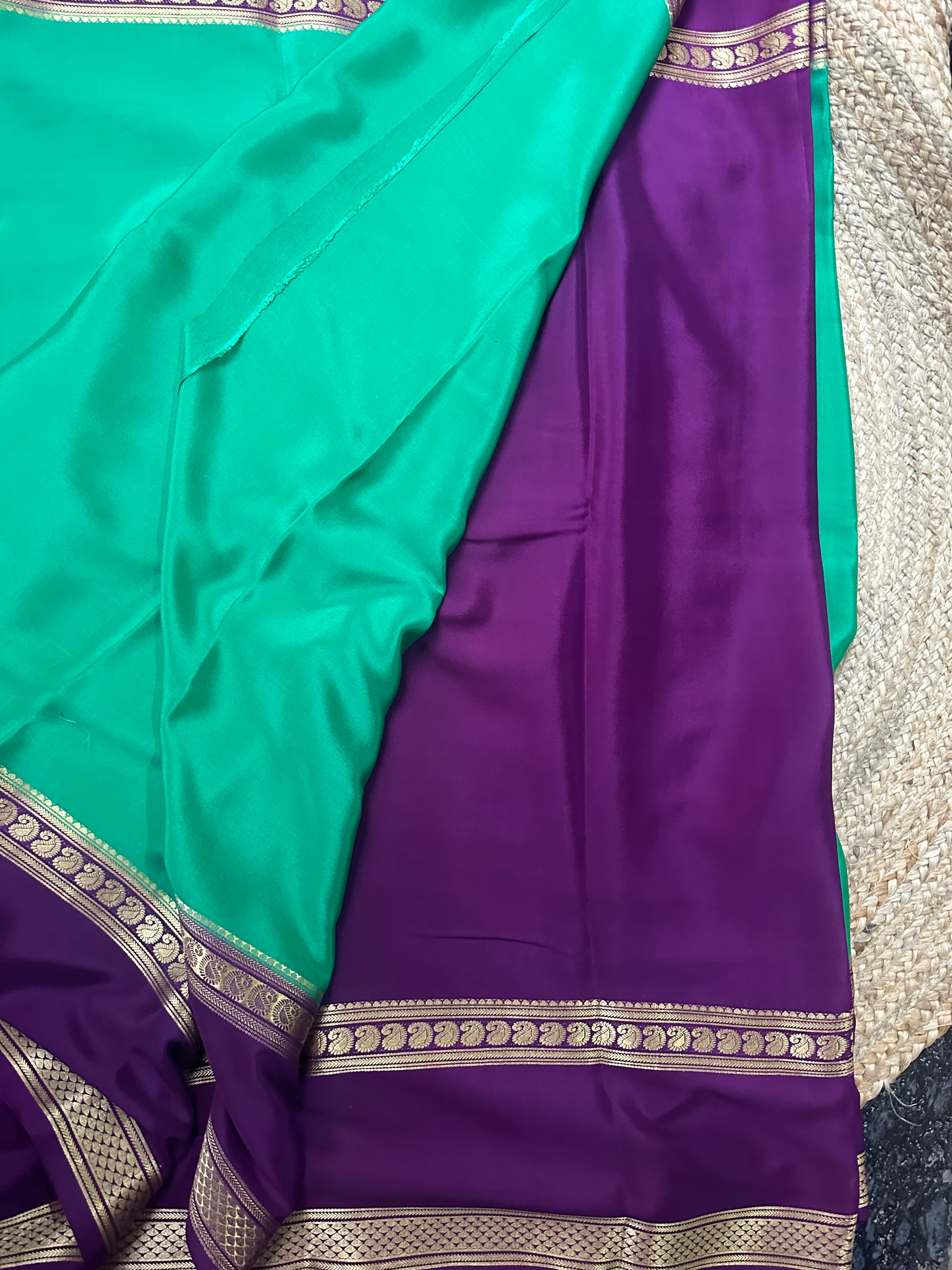 Distemper green with mejentha pure crepe Mysore Silk sarees. 120 gsm