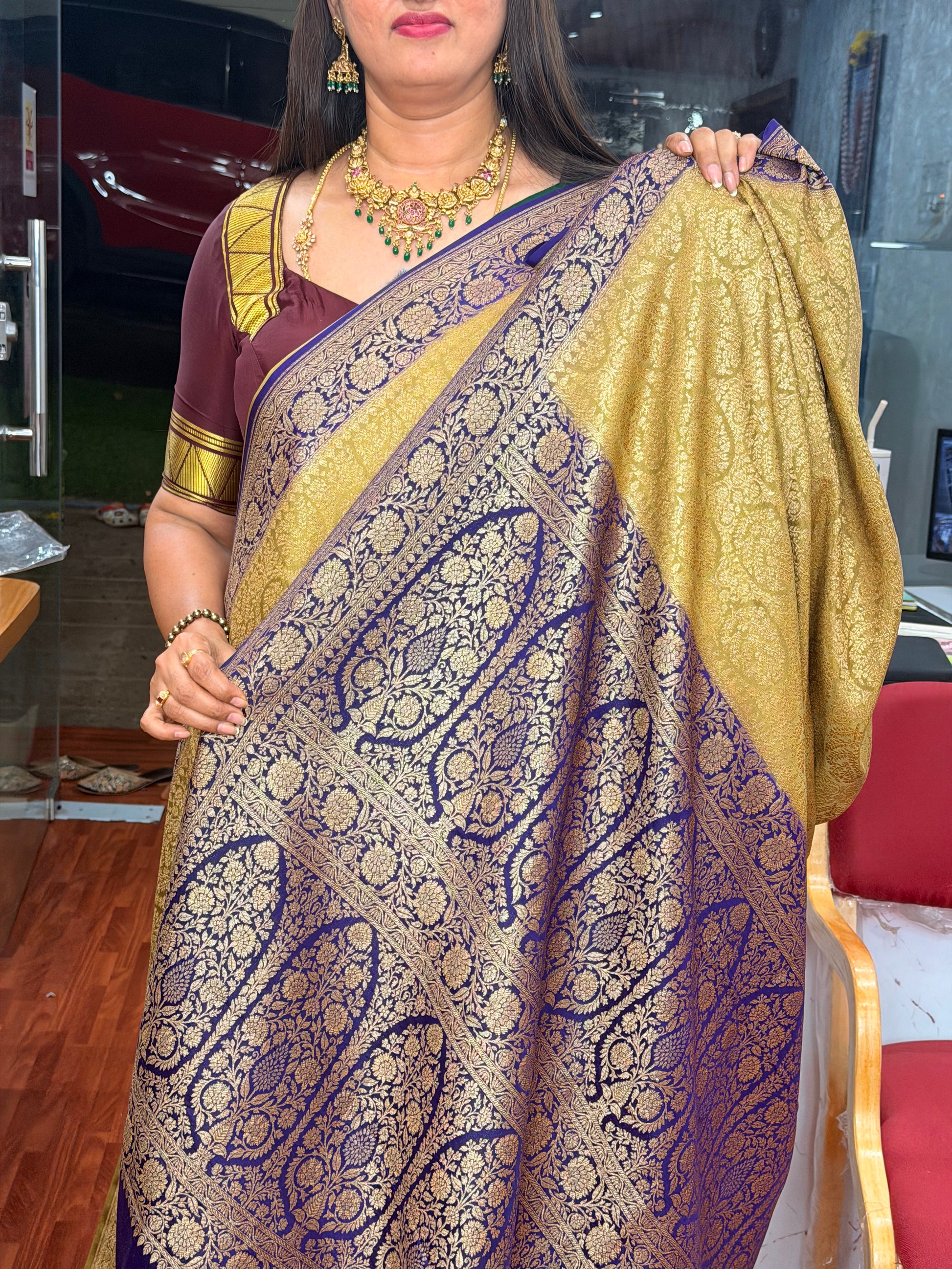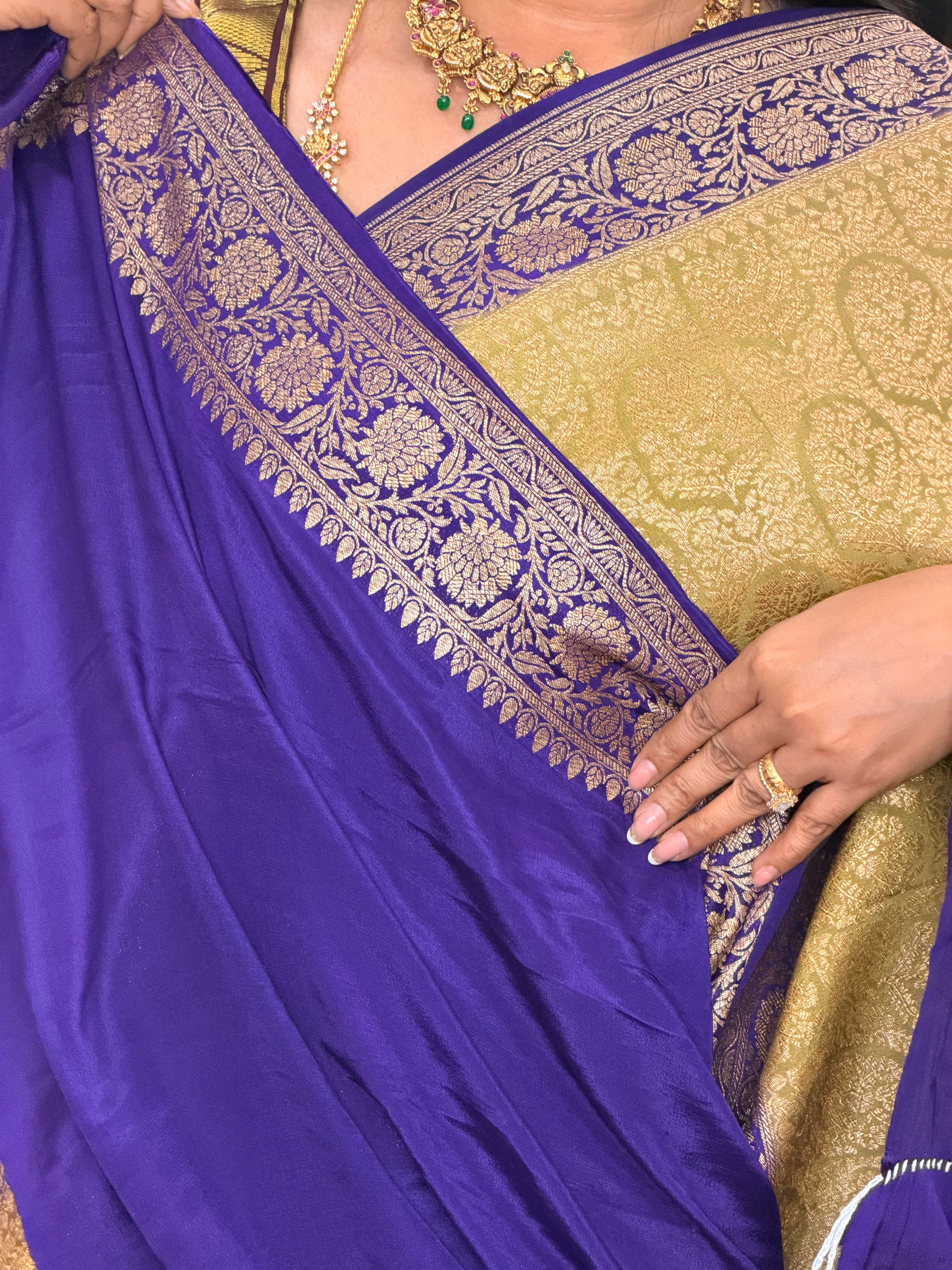 Gold with purple pure brocade crepe banaras silk sarees
