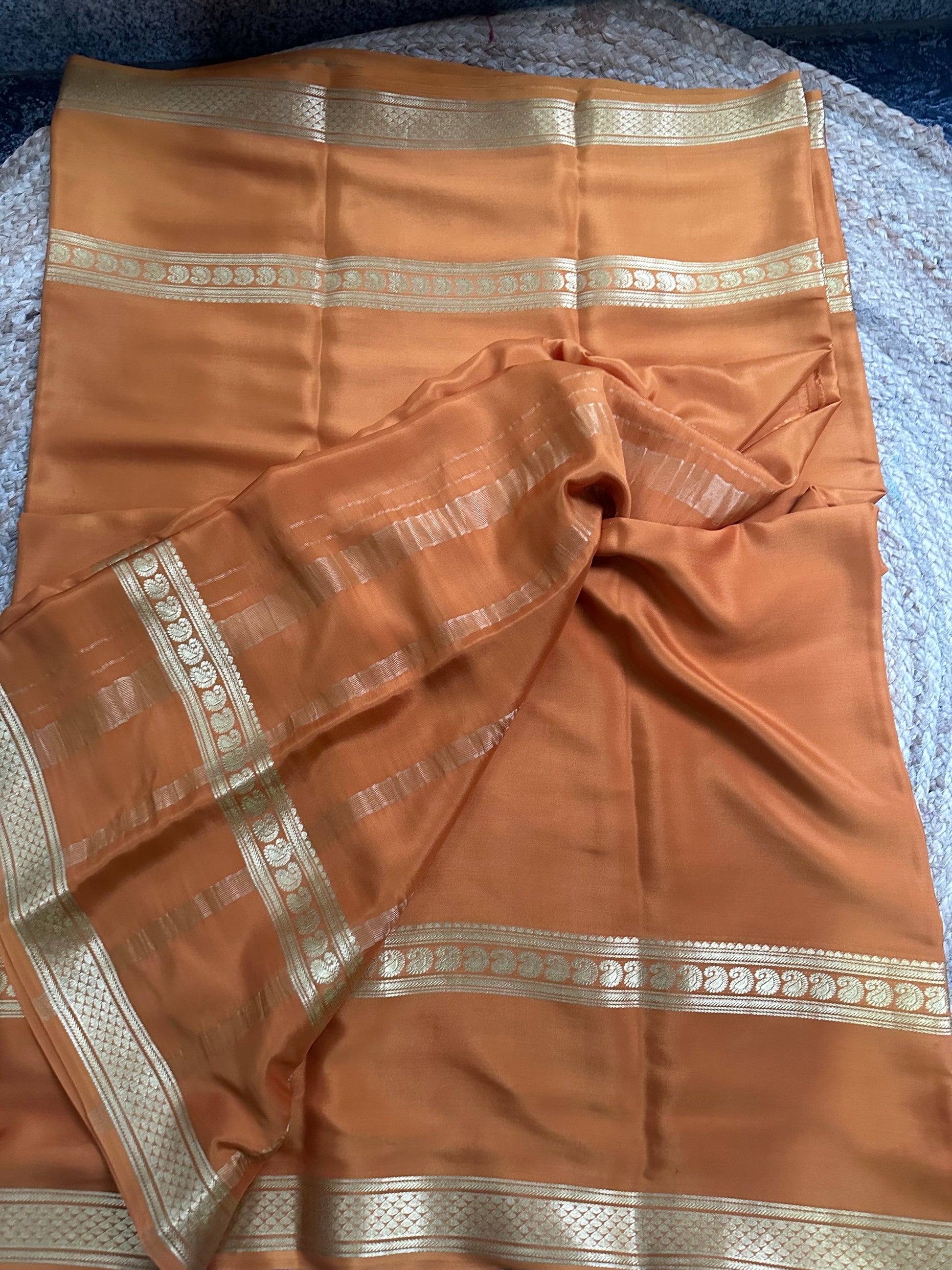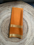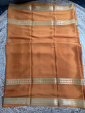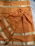 Golden mustard self bentex border pure crepe Mysore Silk sarees.