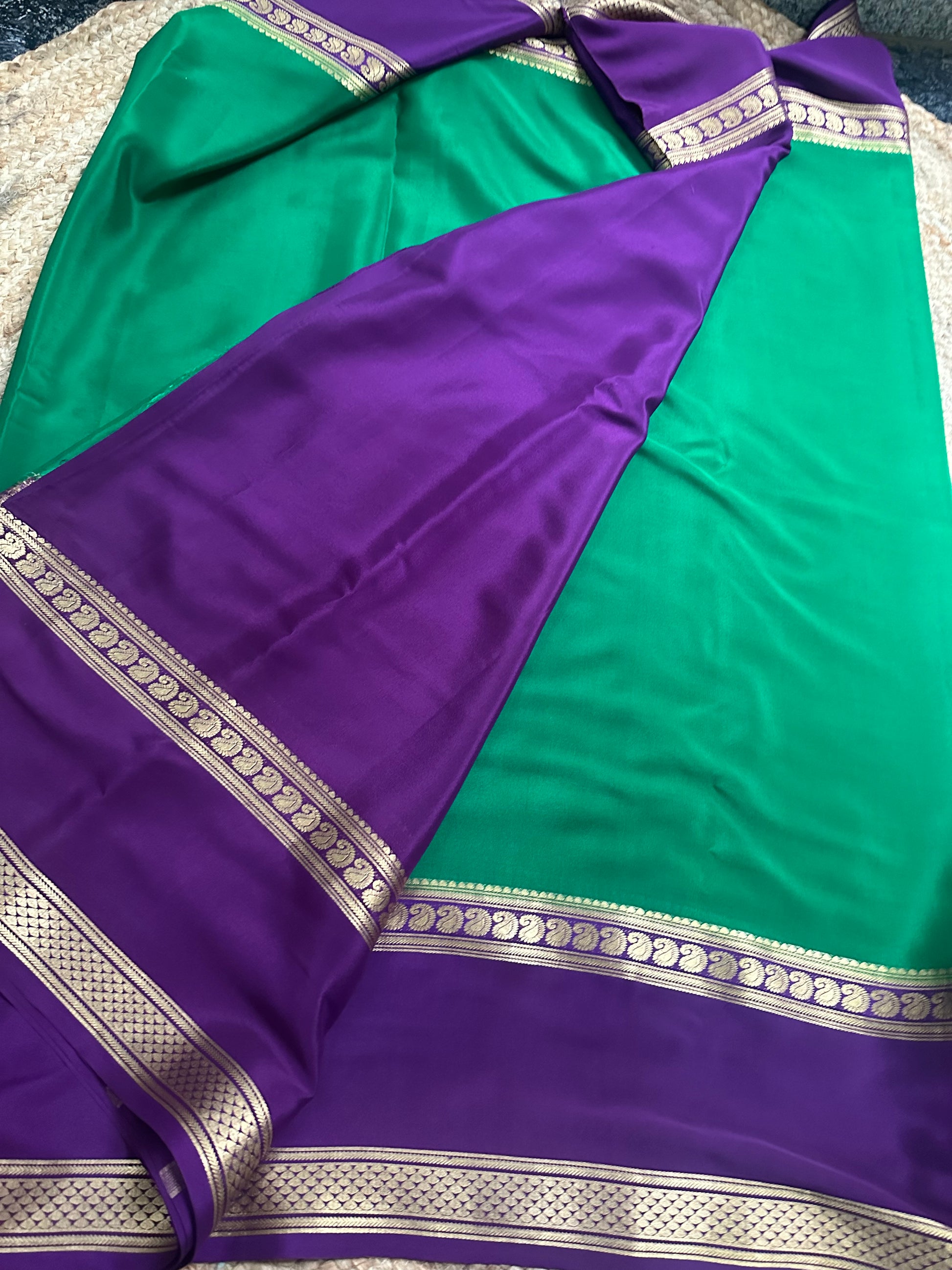 Green and mejentha pure crepe Mysore Silk sarees. 120 gsm.