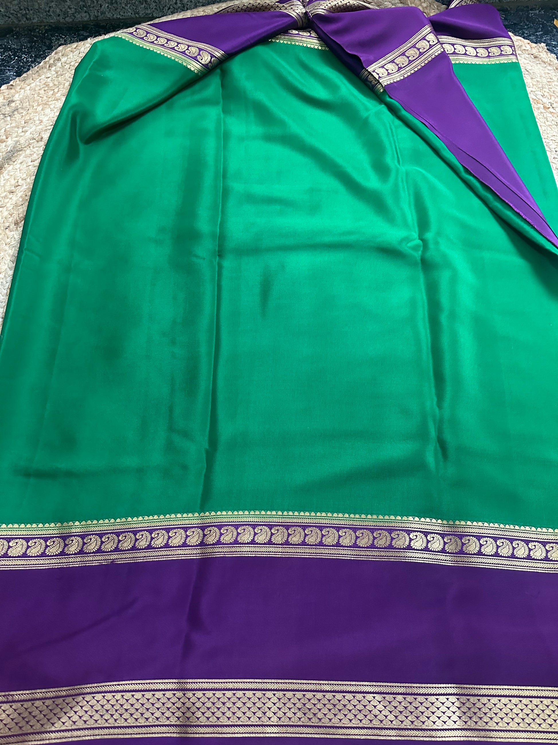 Green with mejentha pure crepe Mysore Silk sarees. 120 gsm