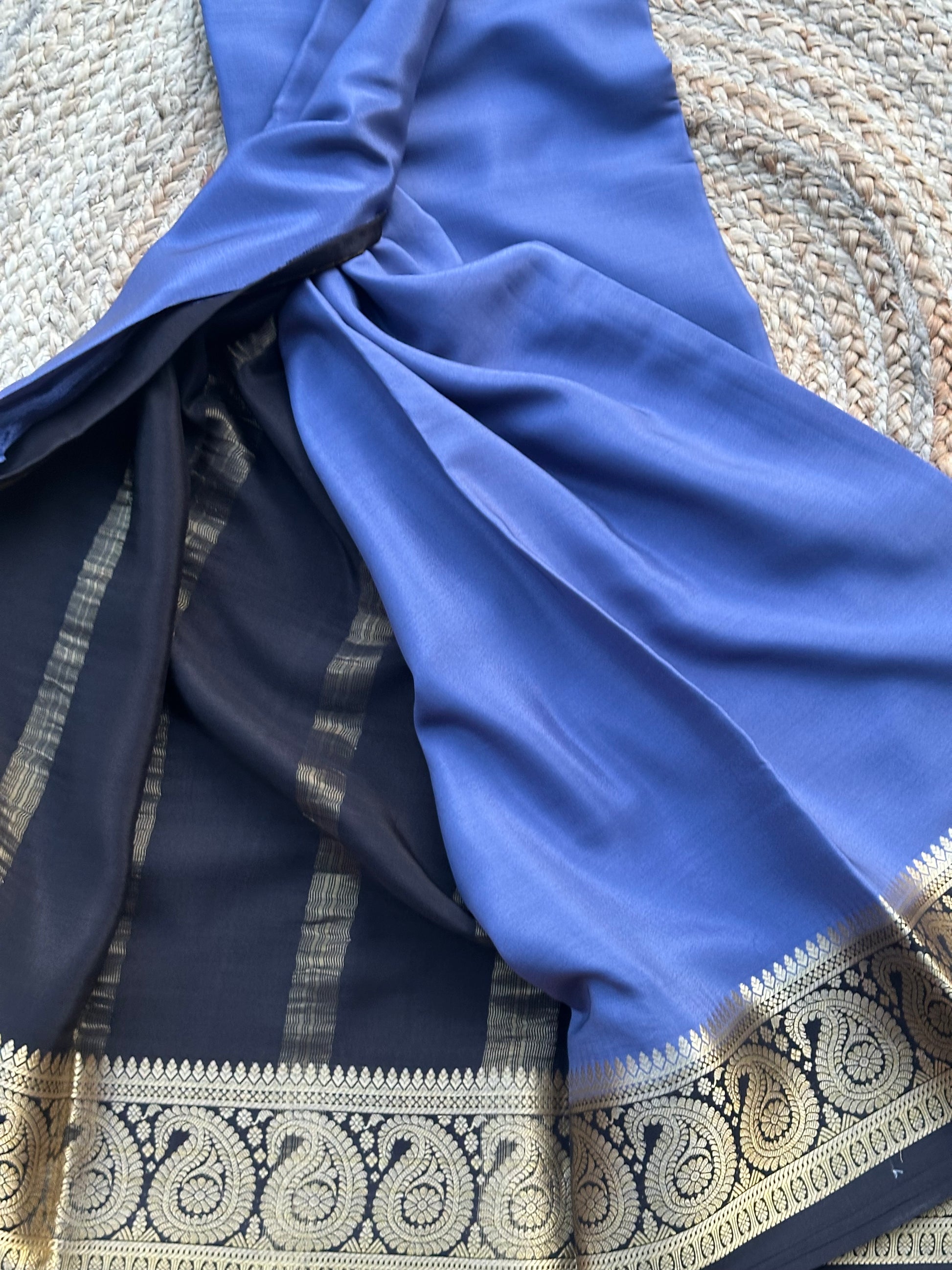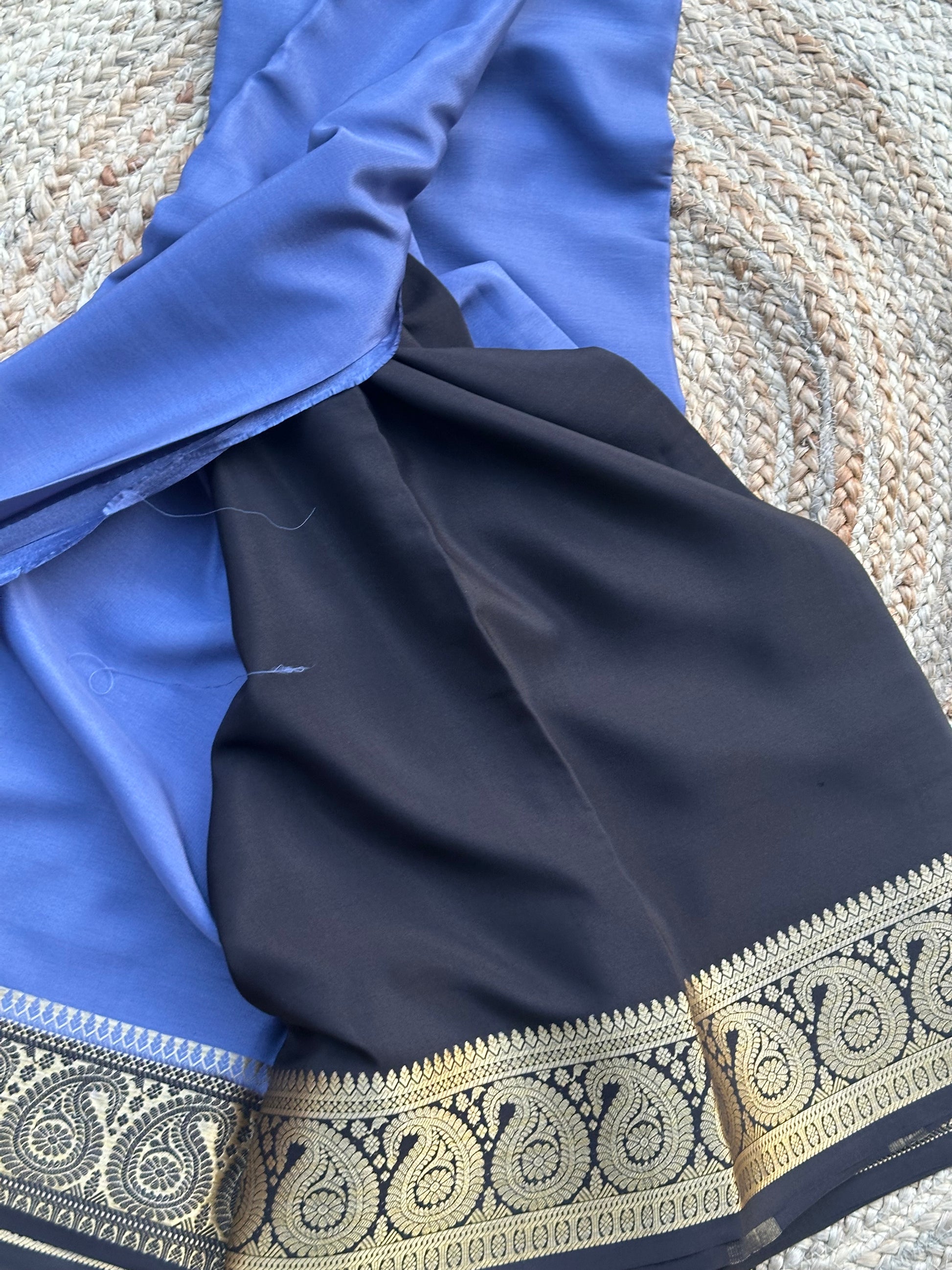 Grey with black pure crepe Mysore Silk sarees 120 gsm