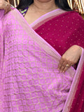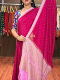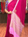 Hot pink and lotus pink pure crepe banaras