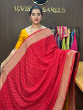 Hot Red pure crepe Banaras silk sarees. With brocade blouse