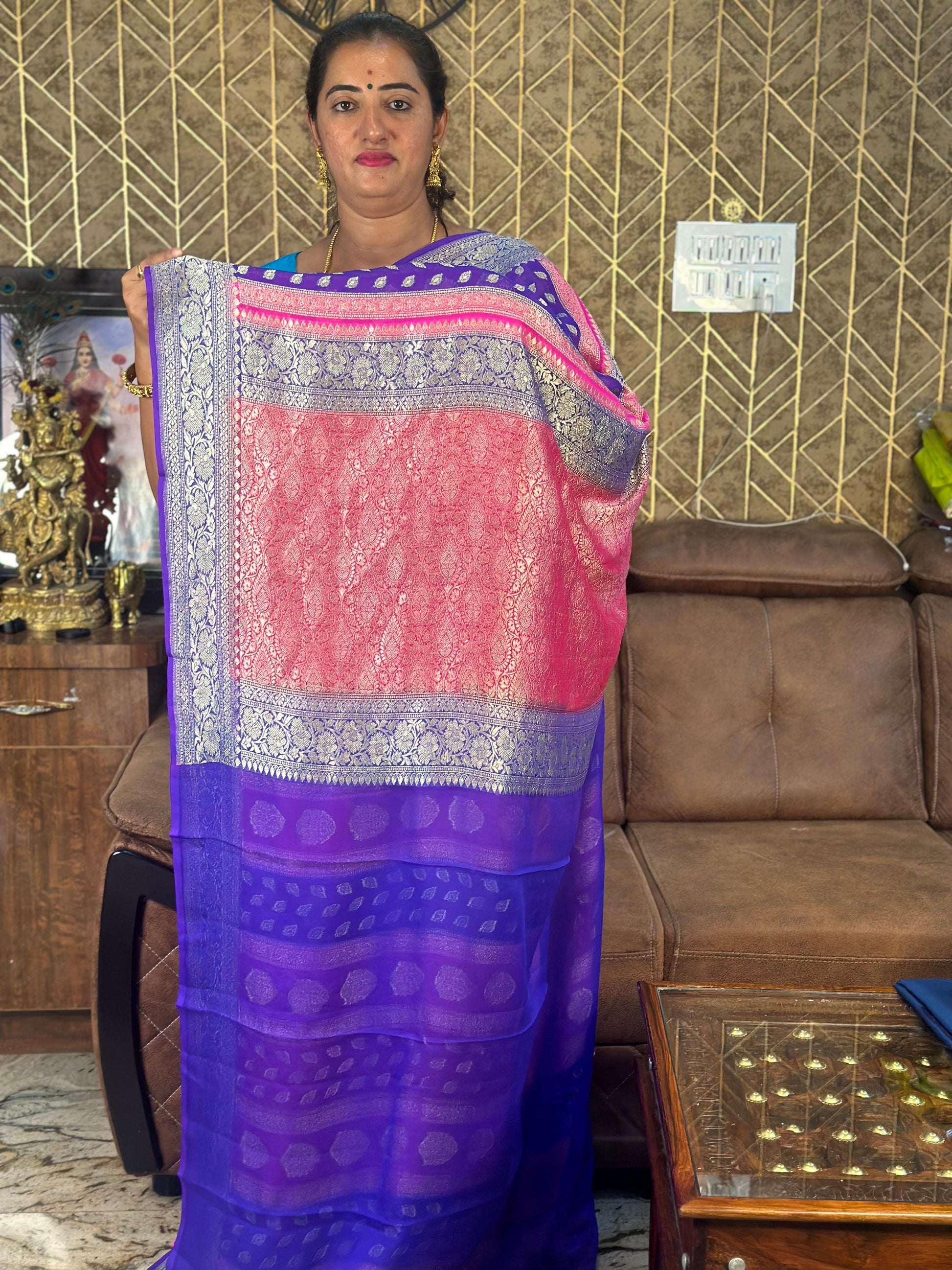 Lavender and pink Rankat Pure khaddi Georgette,hand brush water zari.