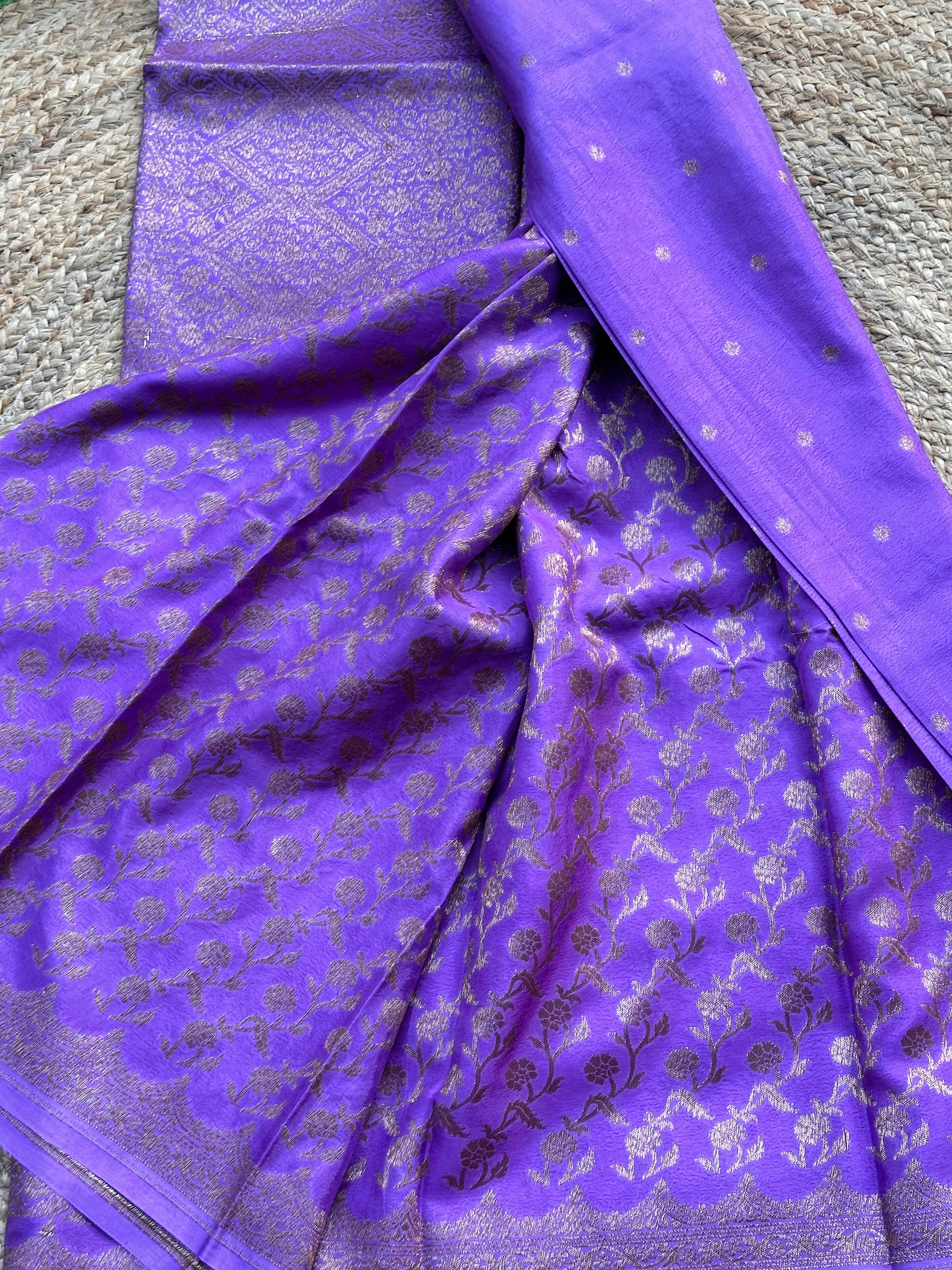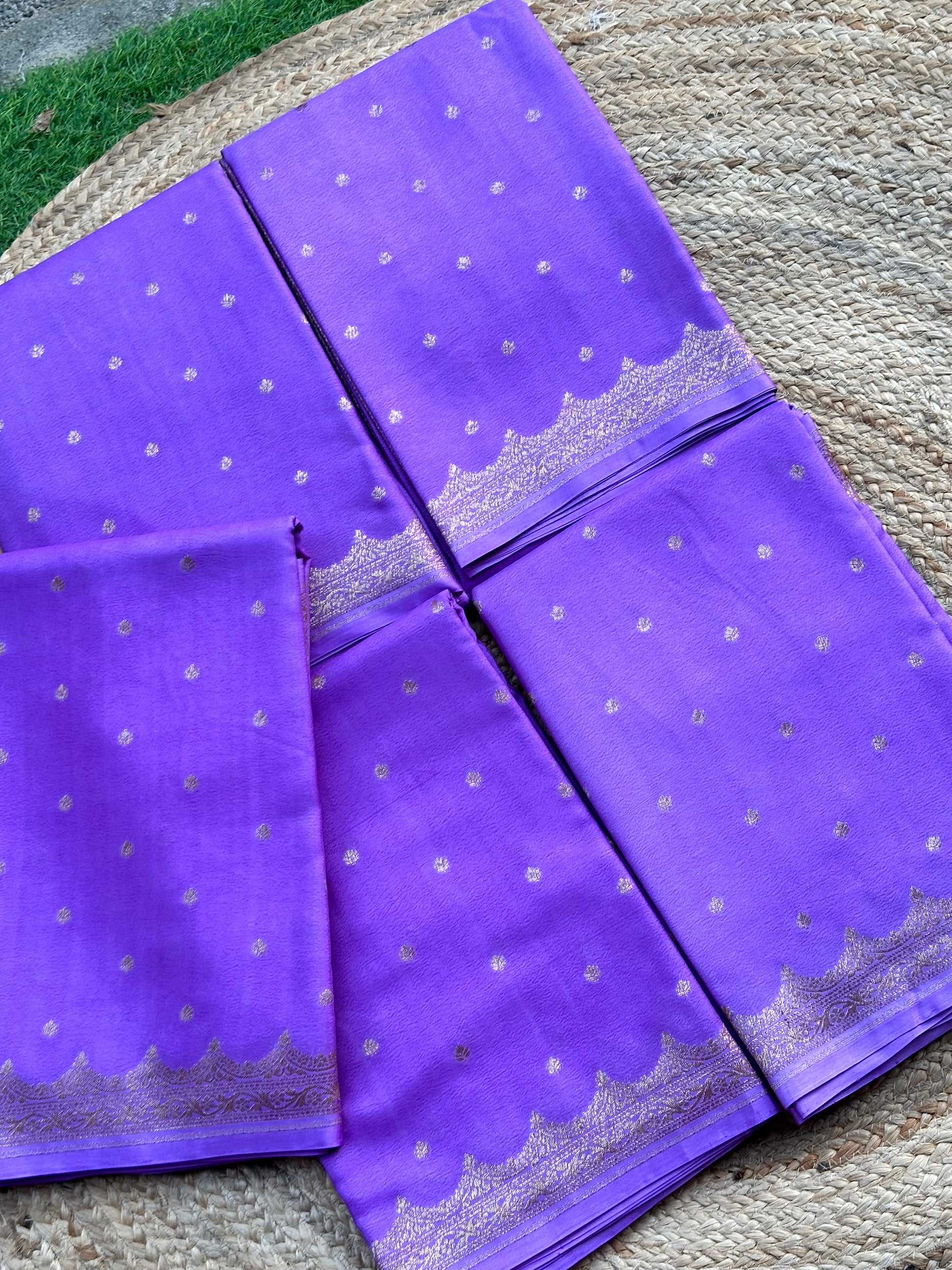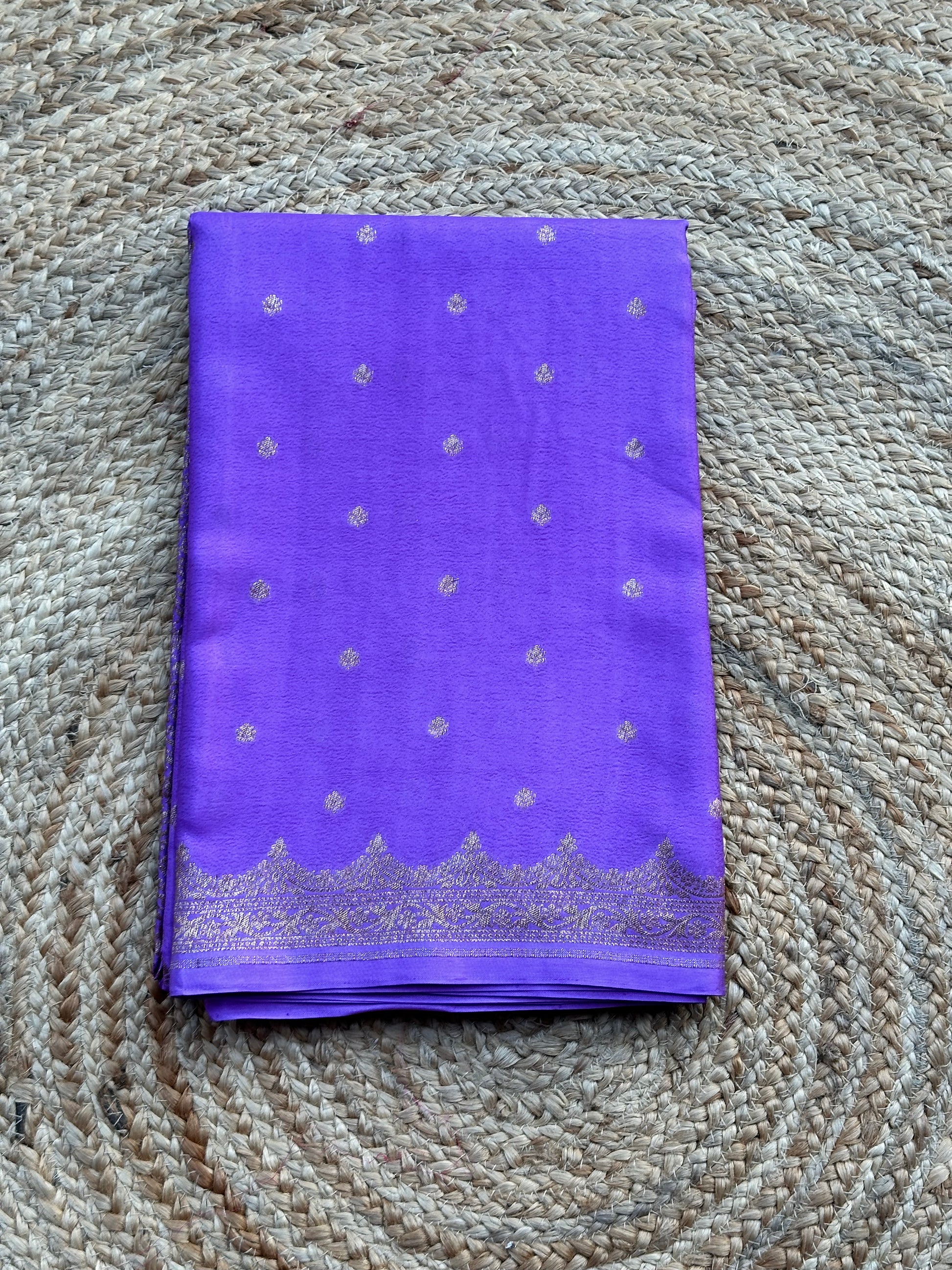 Lavender Banaras crepe chiffon sarees with brocade blouse