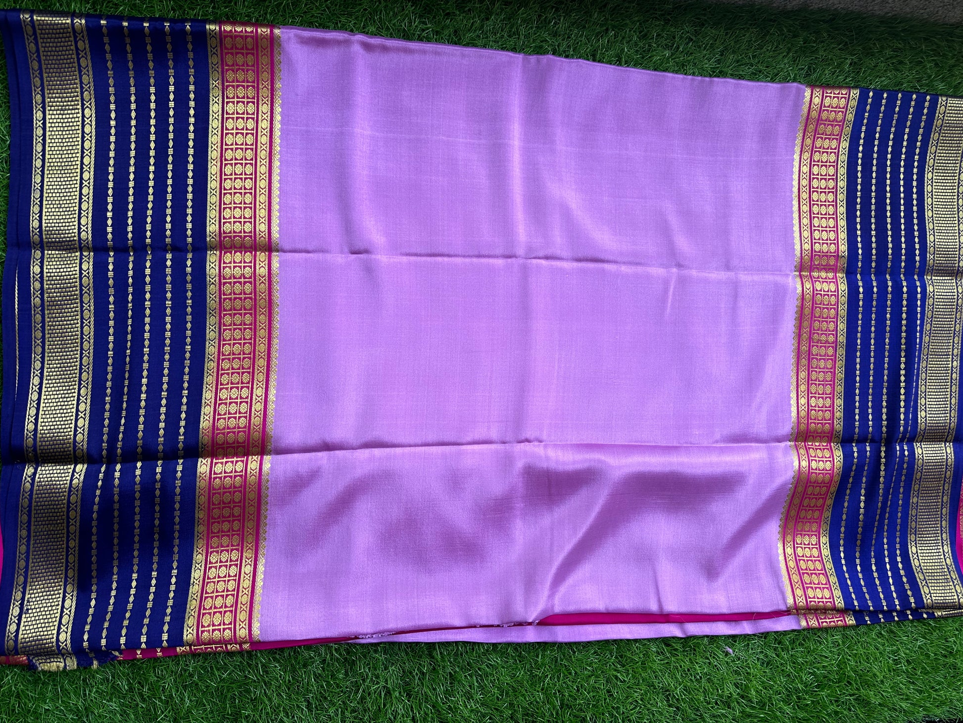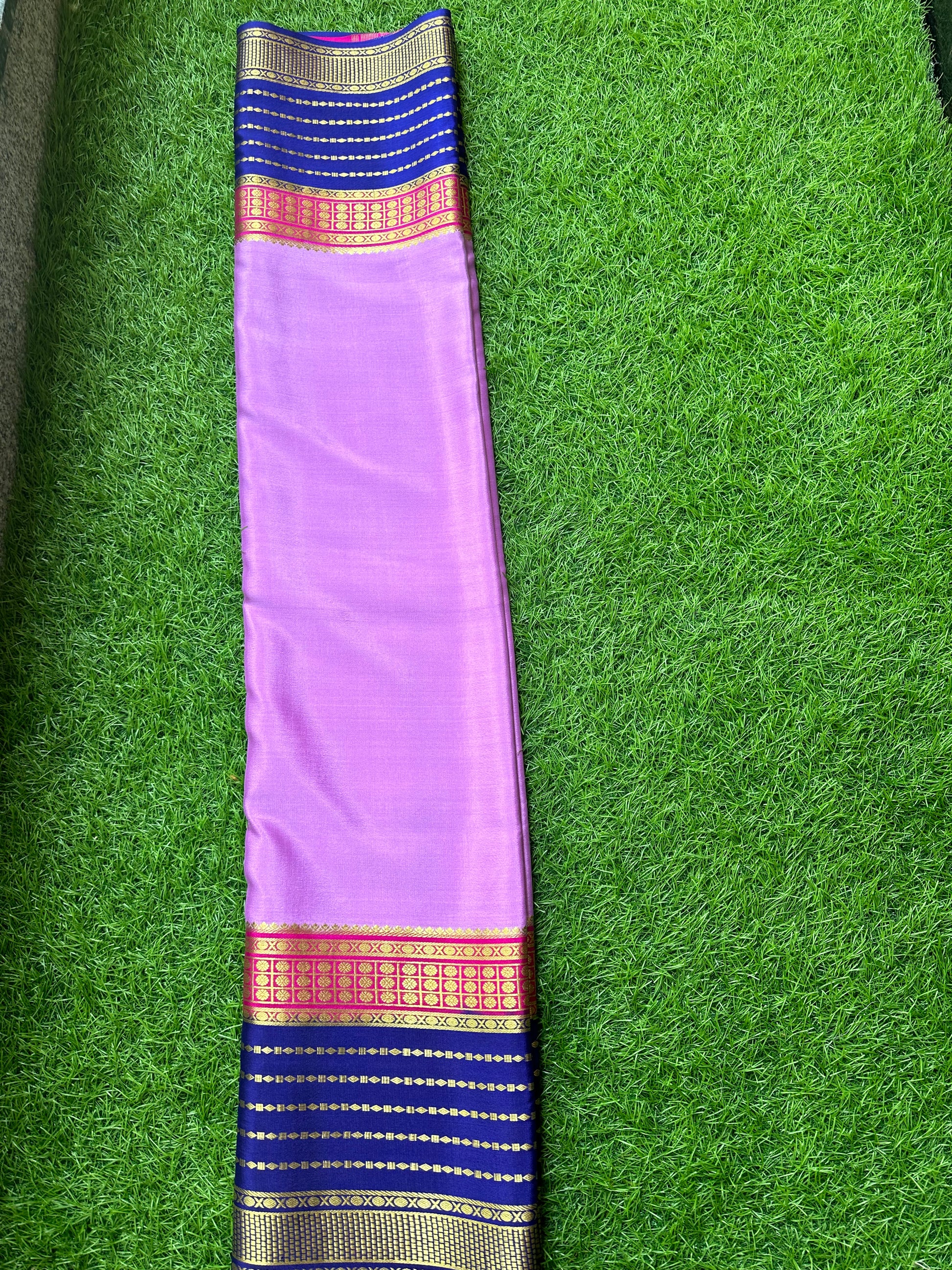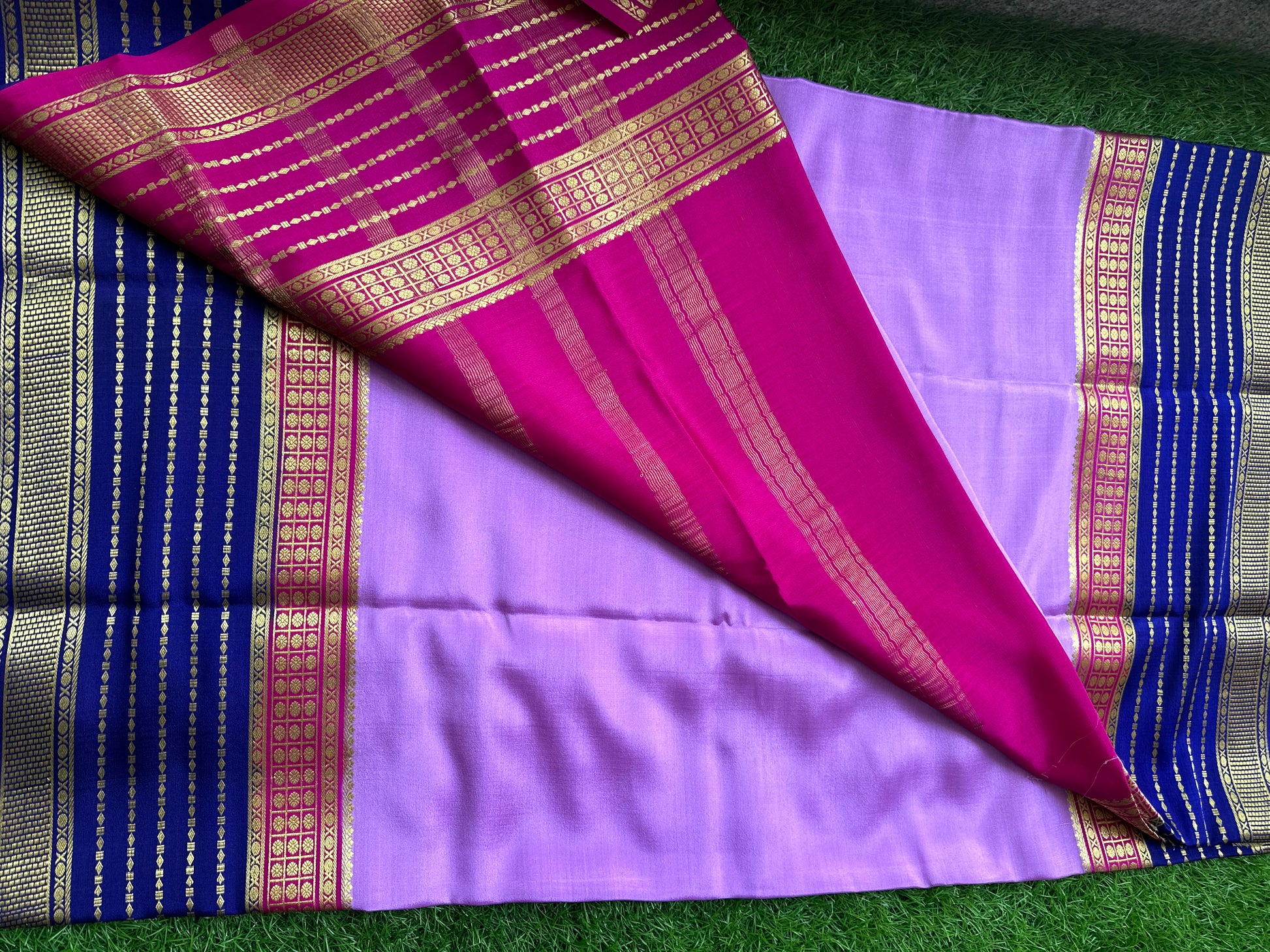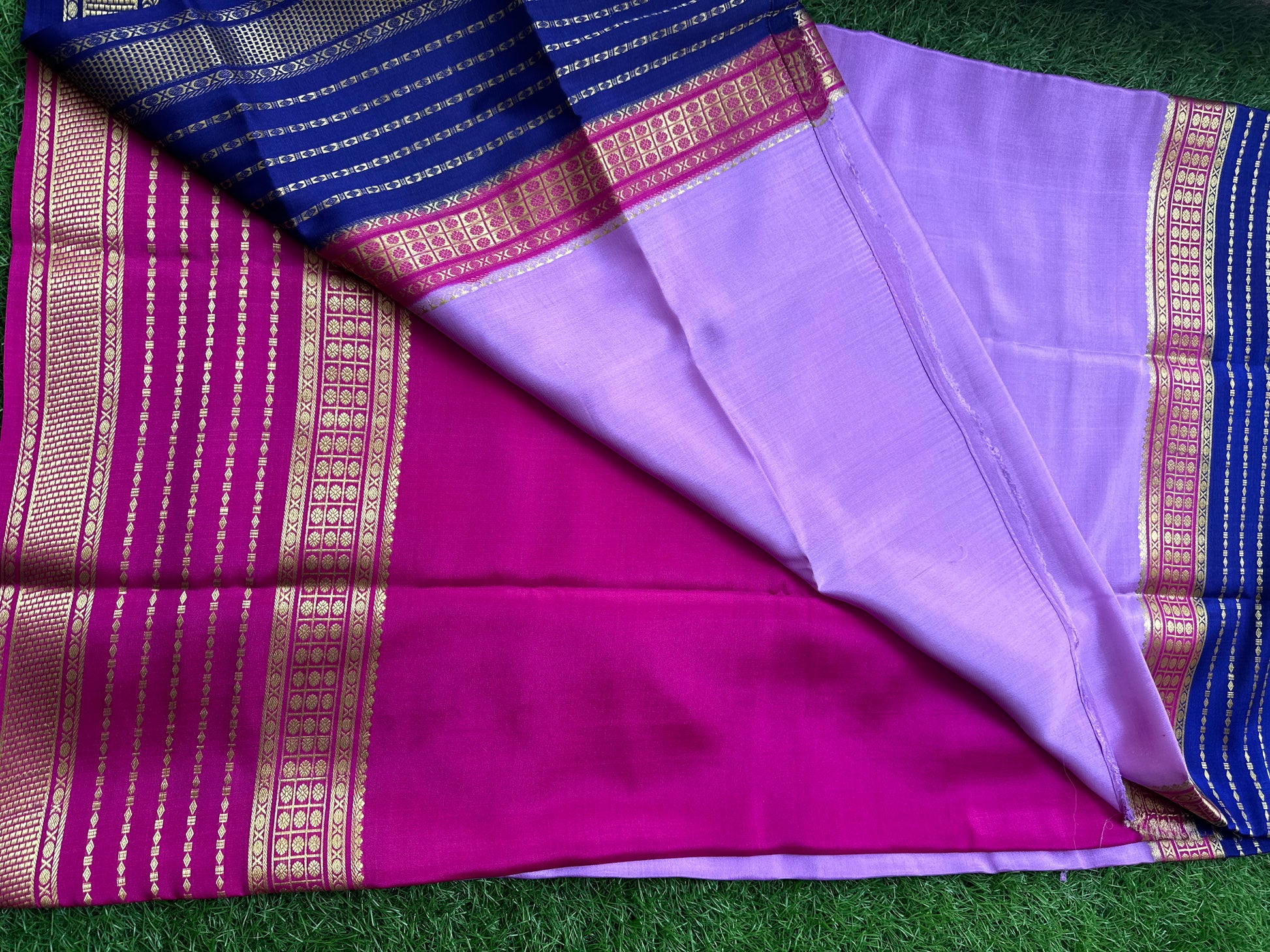 Lavender pink and navy blue,pure Mysore Silk crepe. 120 grams thickness.
