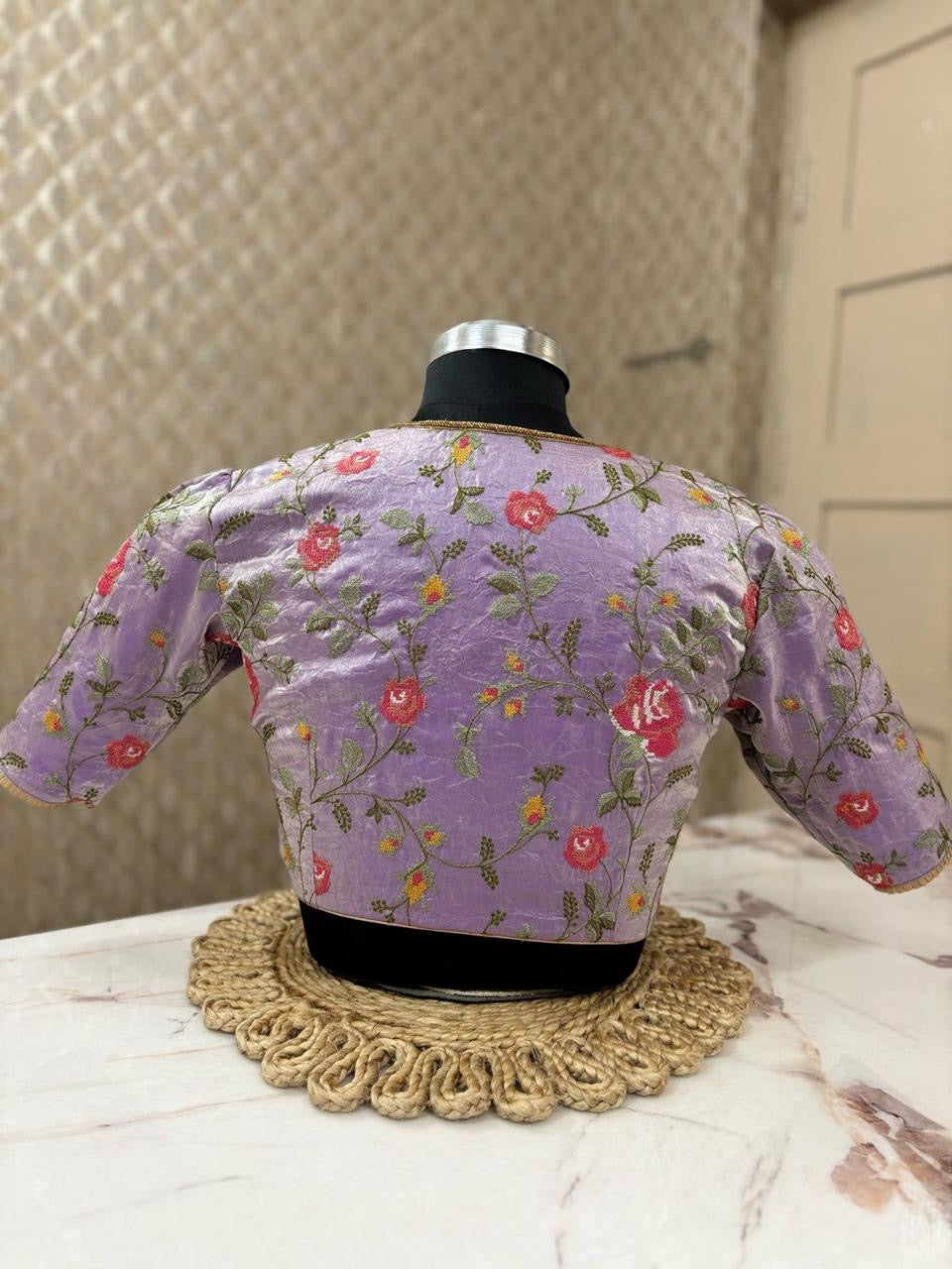 Lavender Pure tissue with cutdhana handwork ready blouse size L to XXL