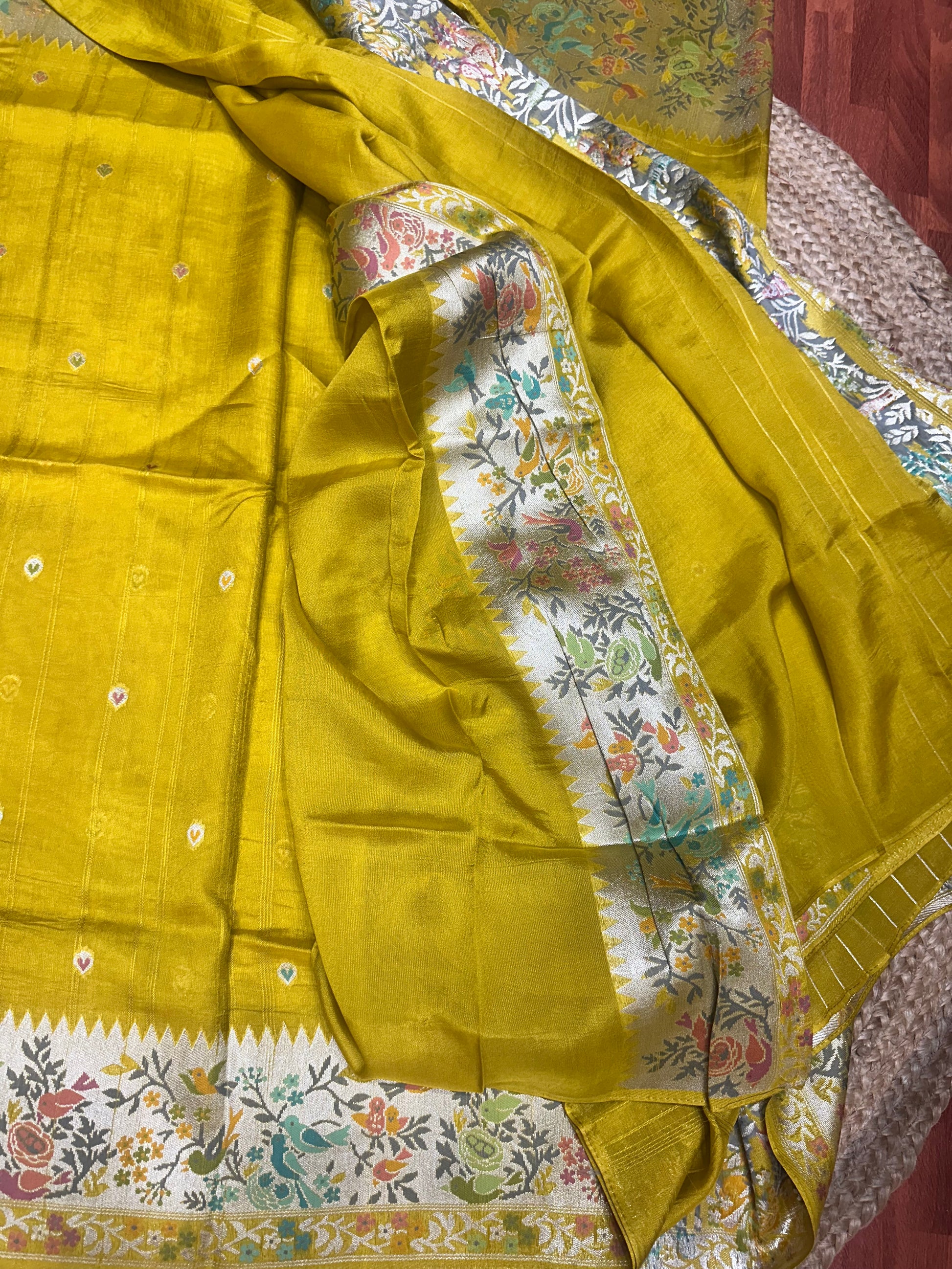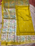 Lemon yellow tusser Paithani sarees