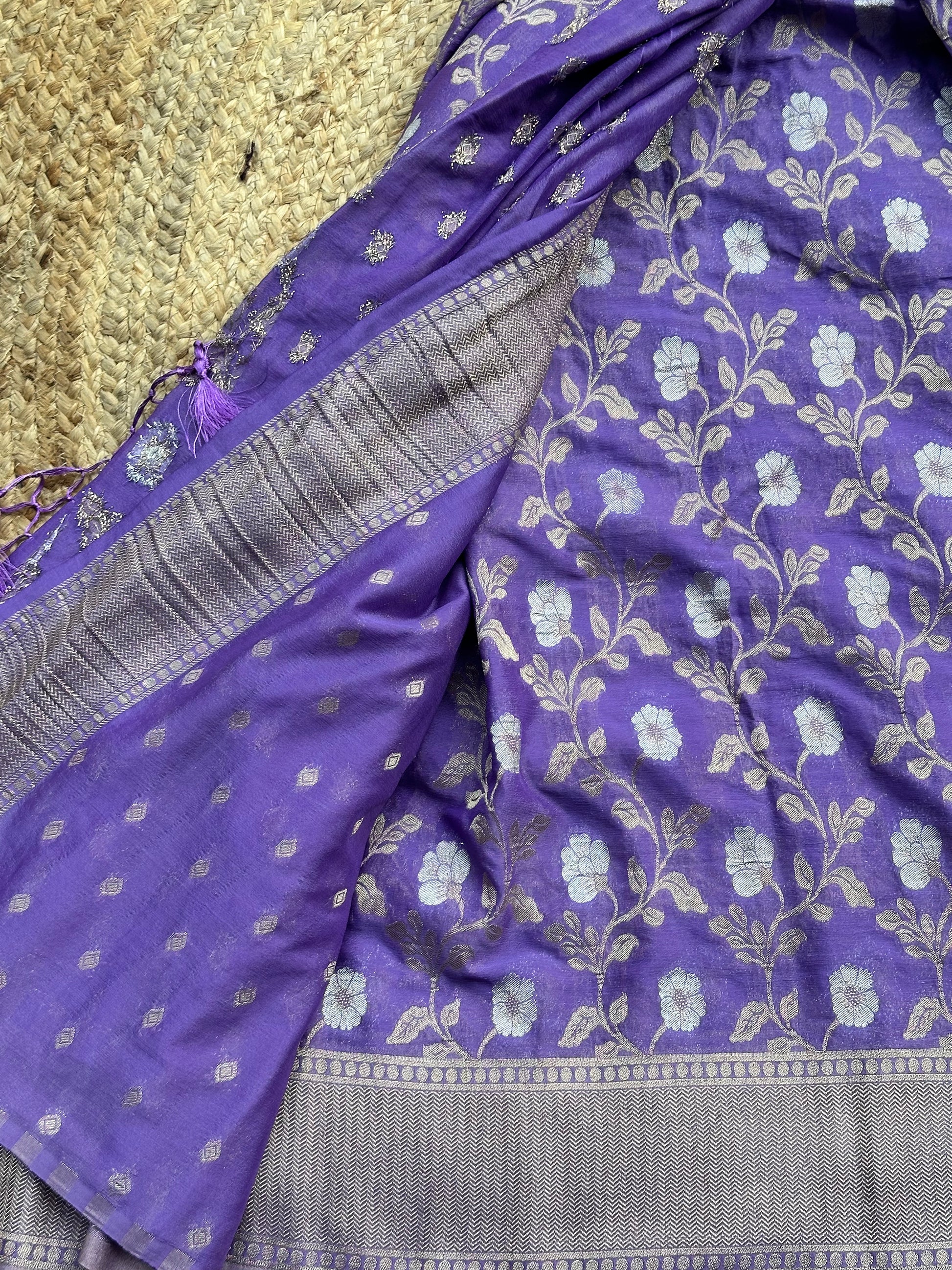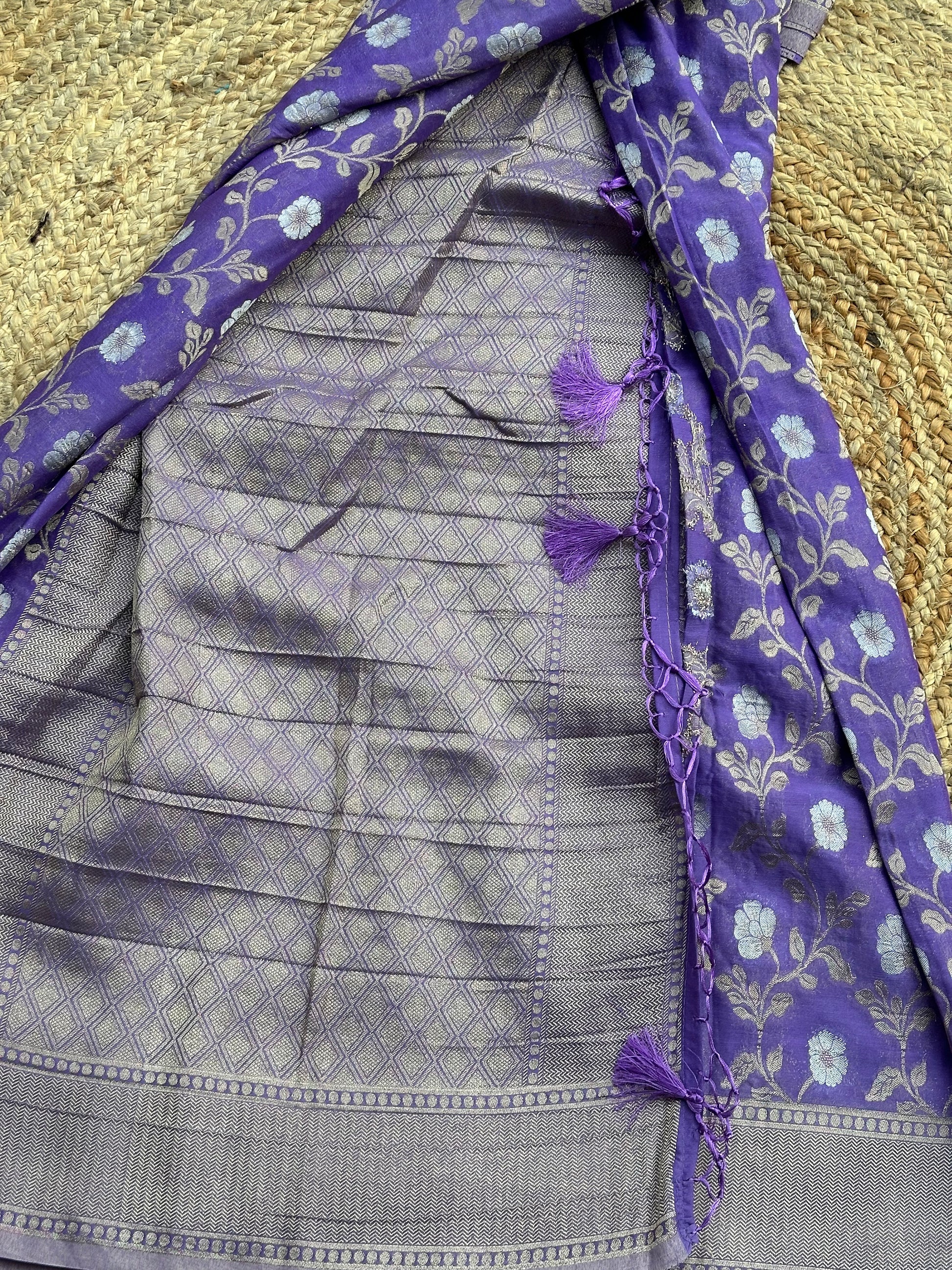 Lilac designer georgette jaal pattern