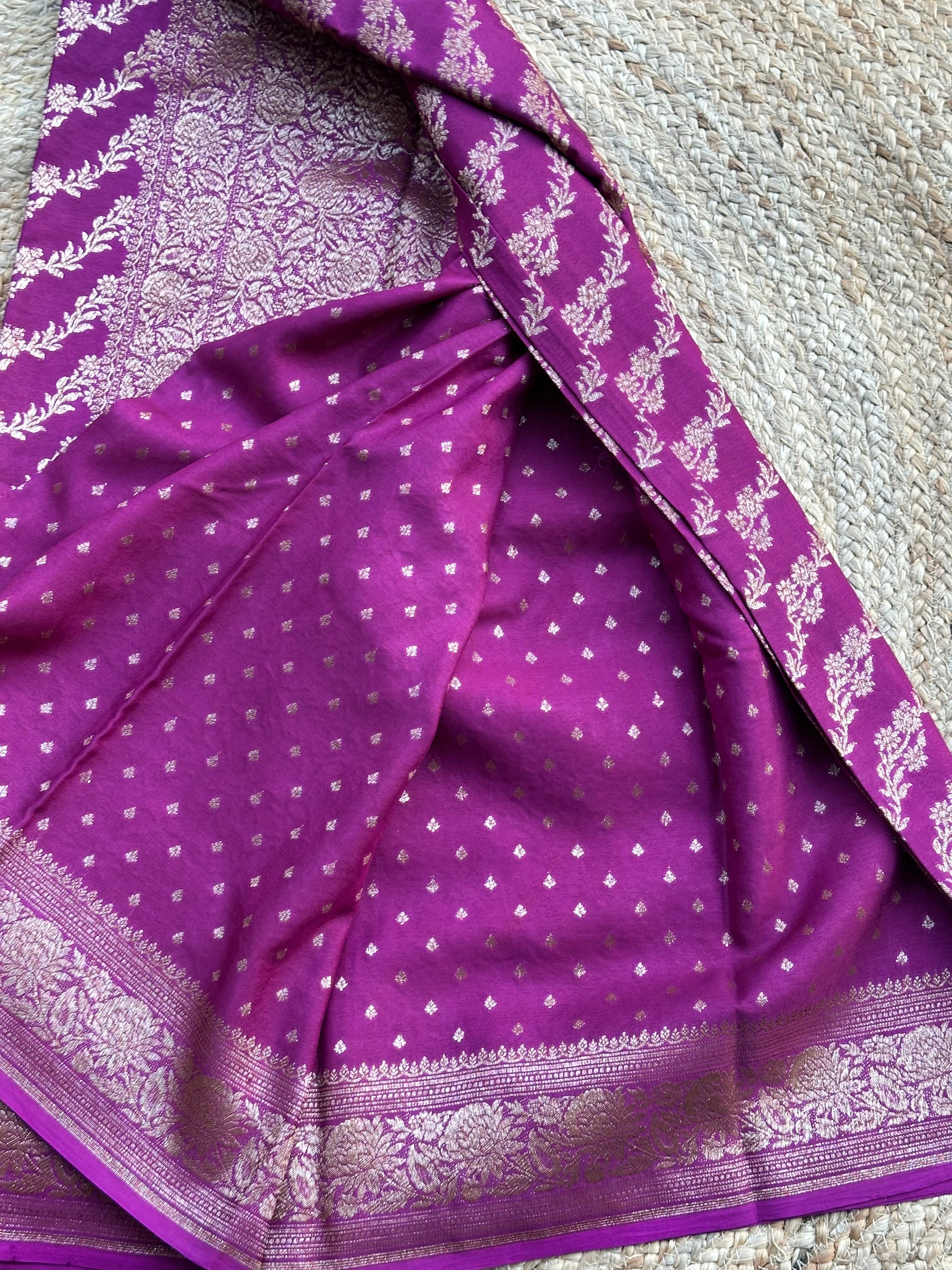 Mejentha purple jaal Banarasi crepe chiffon