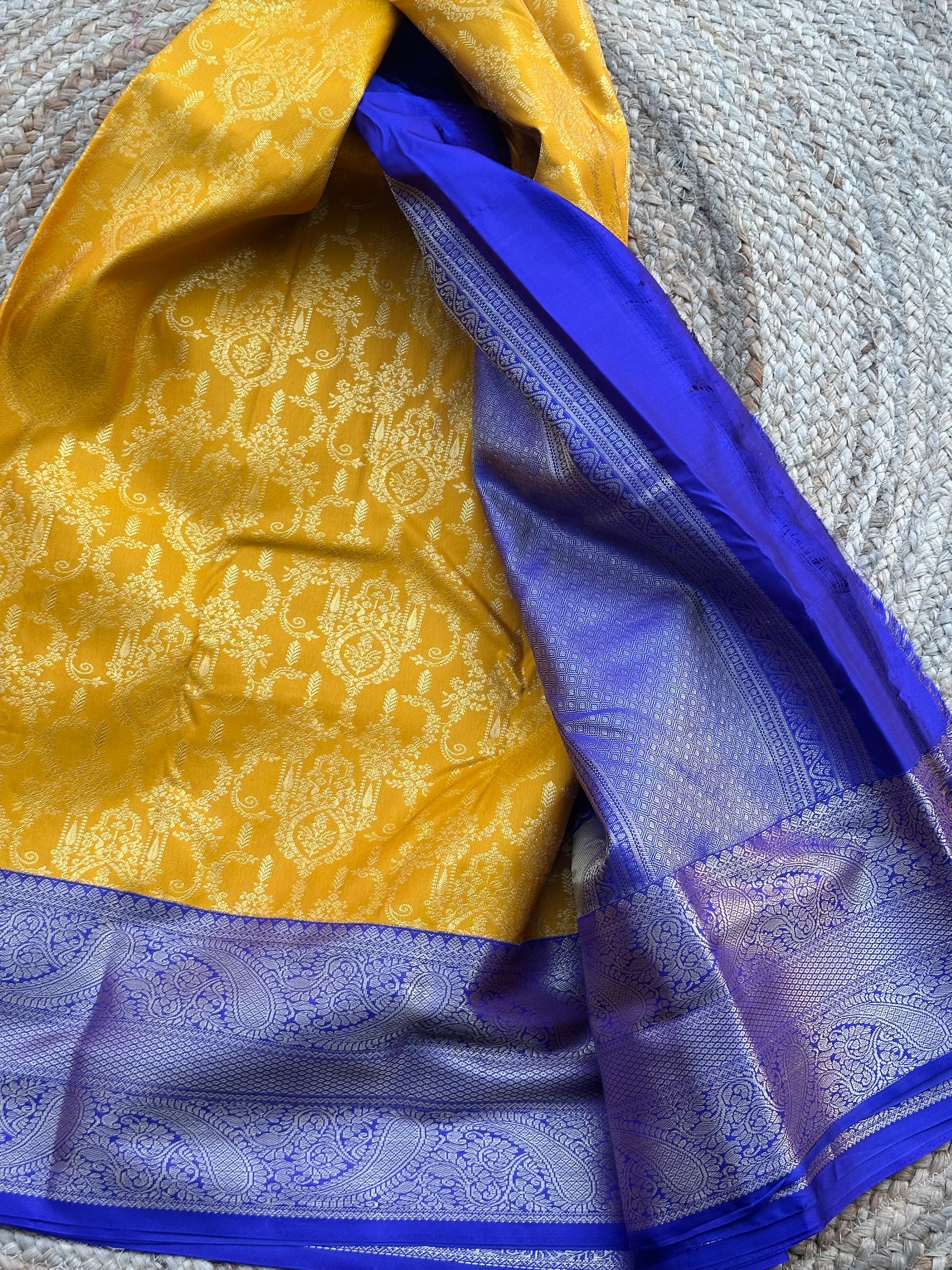Mustard and royal blue semi kanchi