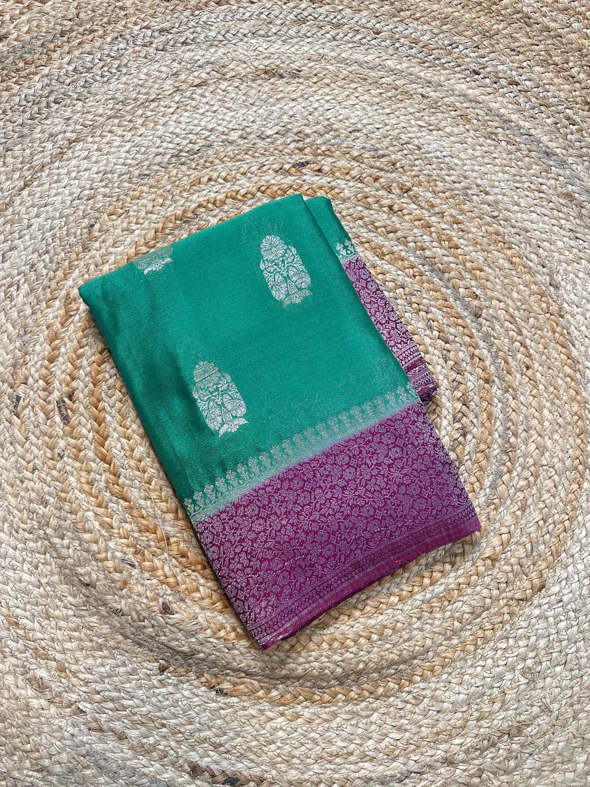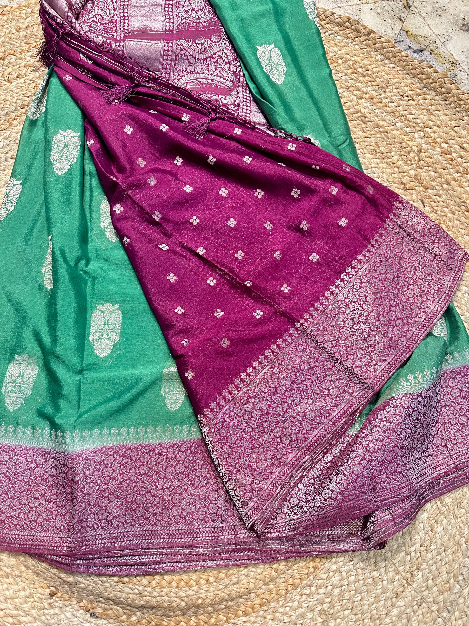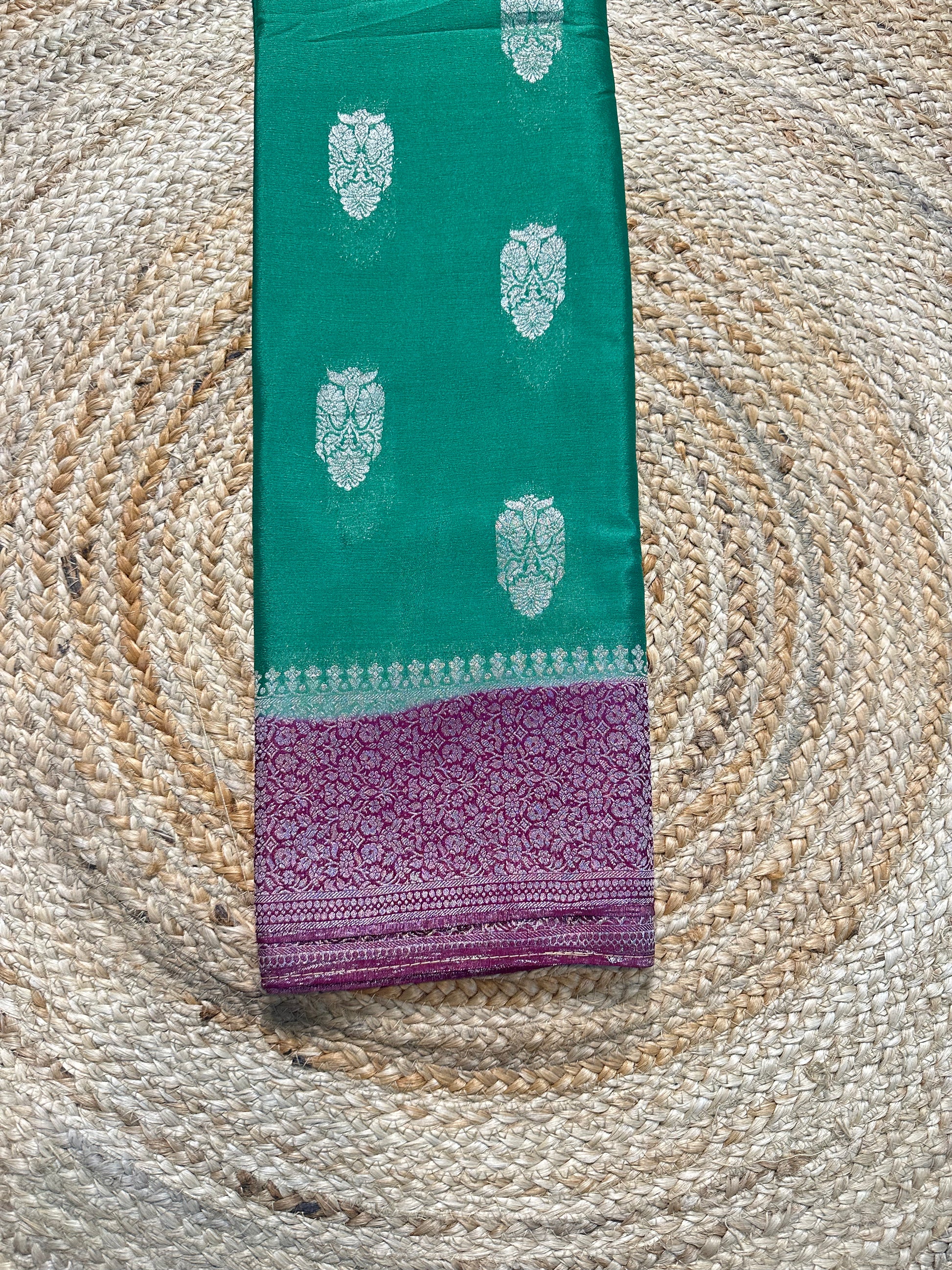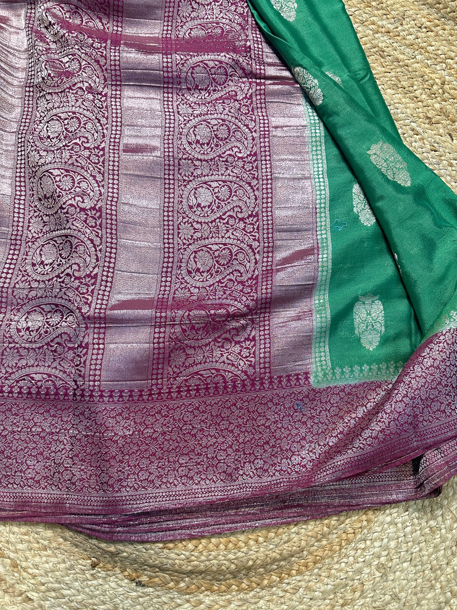 Olive green with purple soft crepe big butta