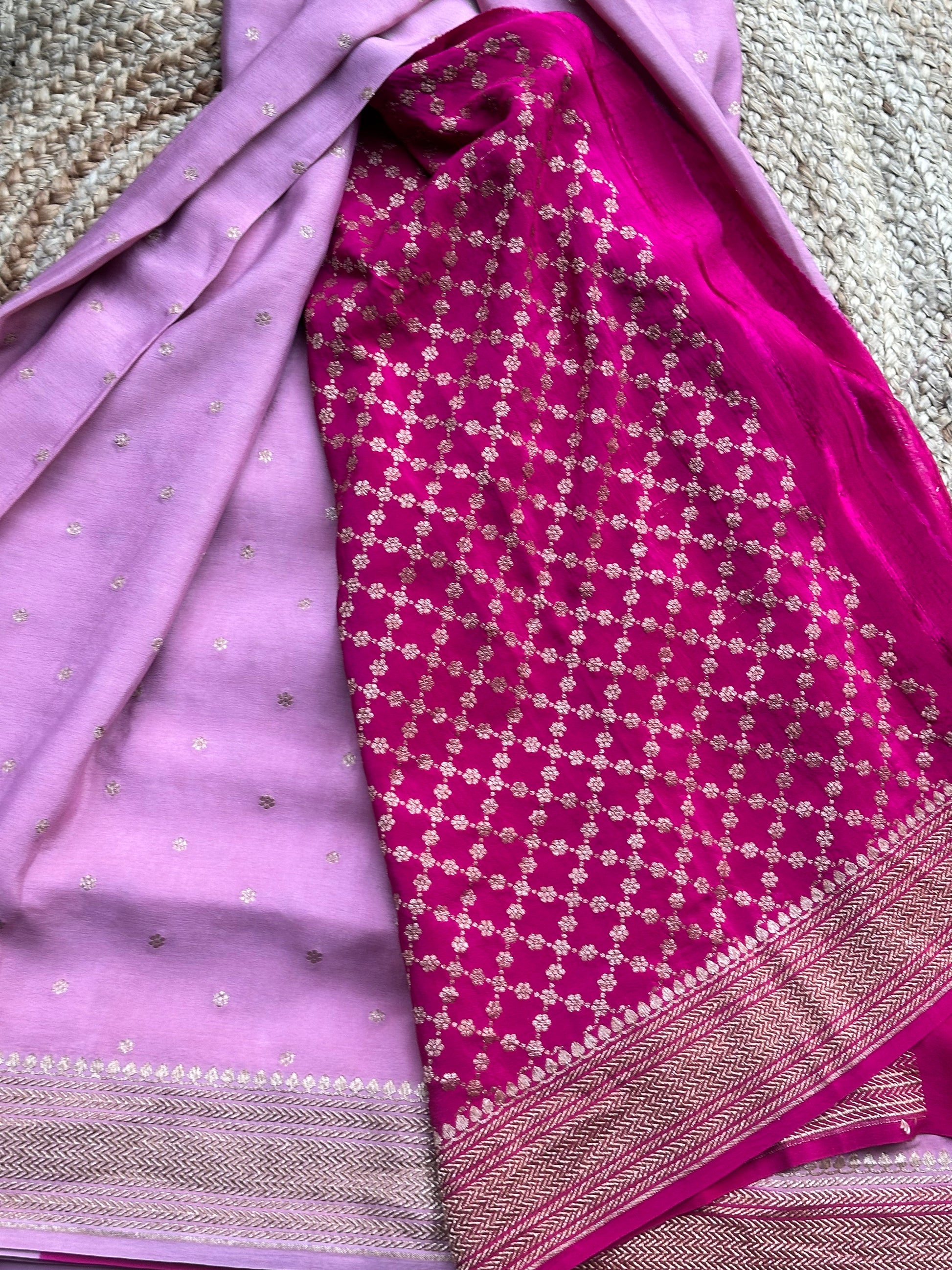 Onion pink and dark pink pure crepe Banaras