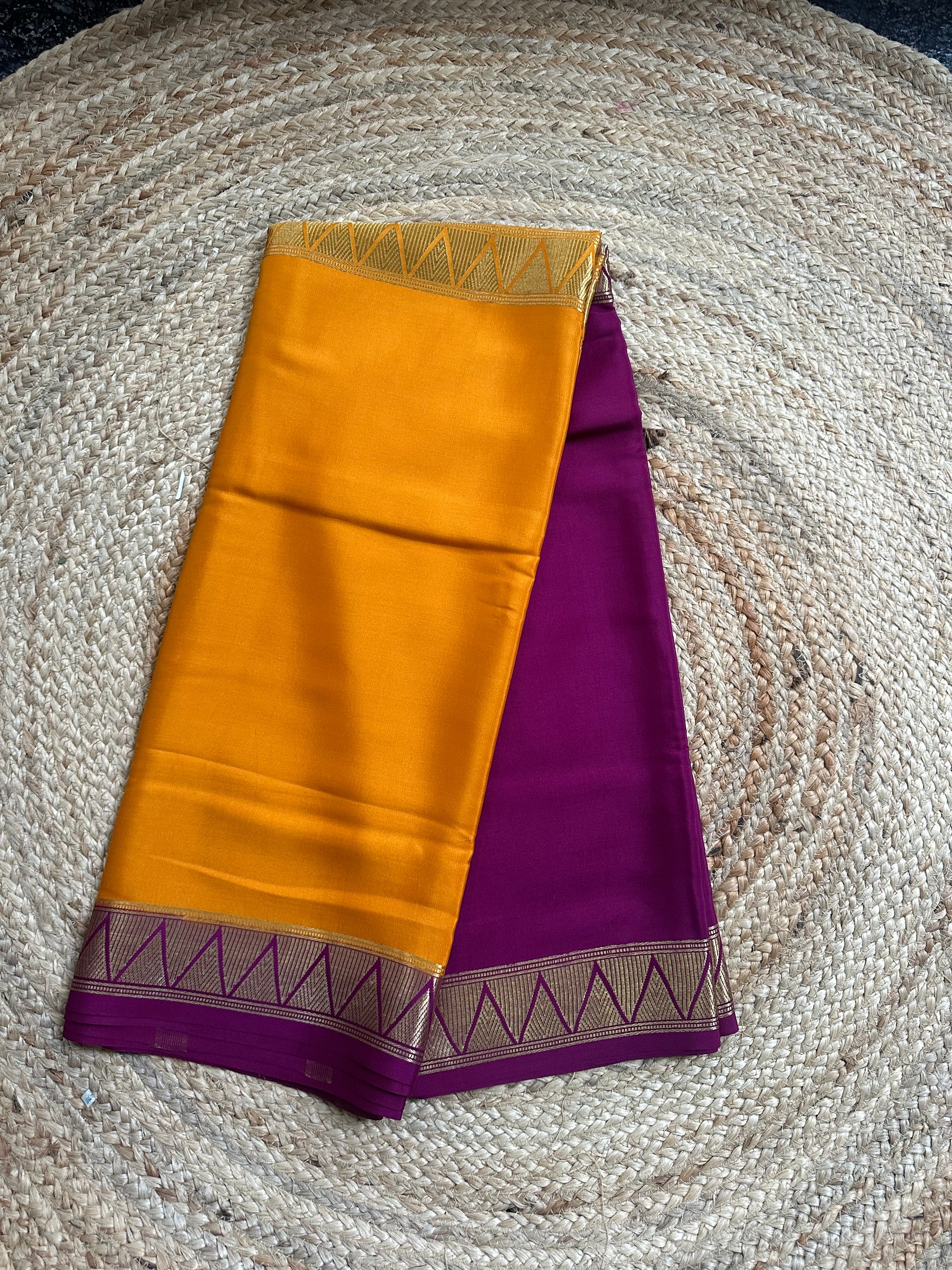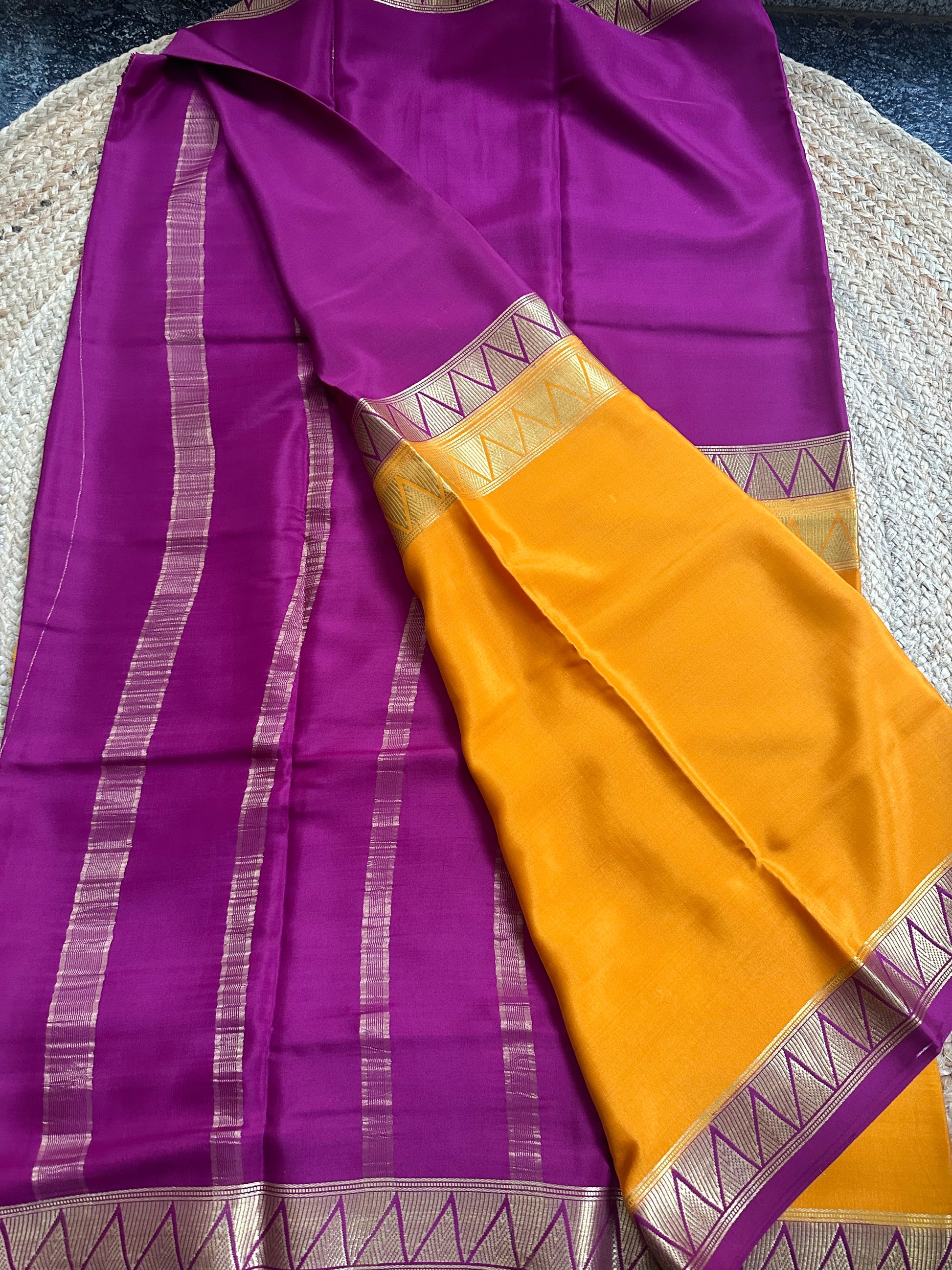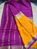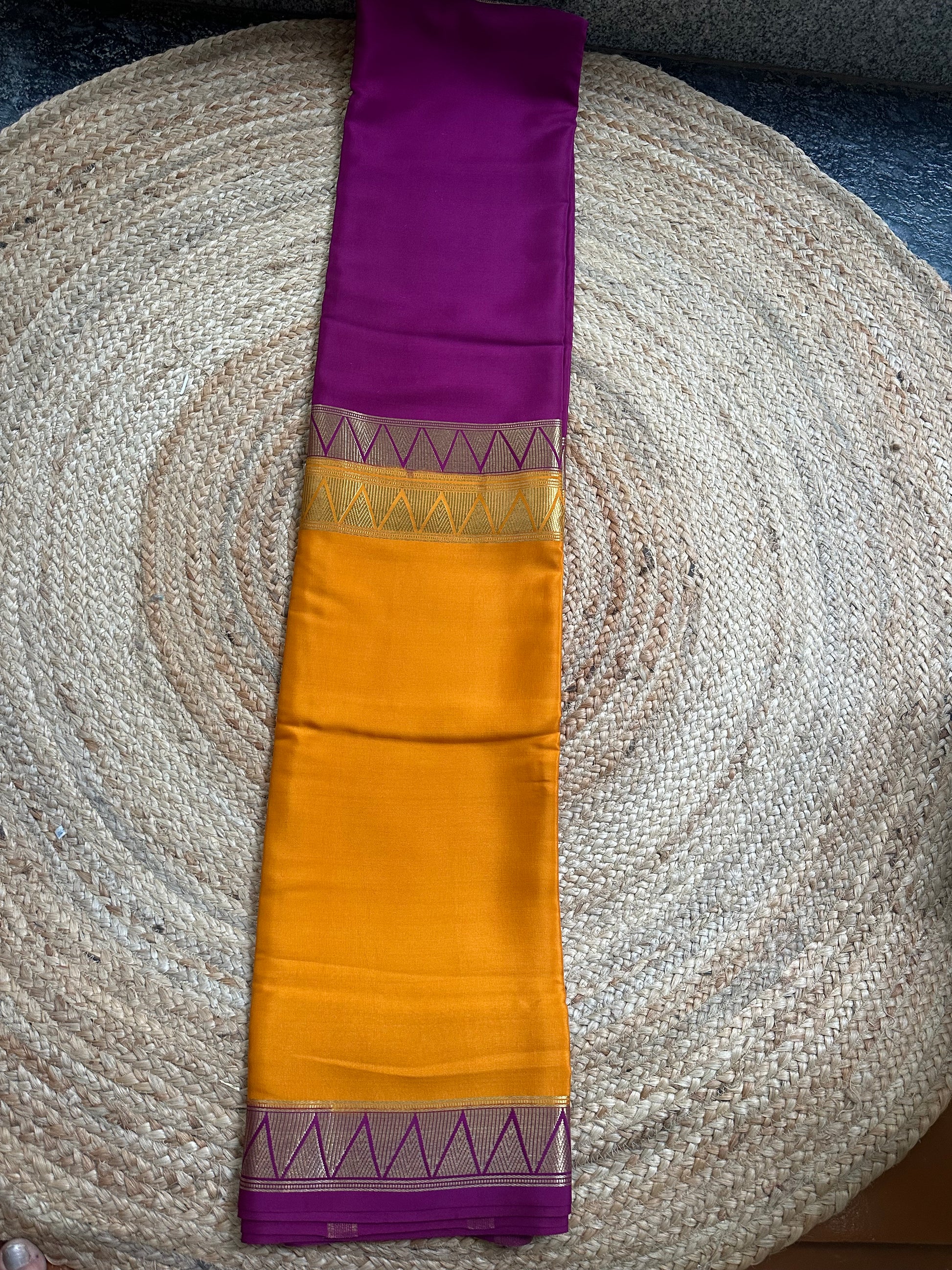 Orange and mejentha pink half and half pattern Mysore Silk crepe 120gsm