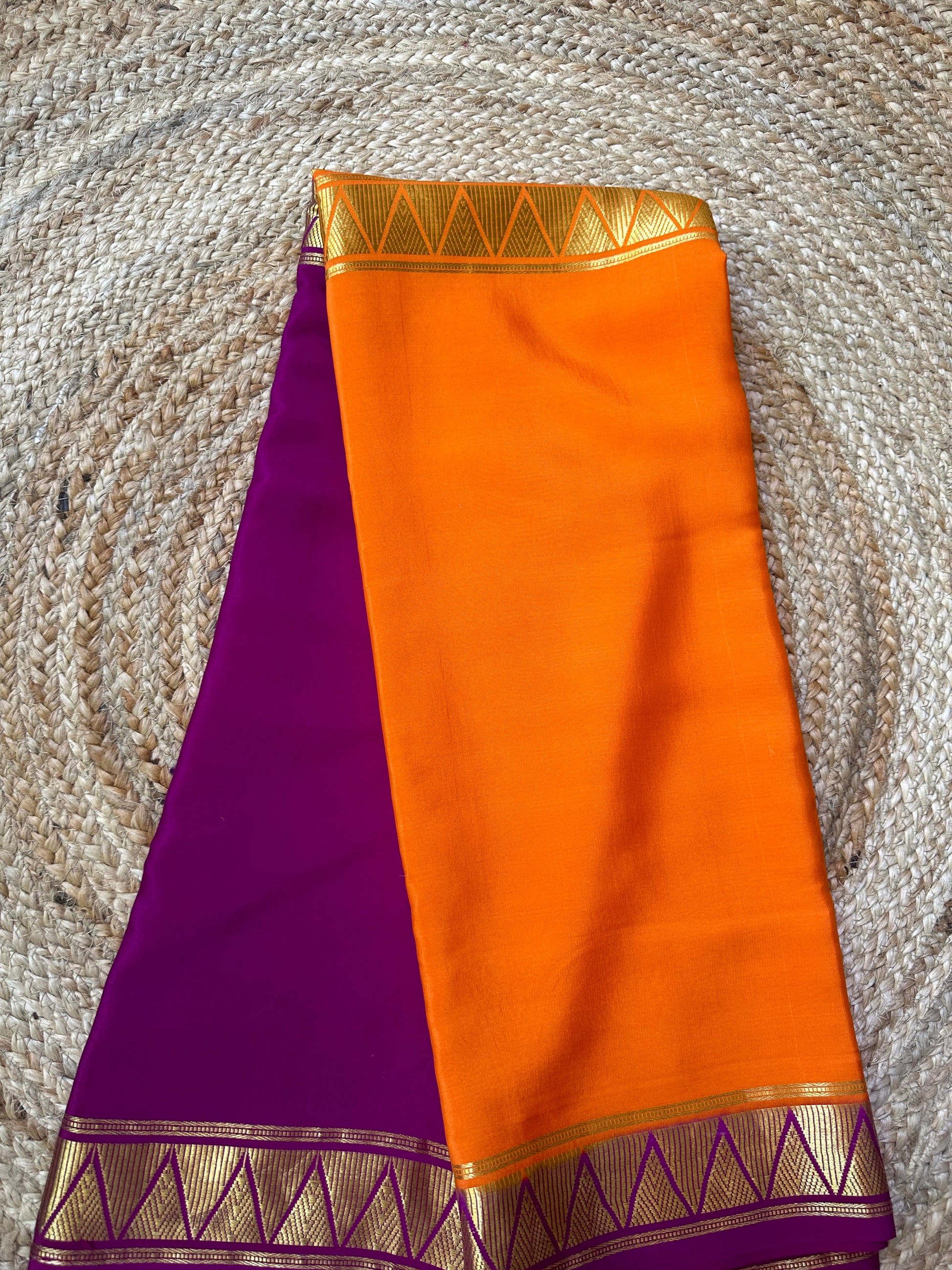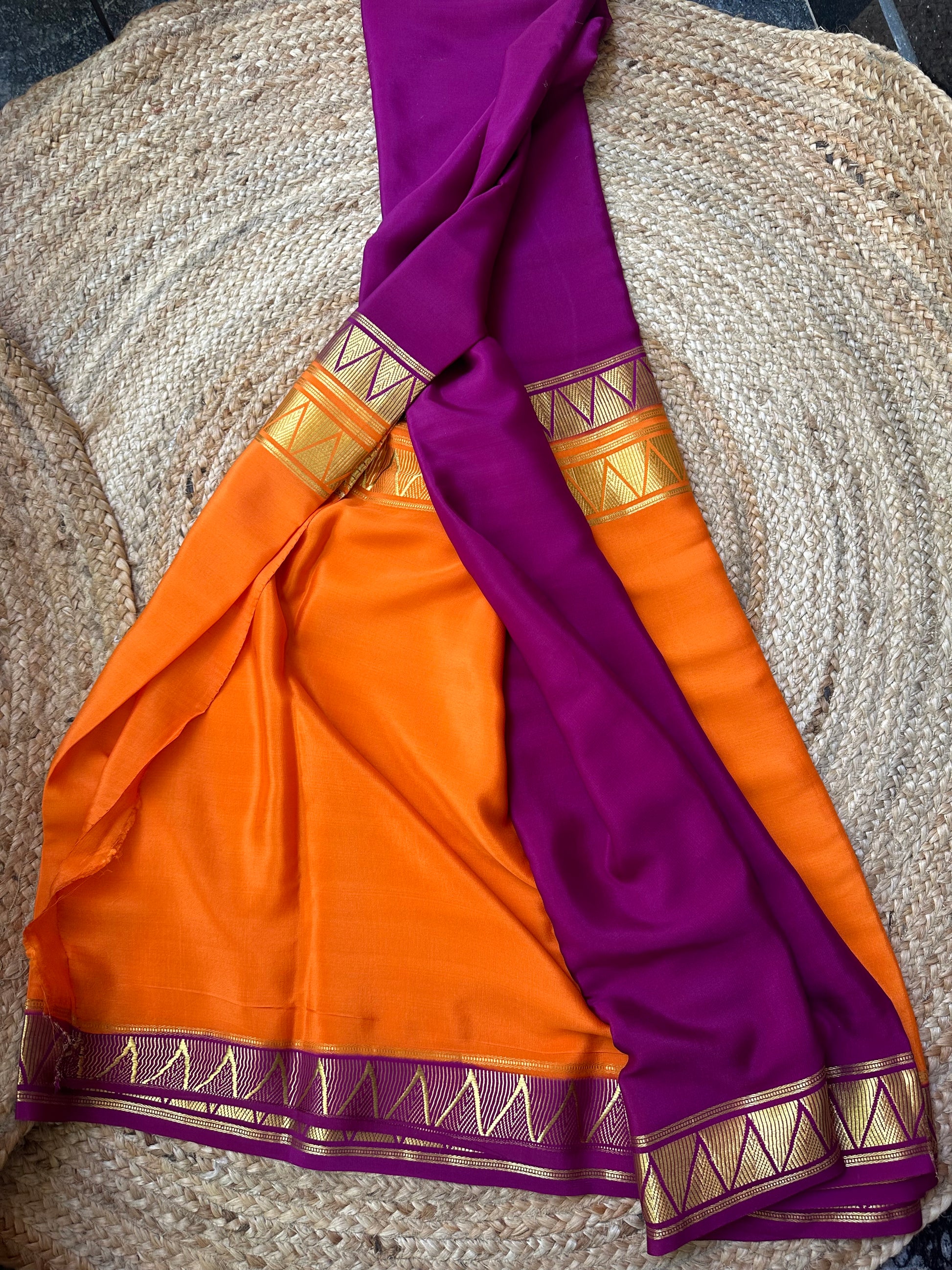 Orange and mejentha pure Mysore Silk sarees 120 grams