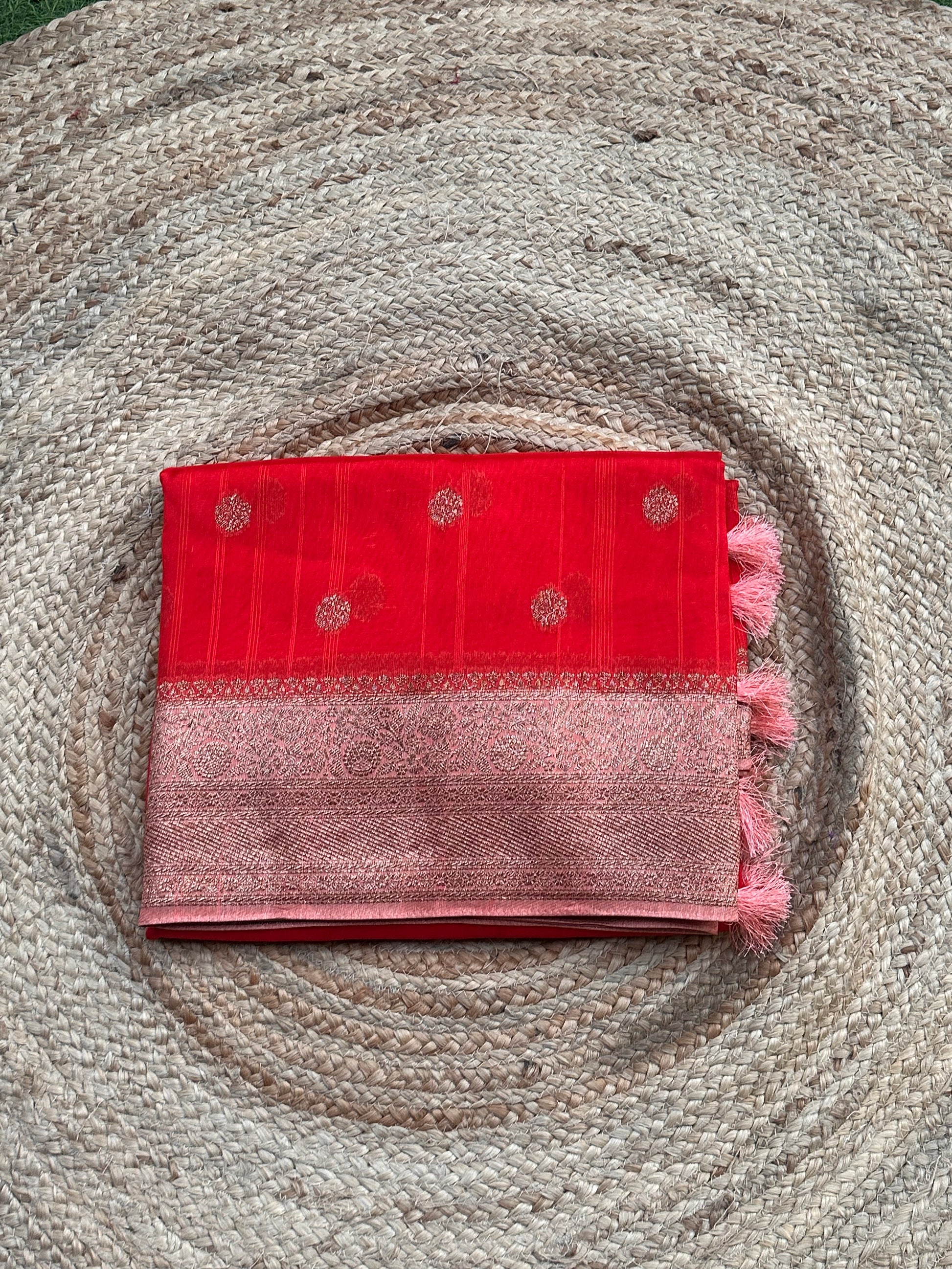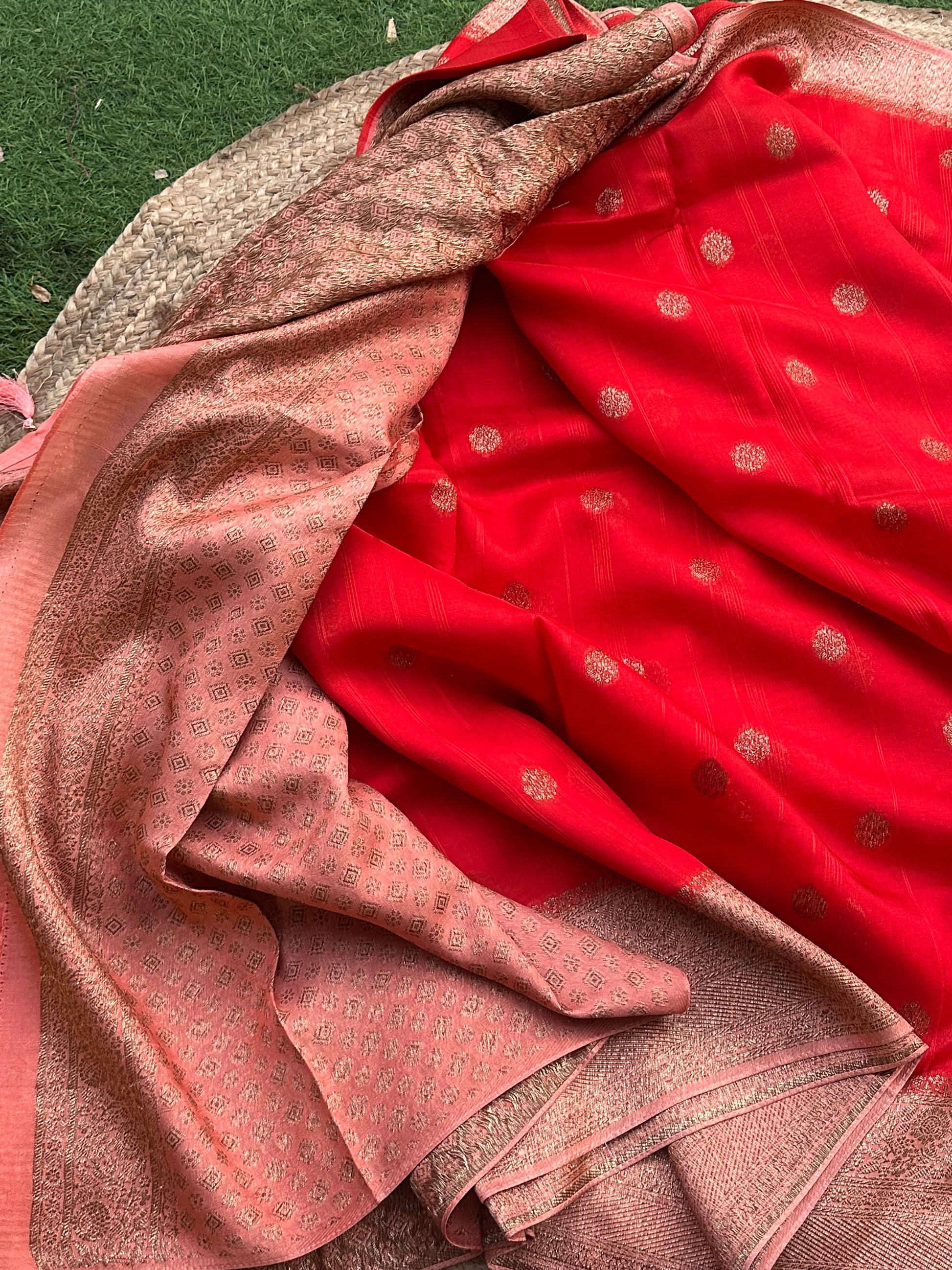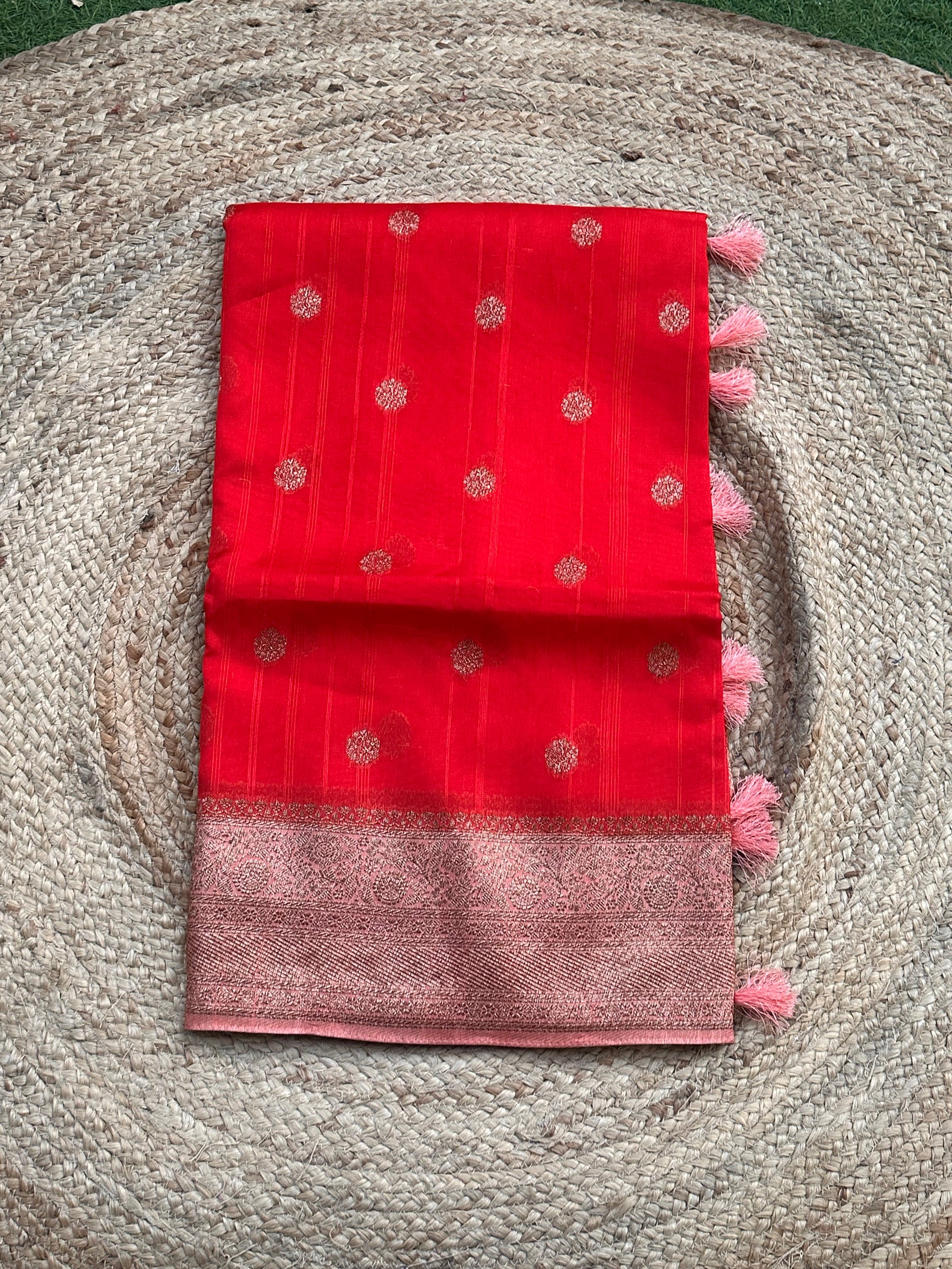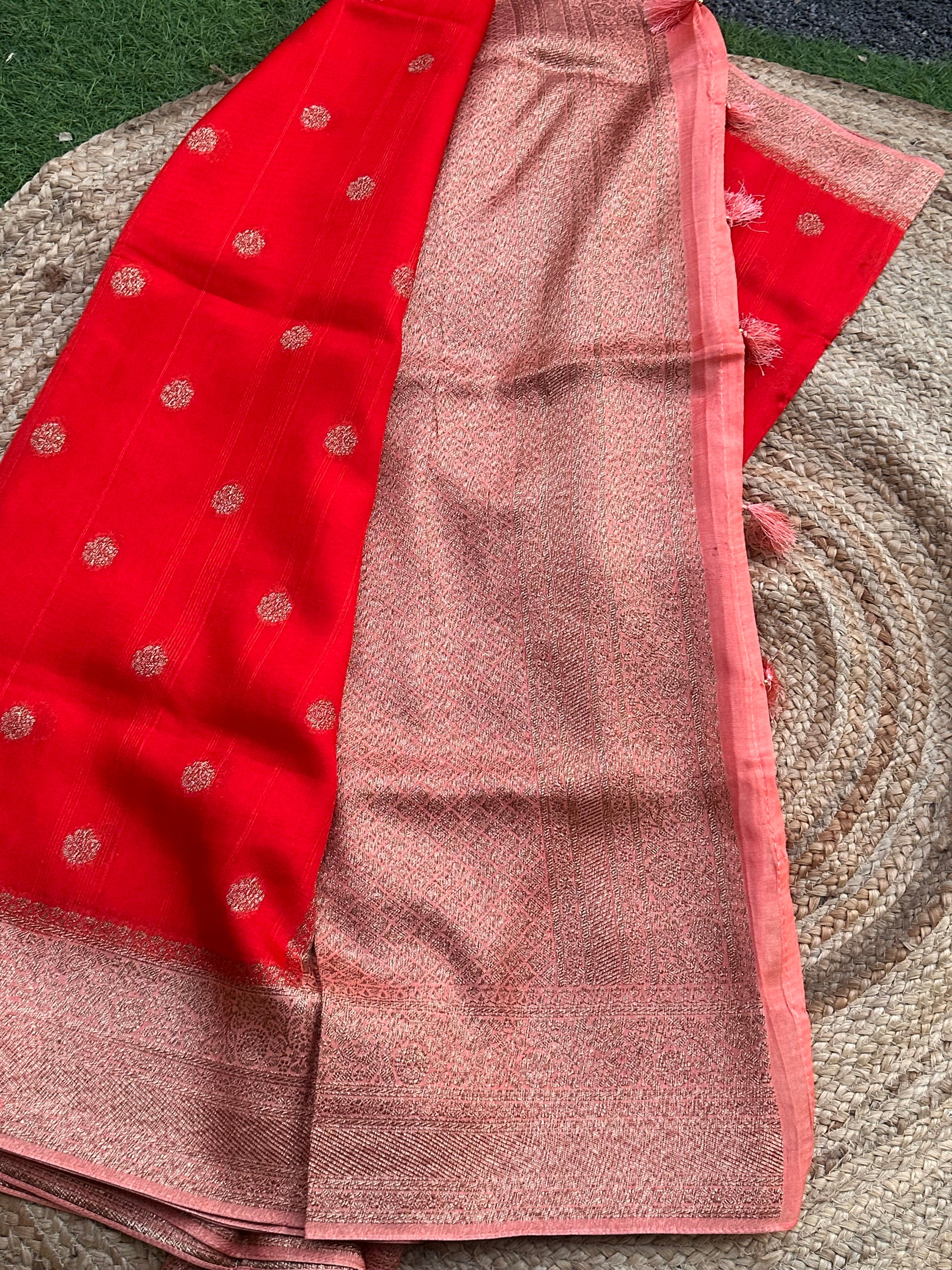 Orange and peach tusser silk sarees