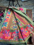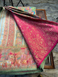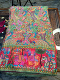 Parrot green pure moonga crepe Kashmiri work all over the body.
