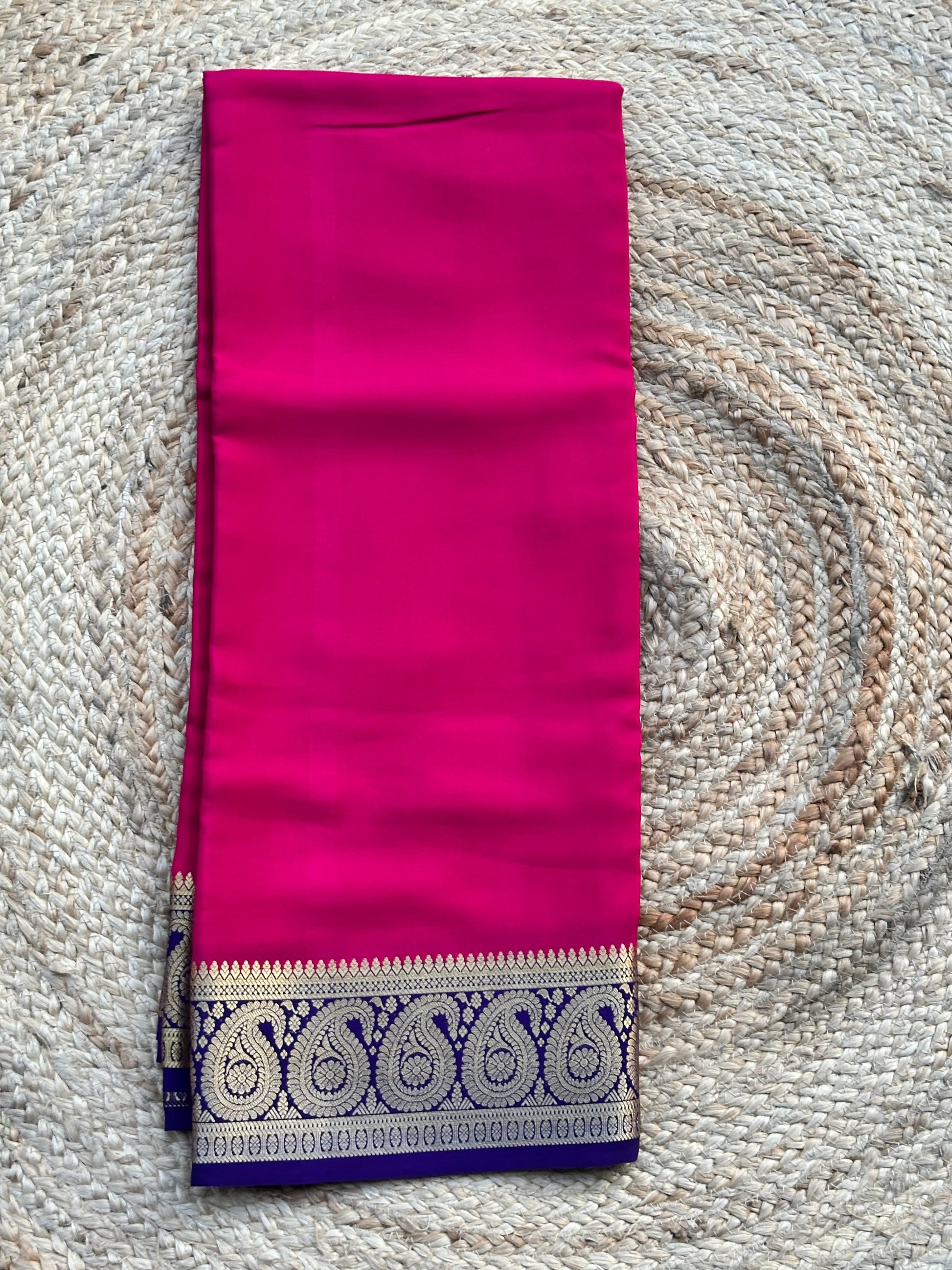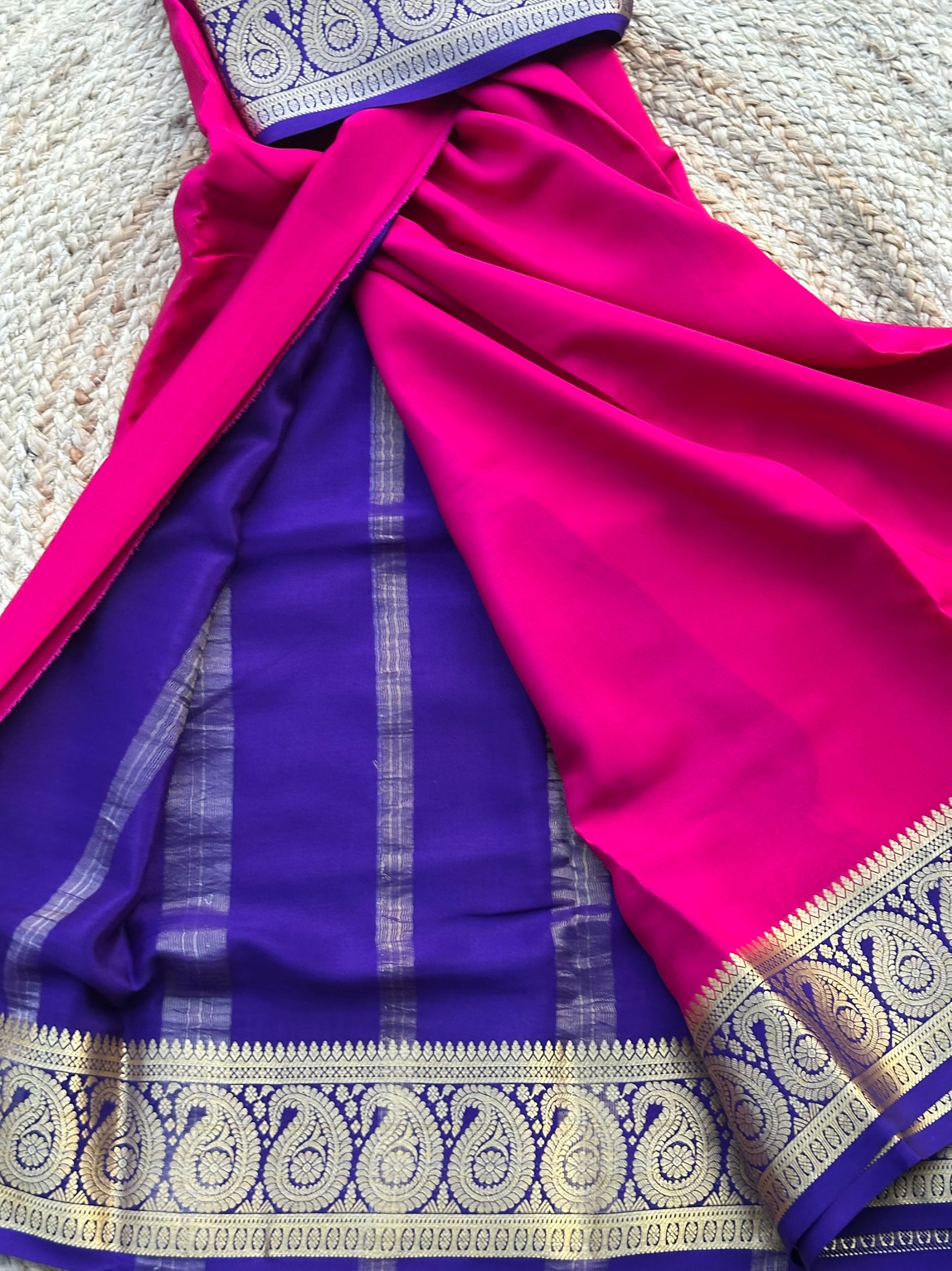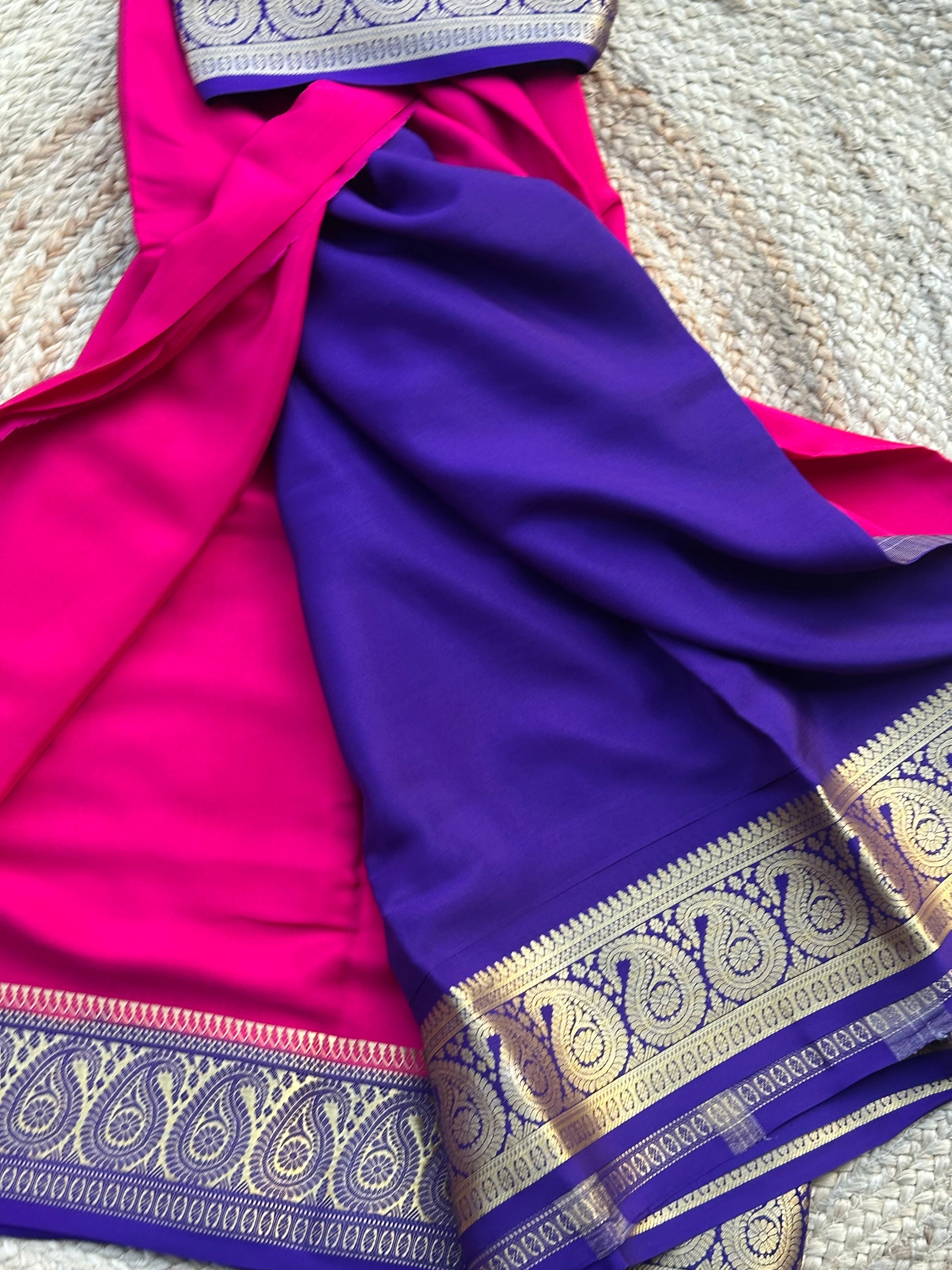 Pink and deep blue pure crepe Mysore Silk sarees 120 gsm
