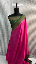 Pink and green crepe chiffon sarees