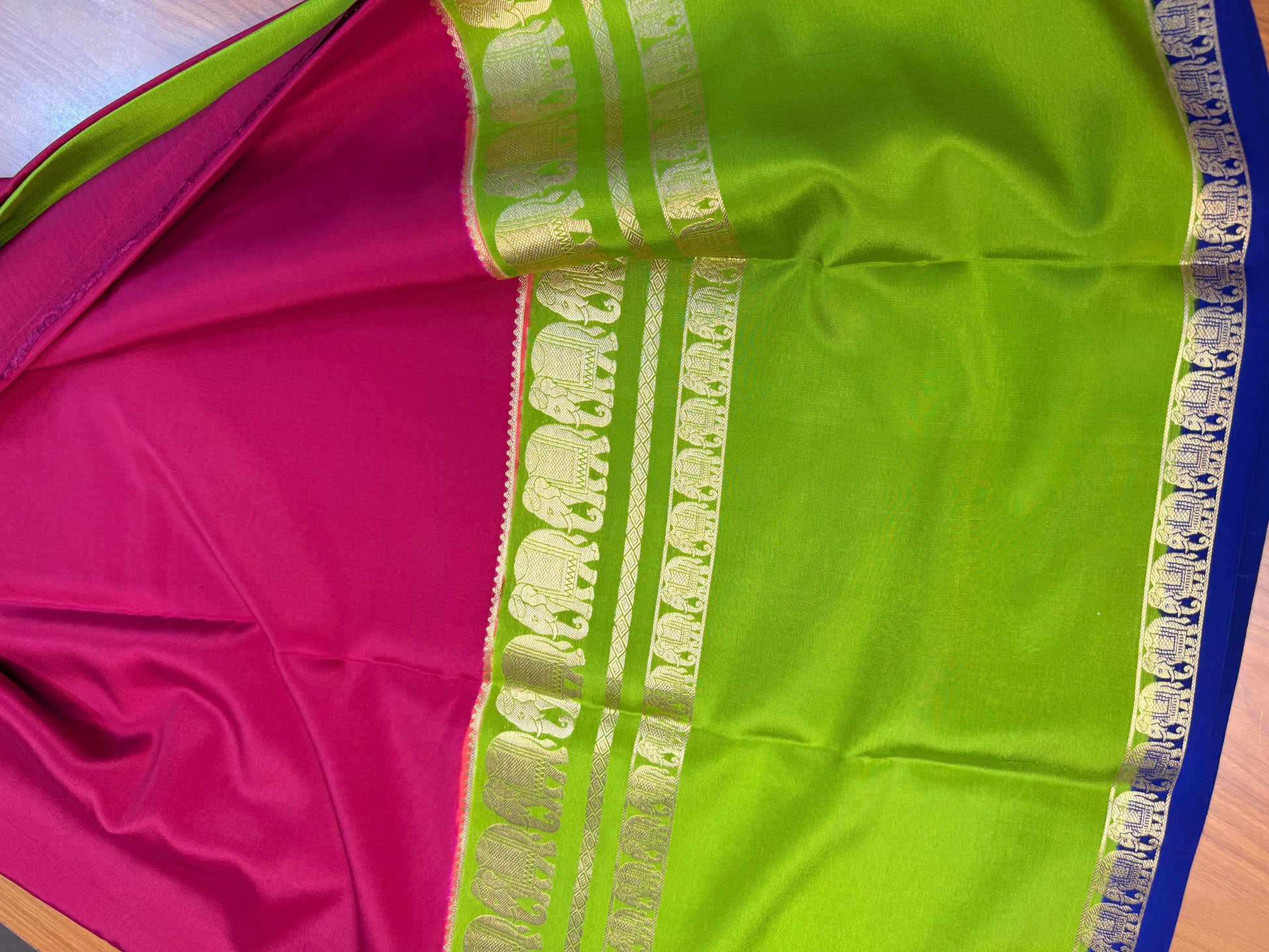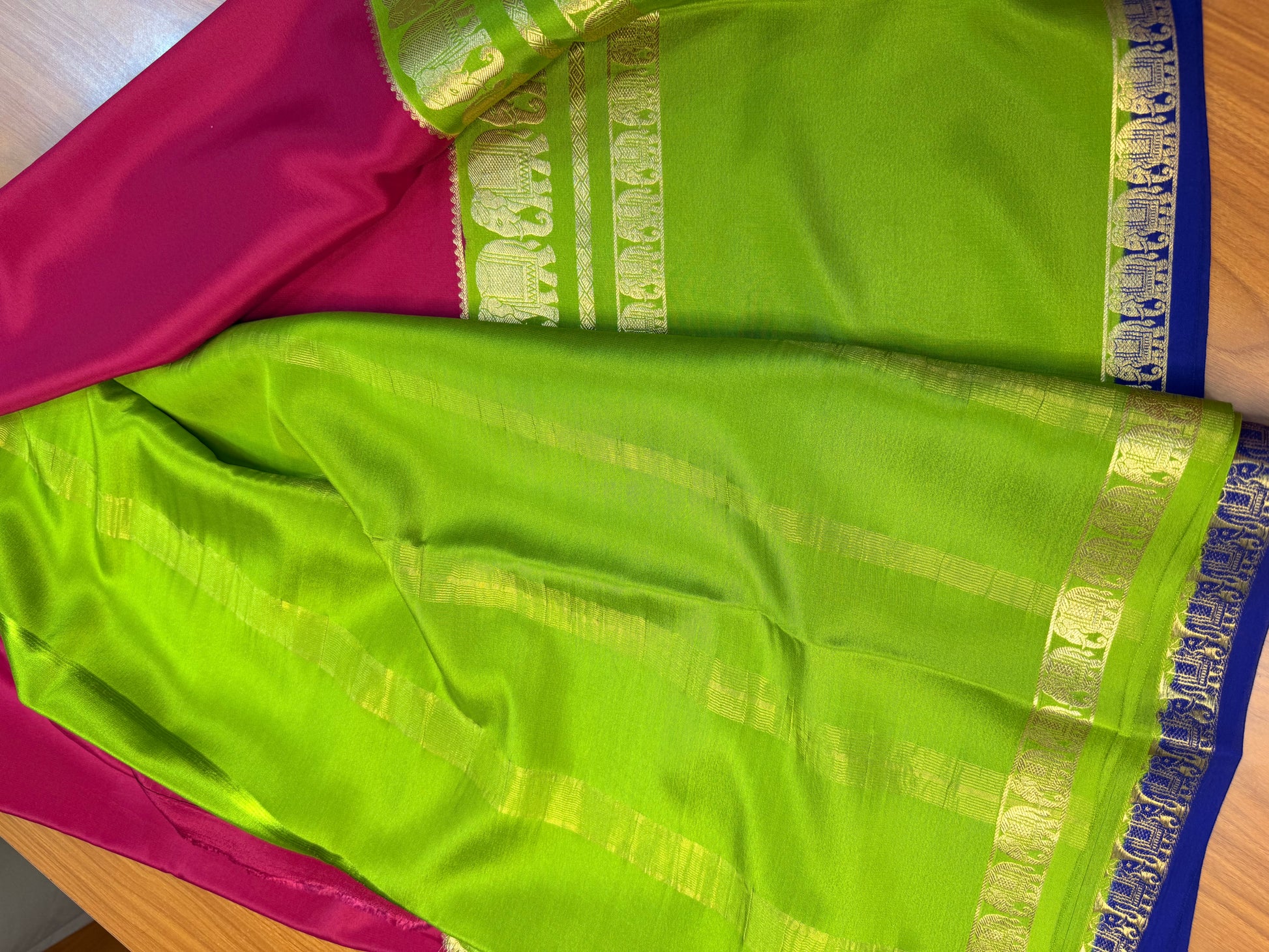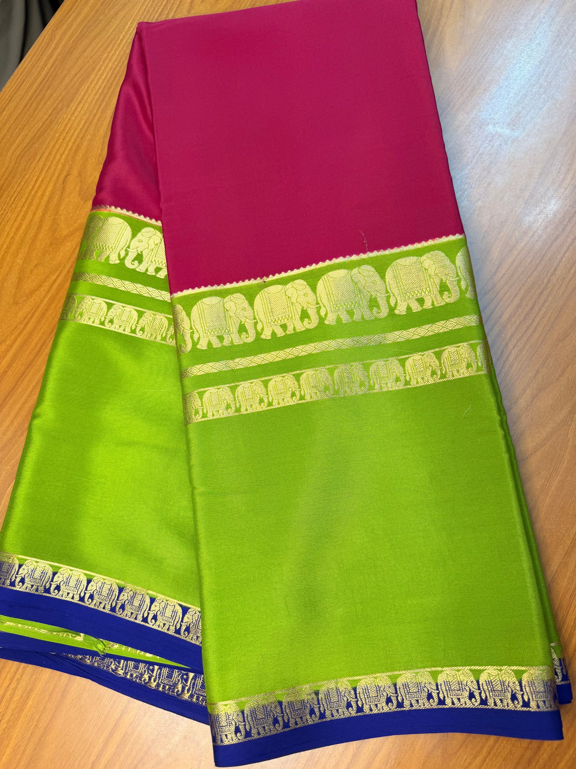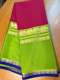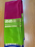 Pink and green pure crepe Mysore silk 3d with elephant border