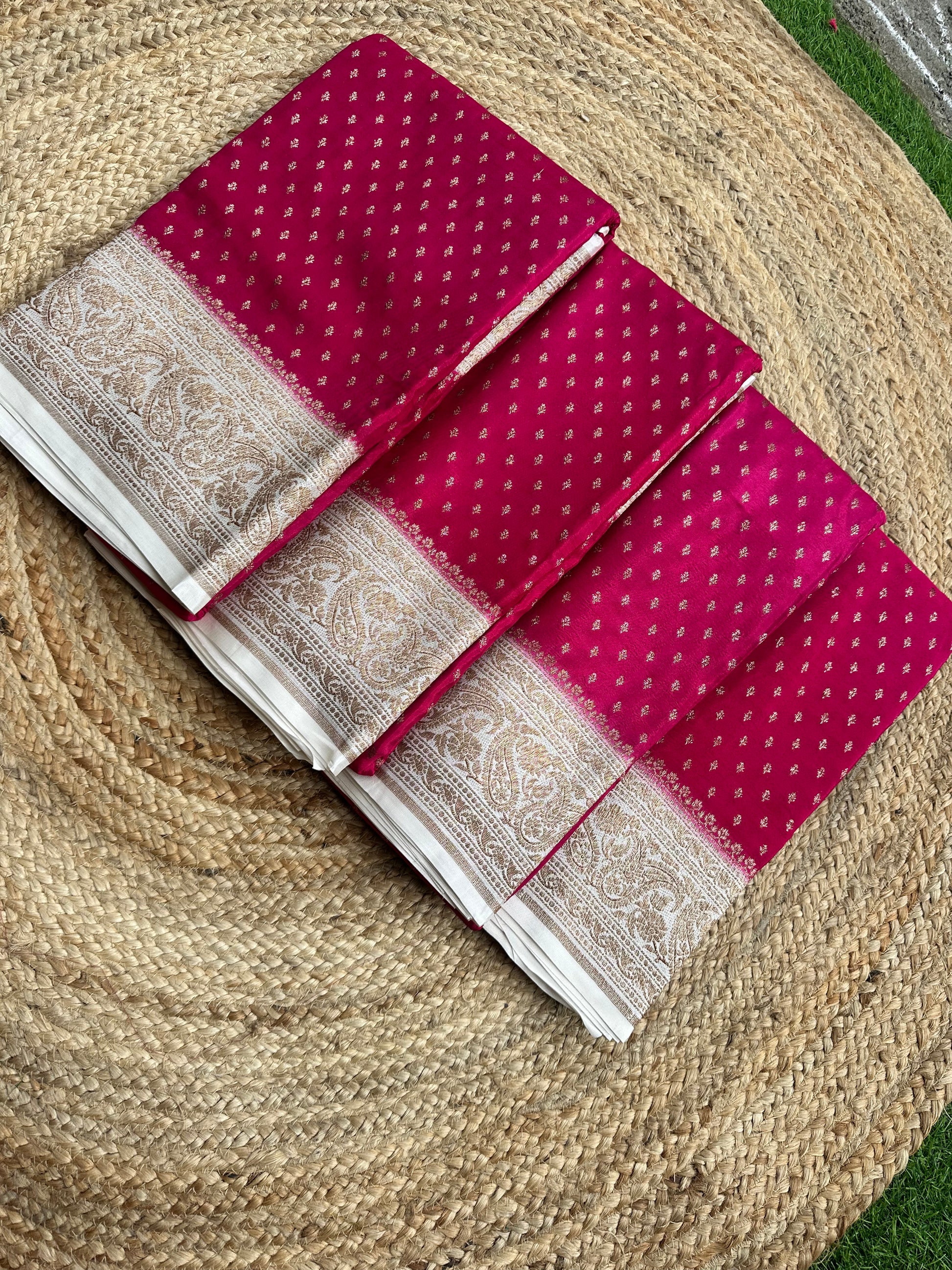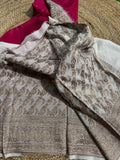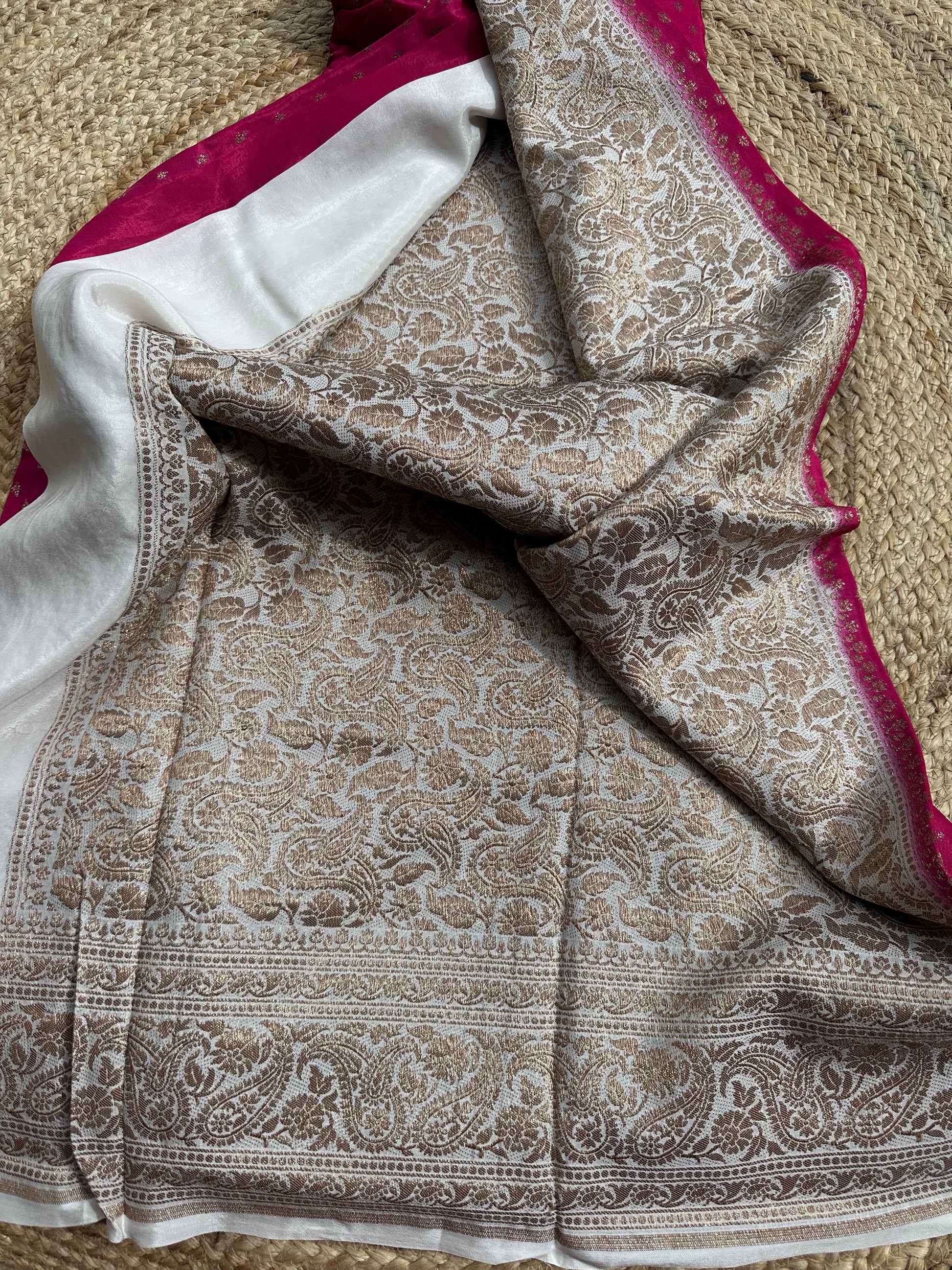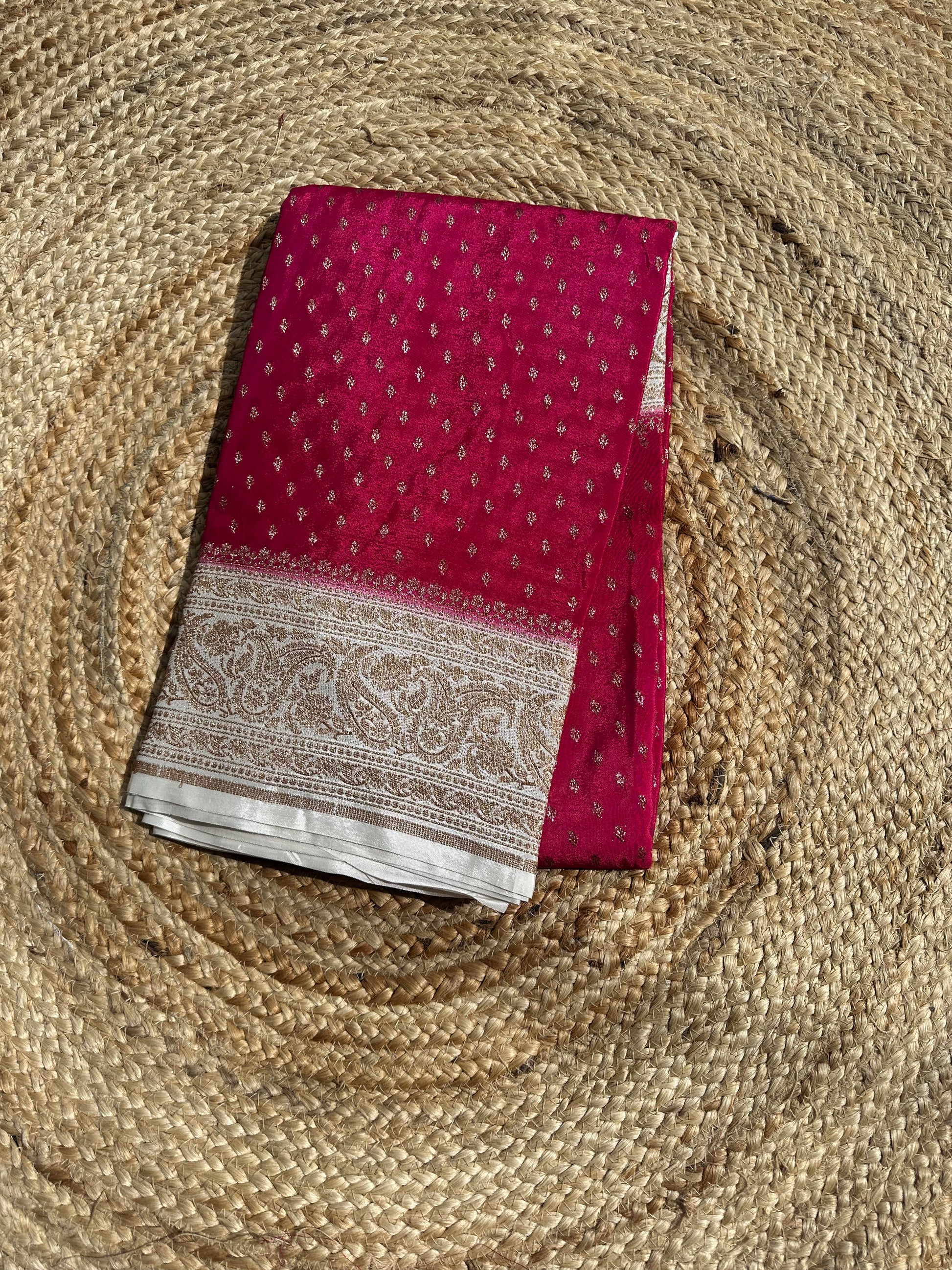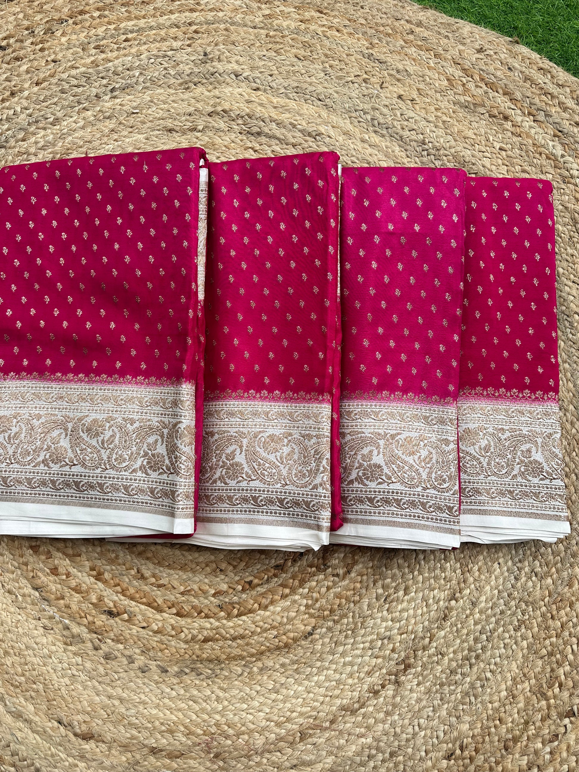 Pink and white pure crepe chiffon sarees with brocade blouse