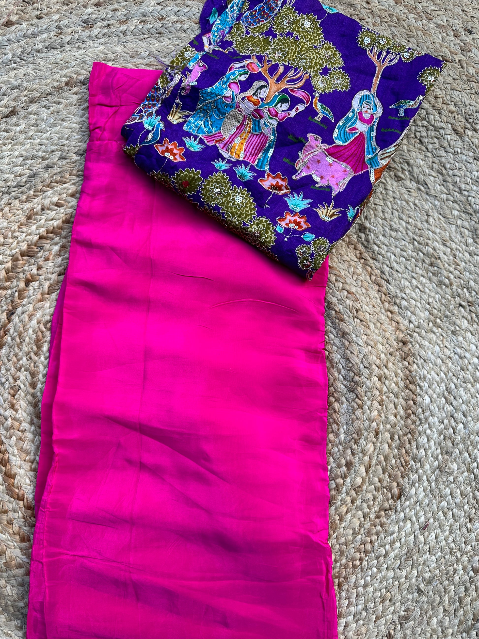 Pink pure crepe plain sarees with brocade blouse