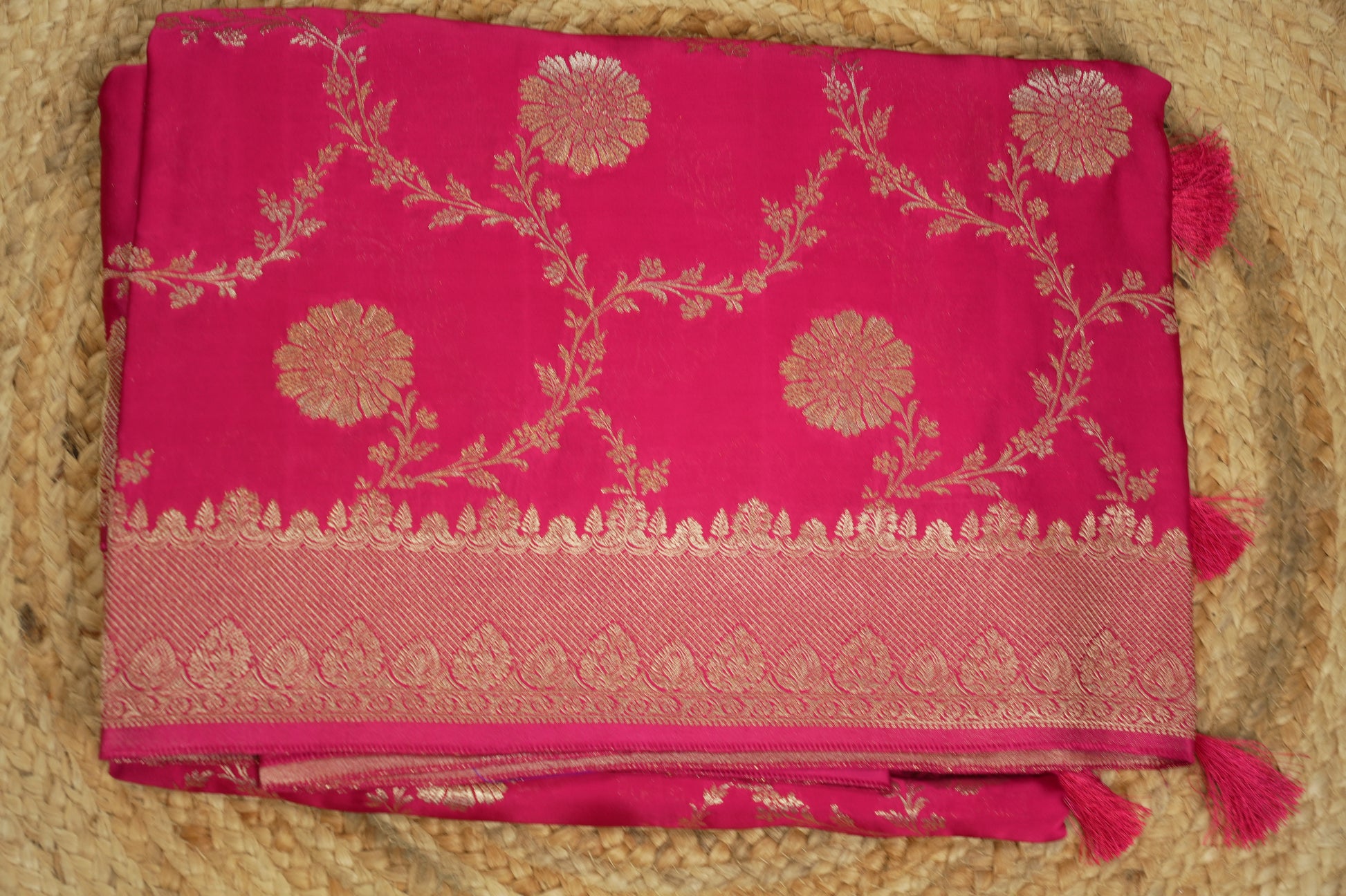 pink pure satin silk with jaal pattern