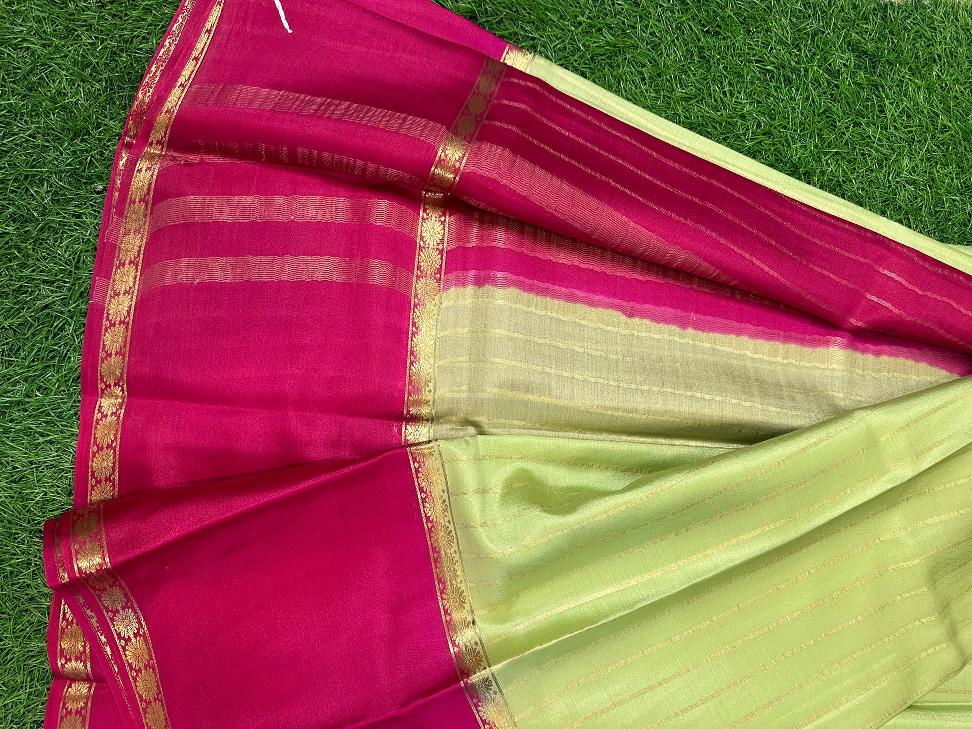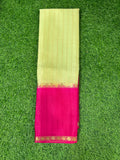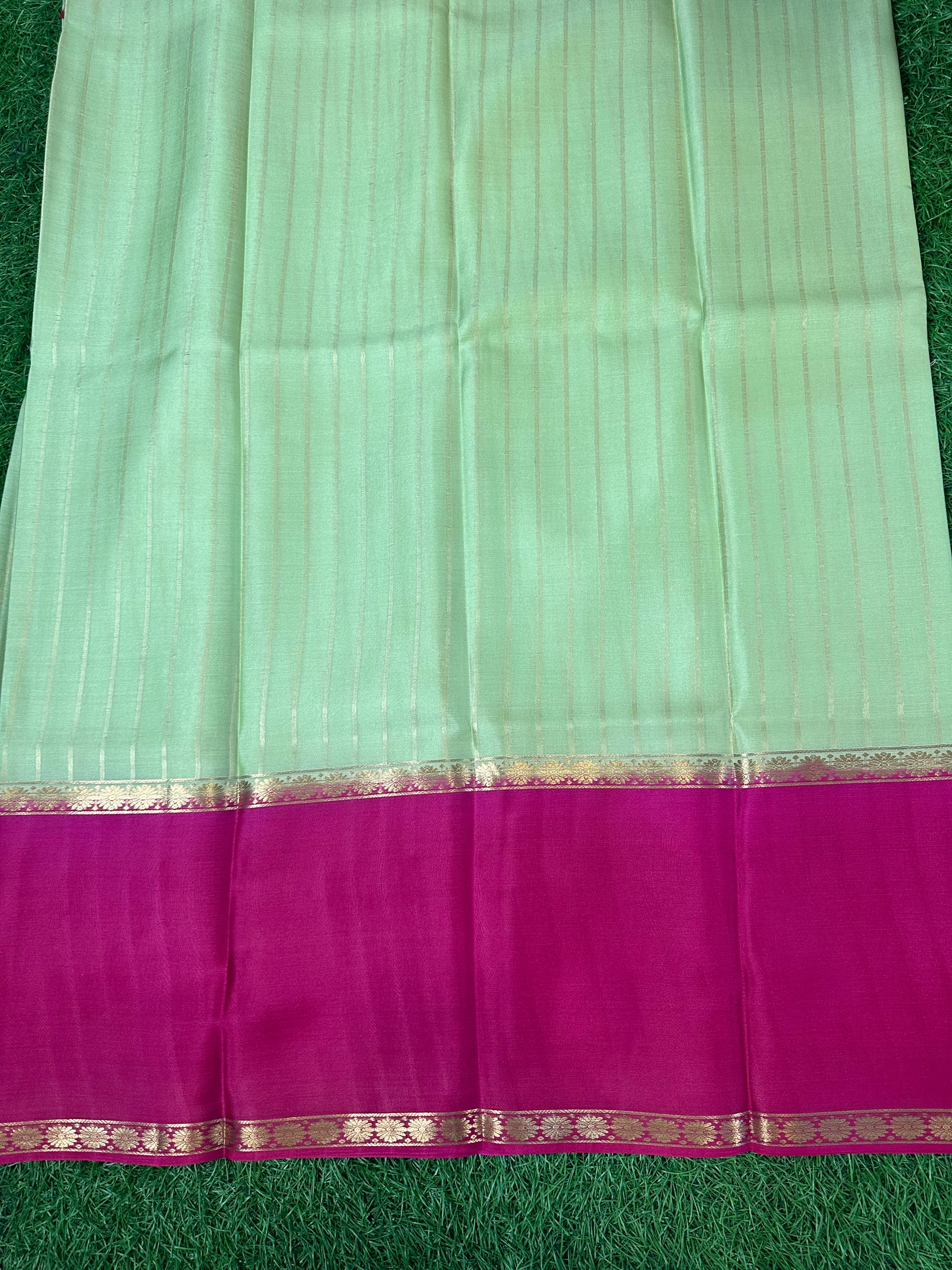 Pista green with mejentha pink pure wrinkle crepe with vertical stripes blouse.