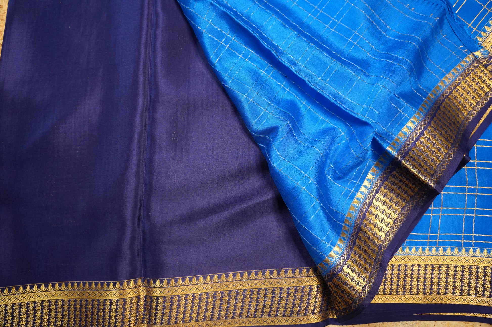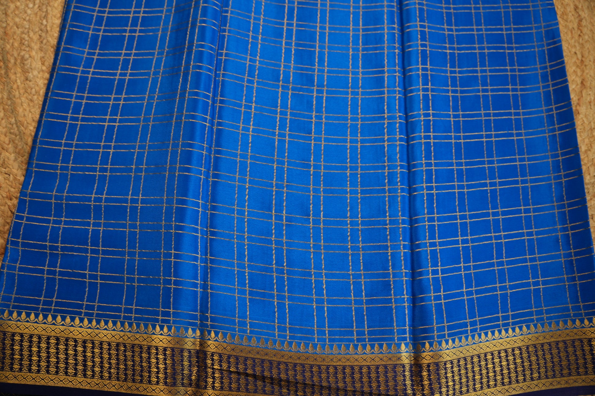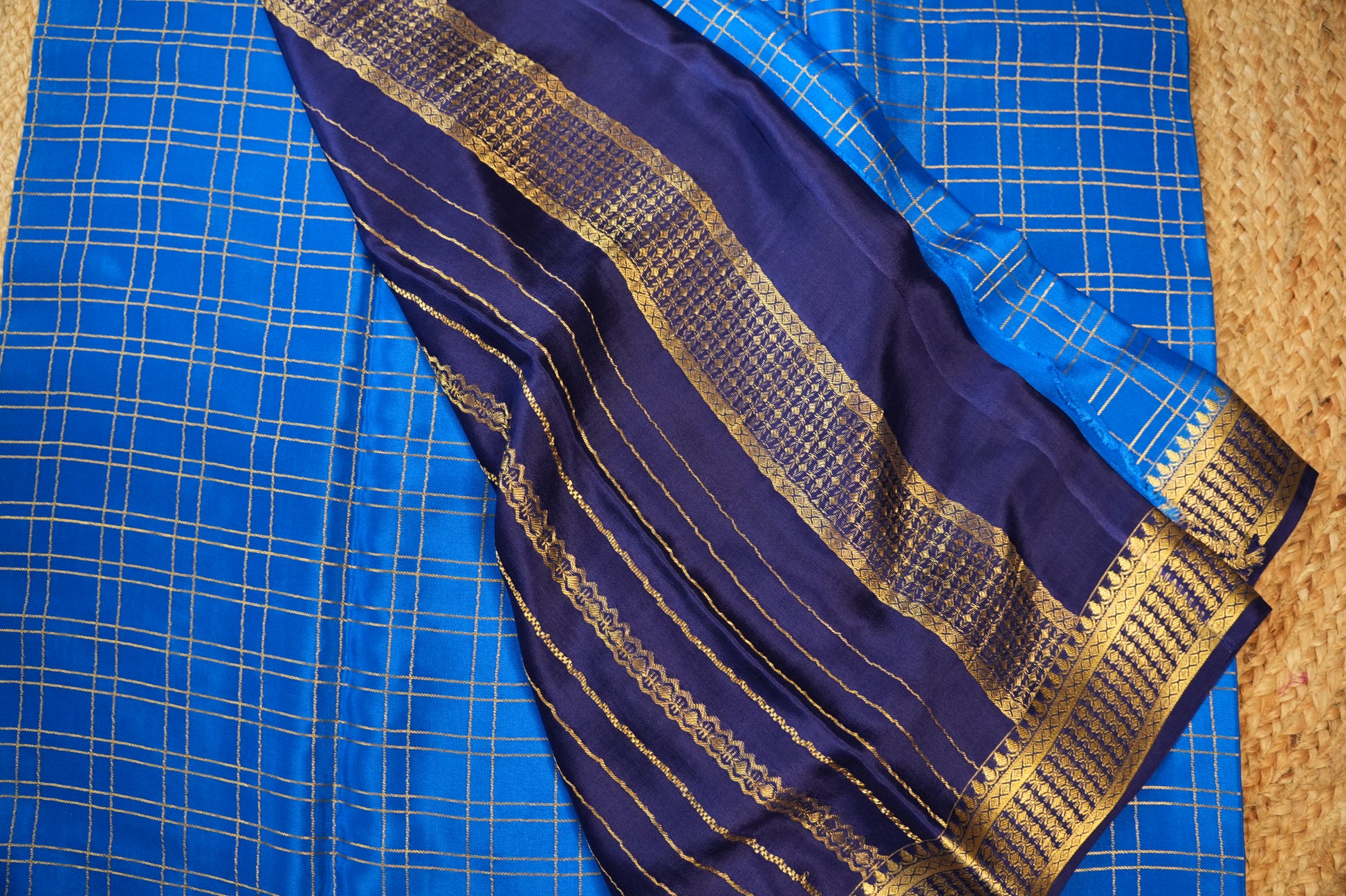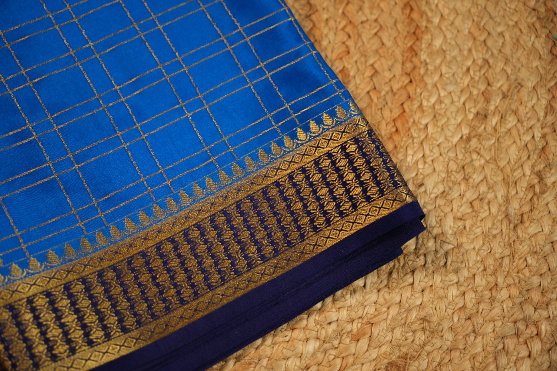 Sky blue with navy blue Pure Mysore silk 120 gsm checks pattern.