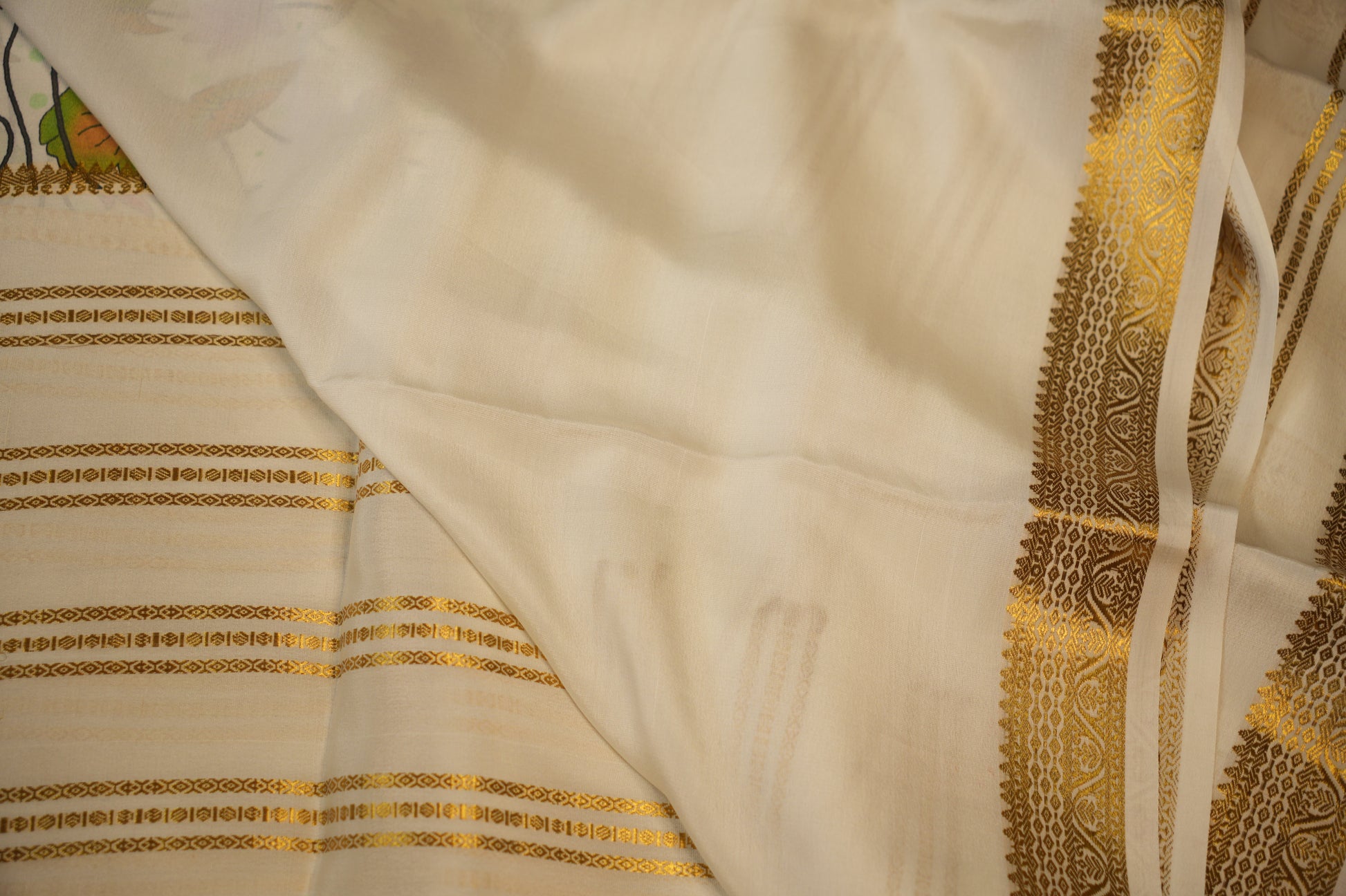 White central Kalamkari Pure Mysore Silk 120 gsm