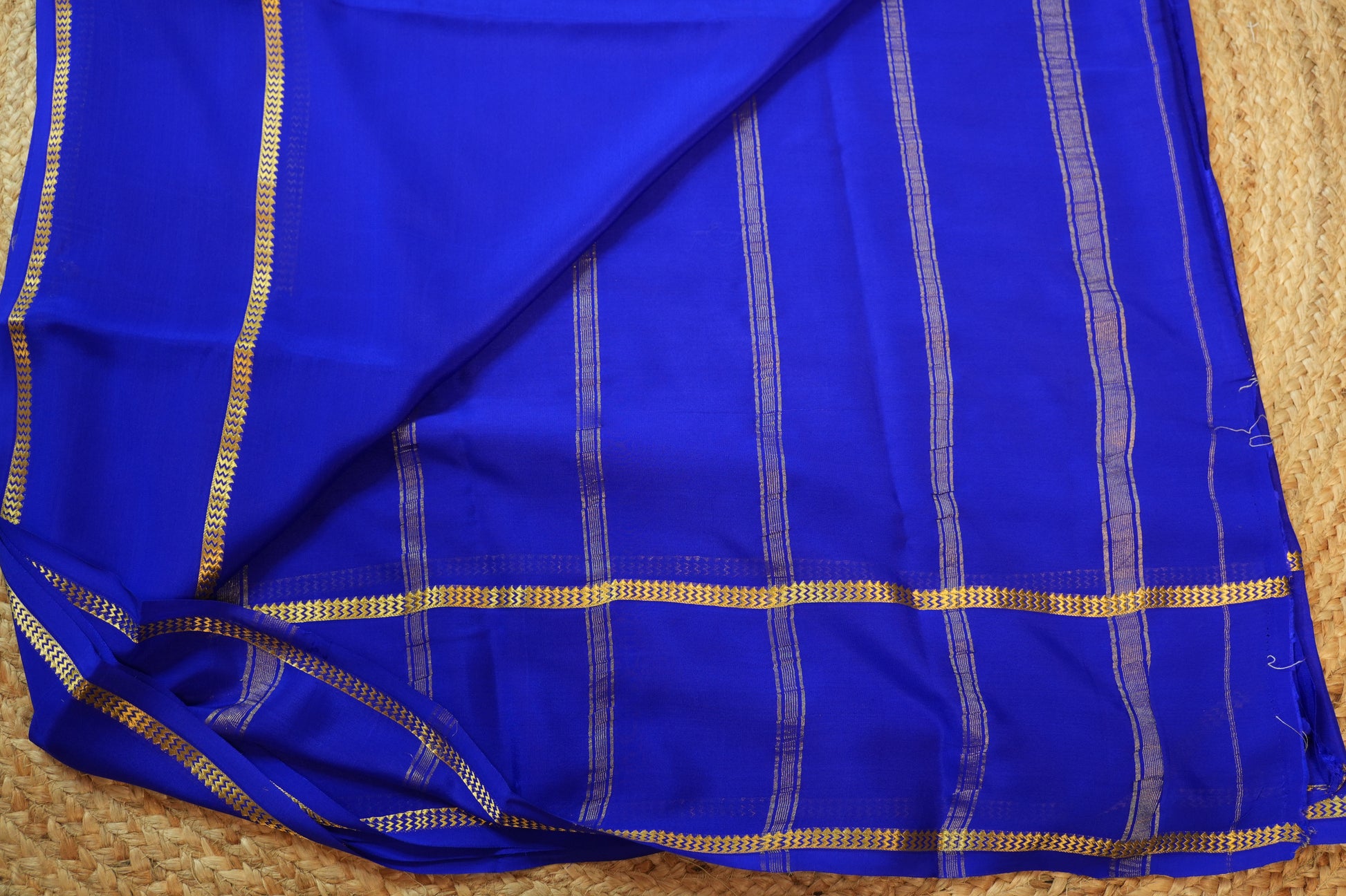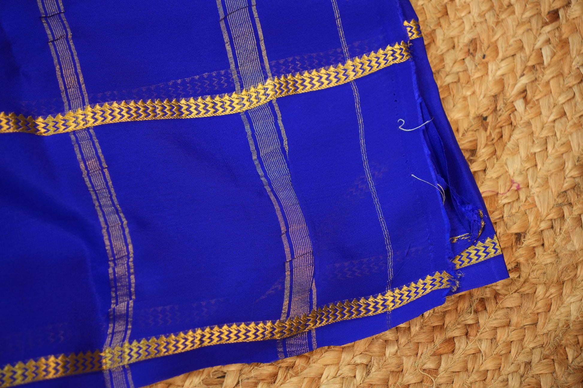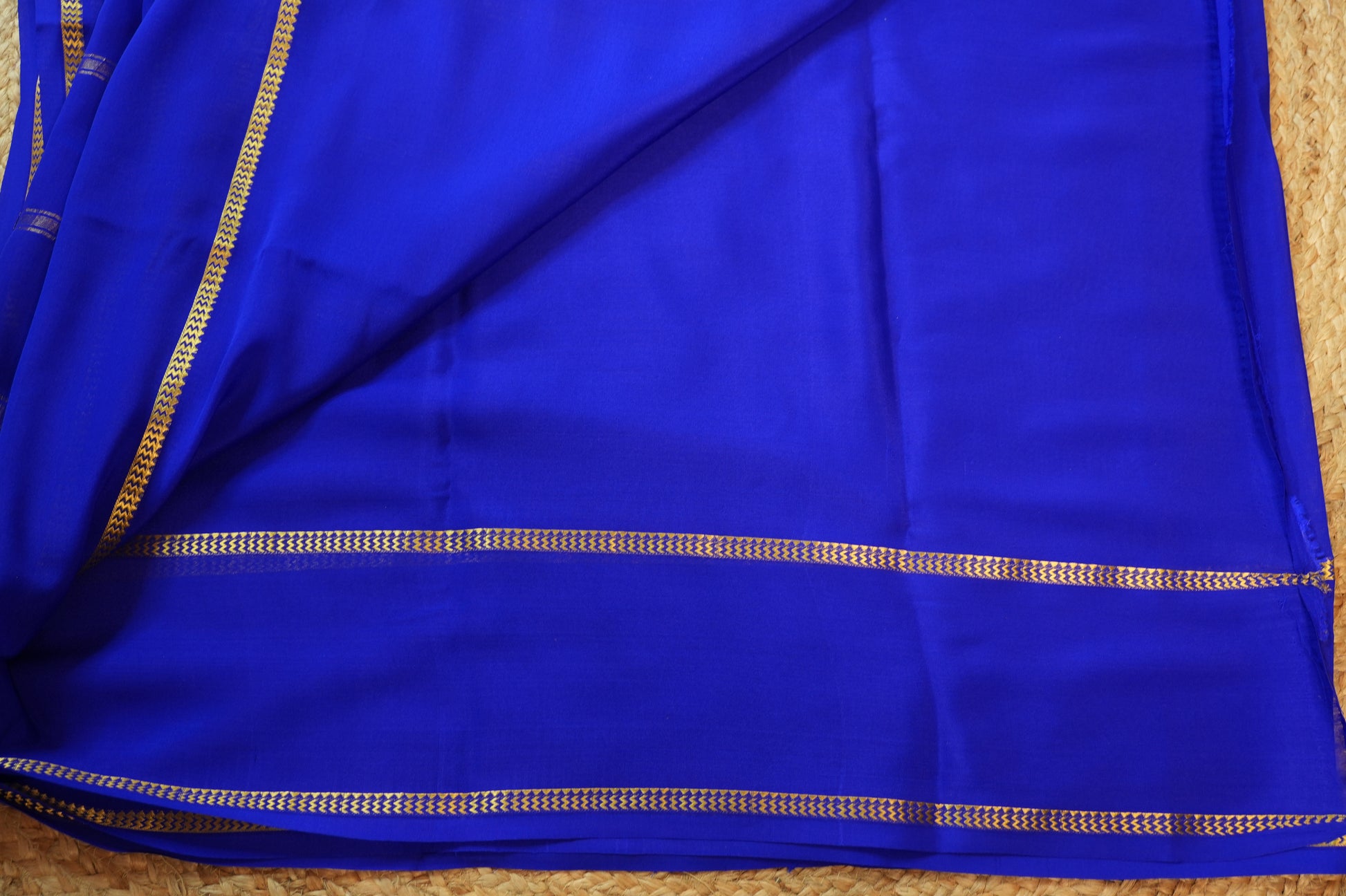 Royal blue Pure Mysore silk crepe with bentex border 80 gsm