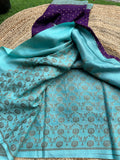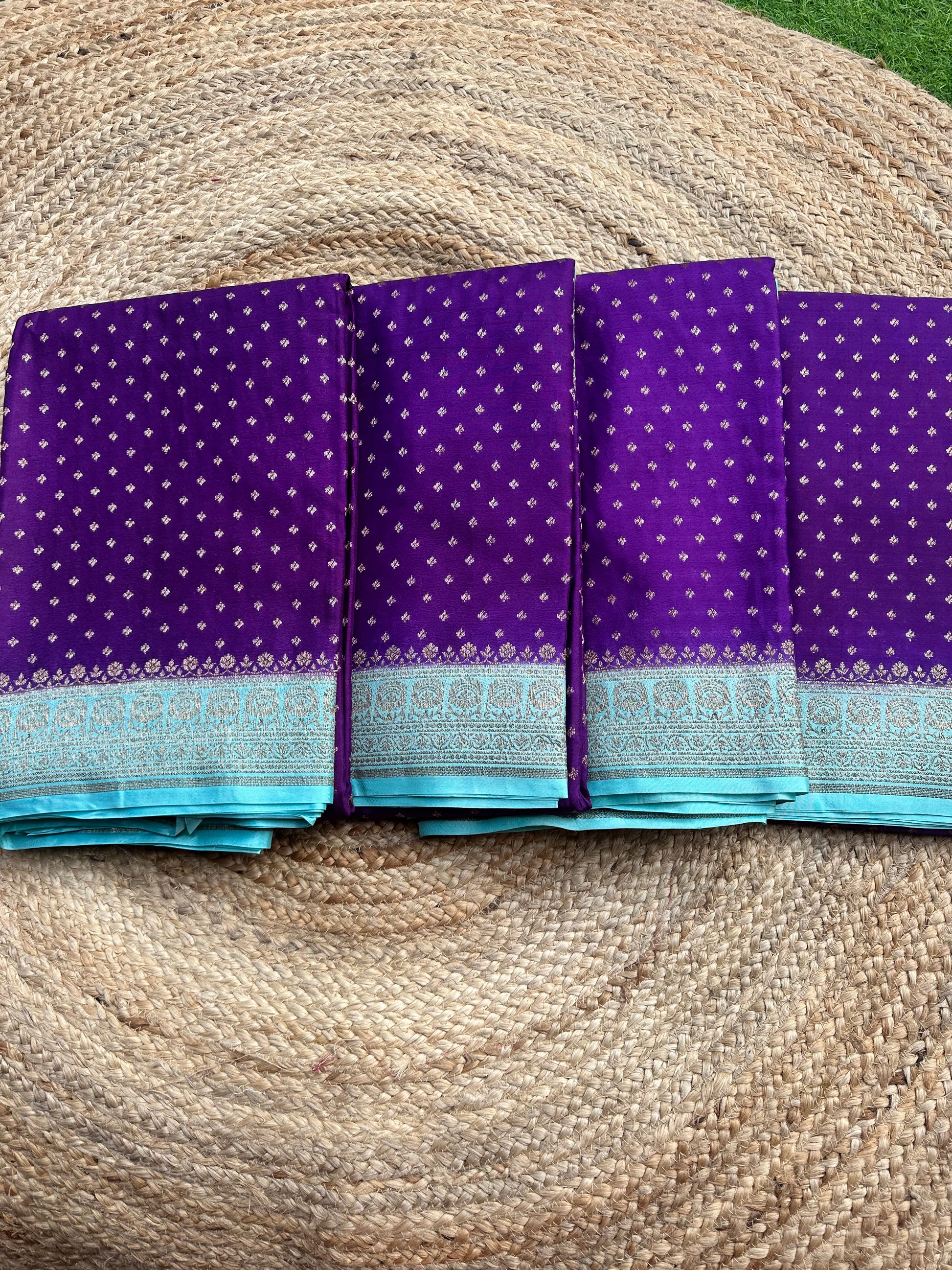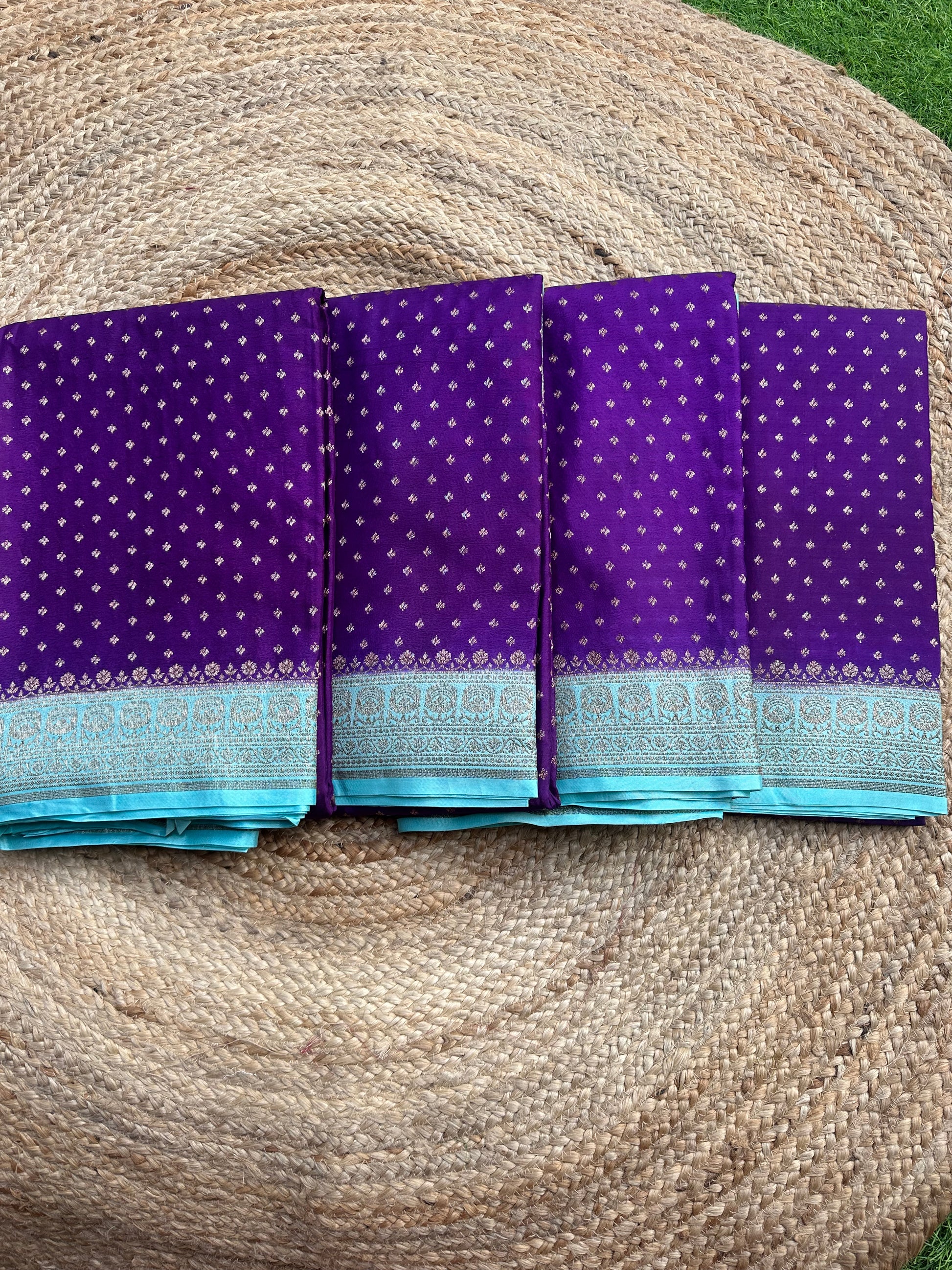 Purple and sea blue Pure crepe chiffon sarees with brocade blouse