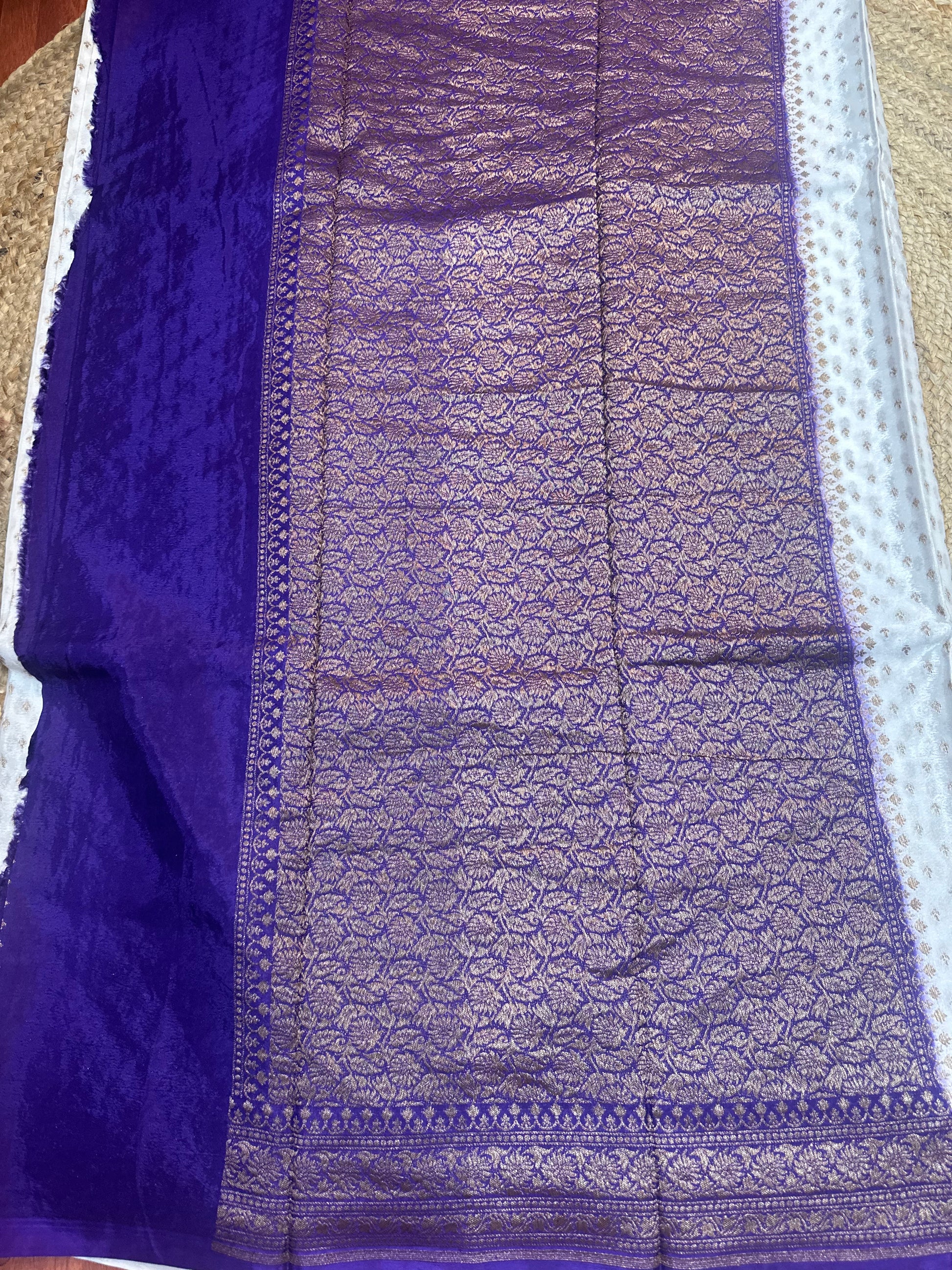 Purple and white crepe chiffon sarees
