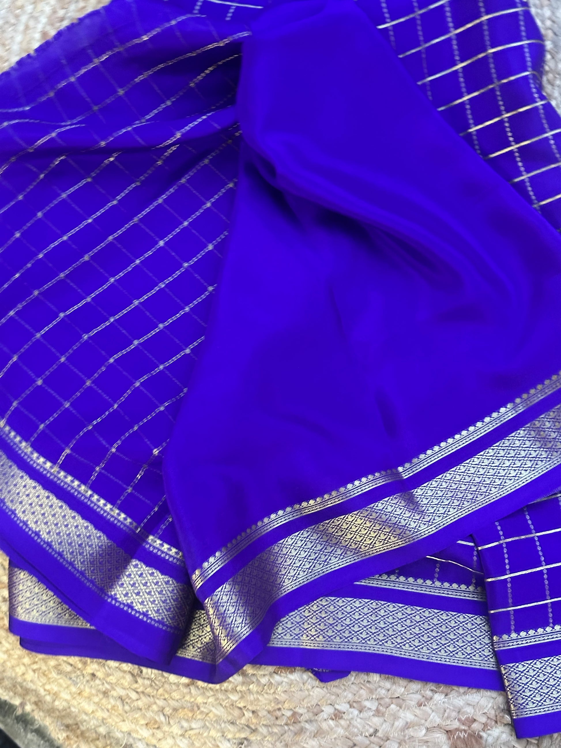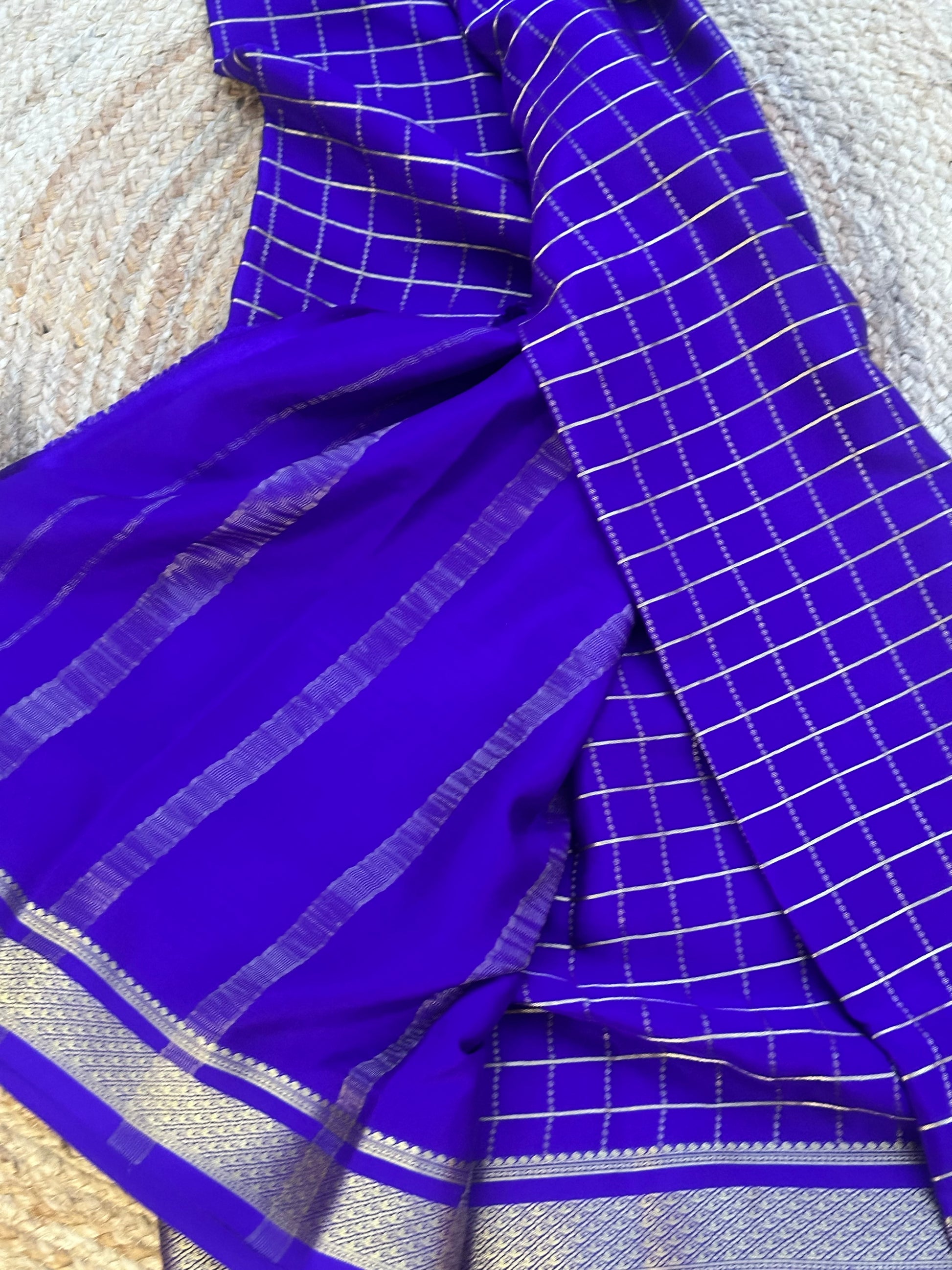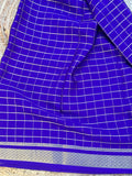 Purple checks pure crepe Mysore Silk sarees 120 gsm