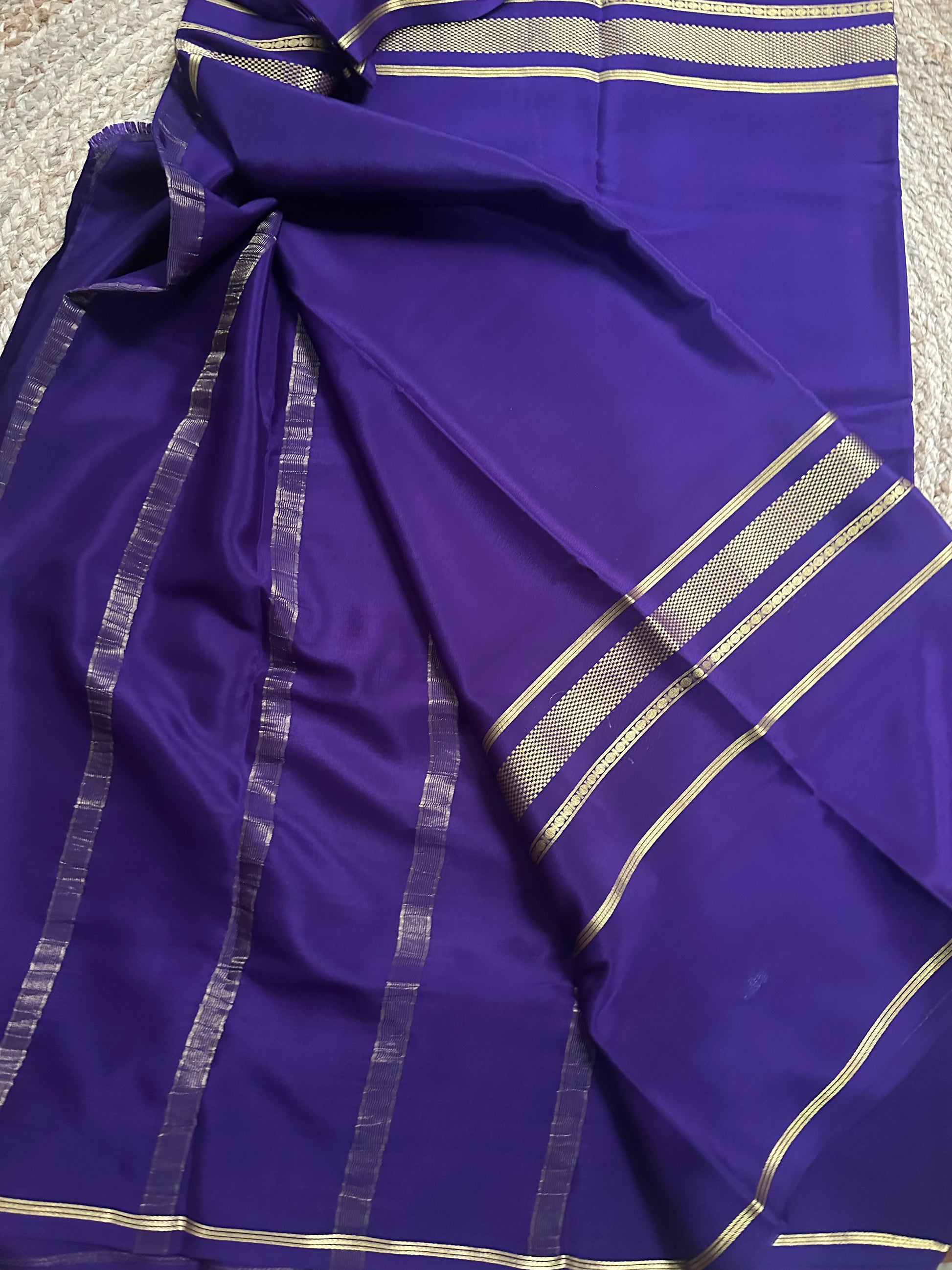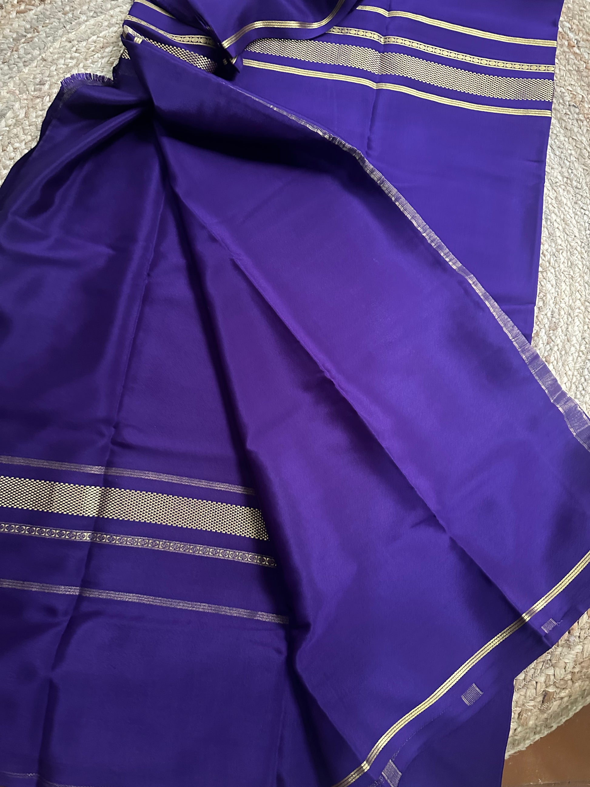 Purple pure crepe Mysore Silk sarees. 100 gsm.