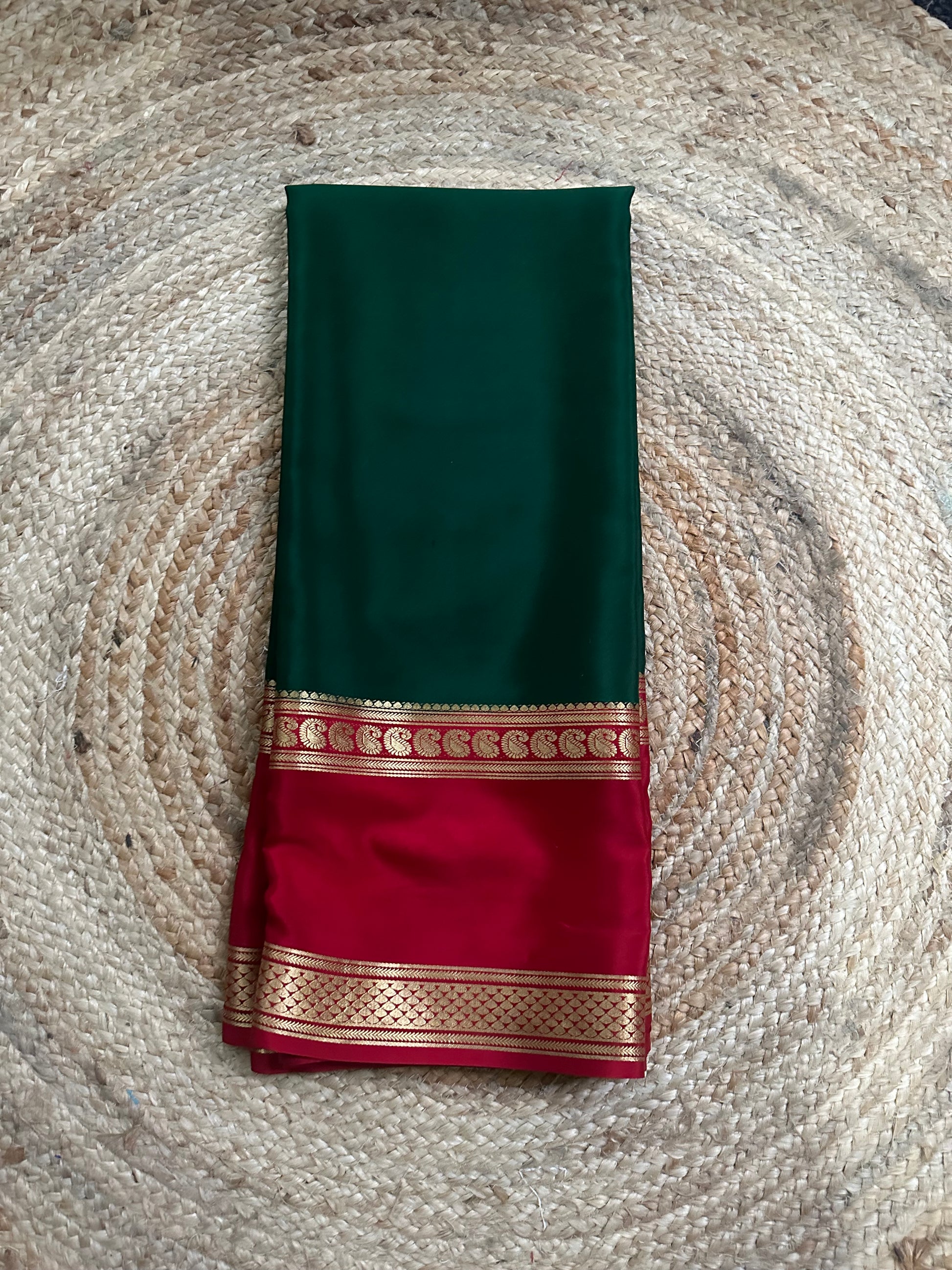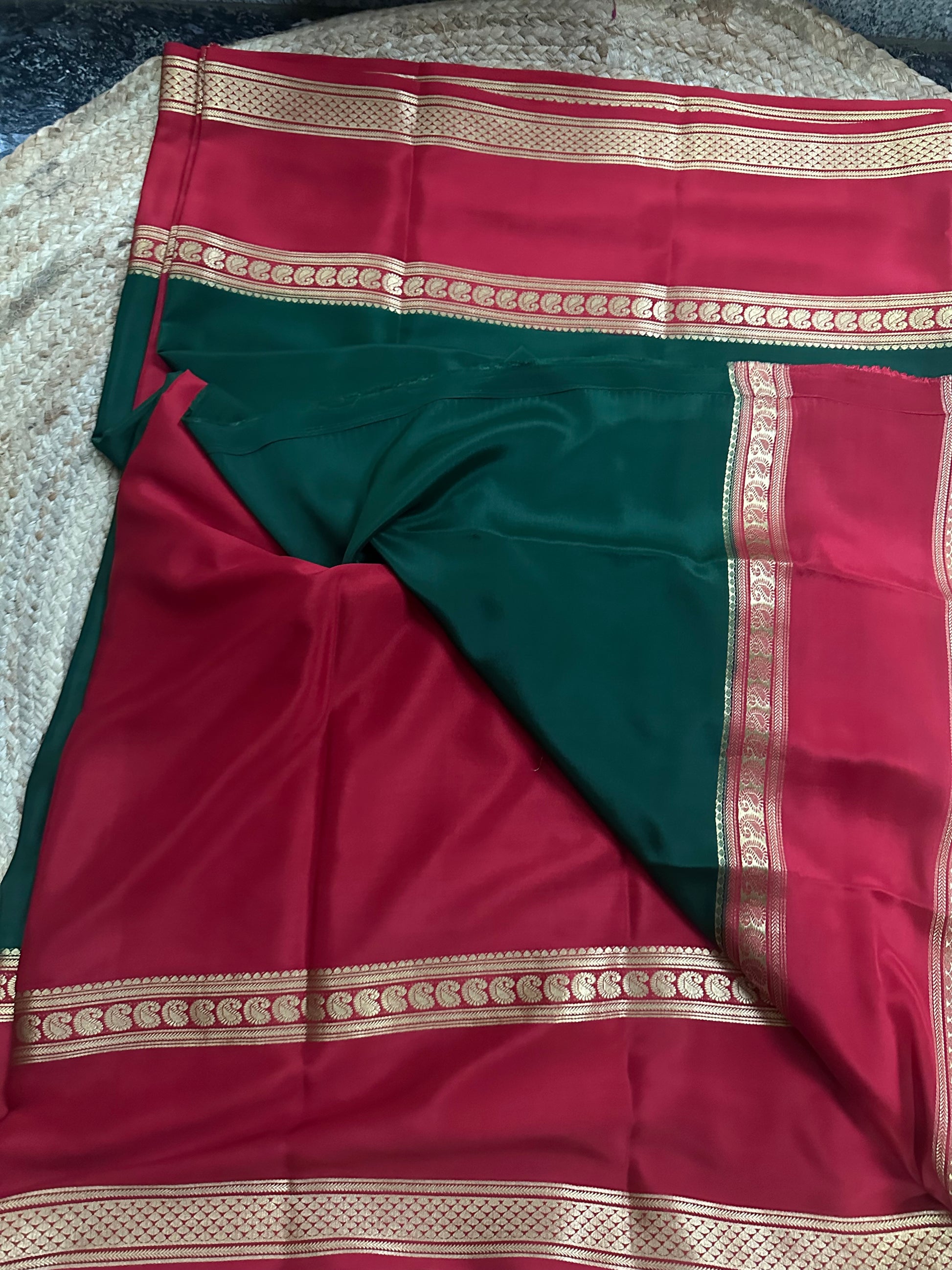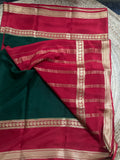 Red and green pure crepe Mysore Silk sarees 120gsm