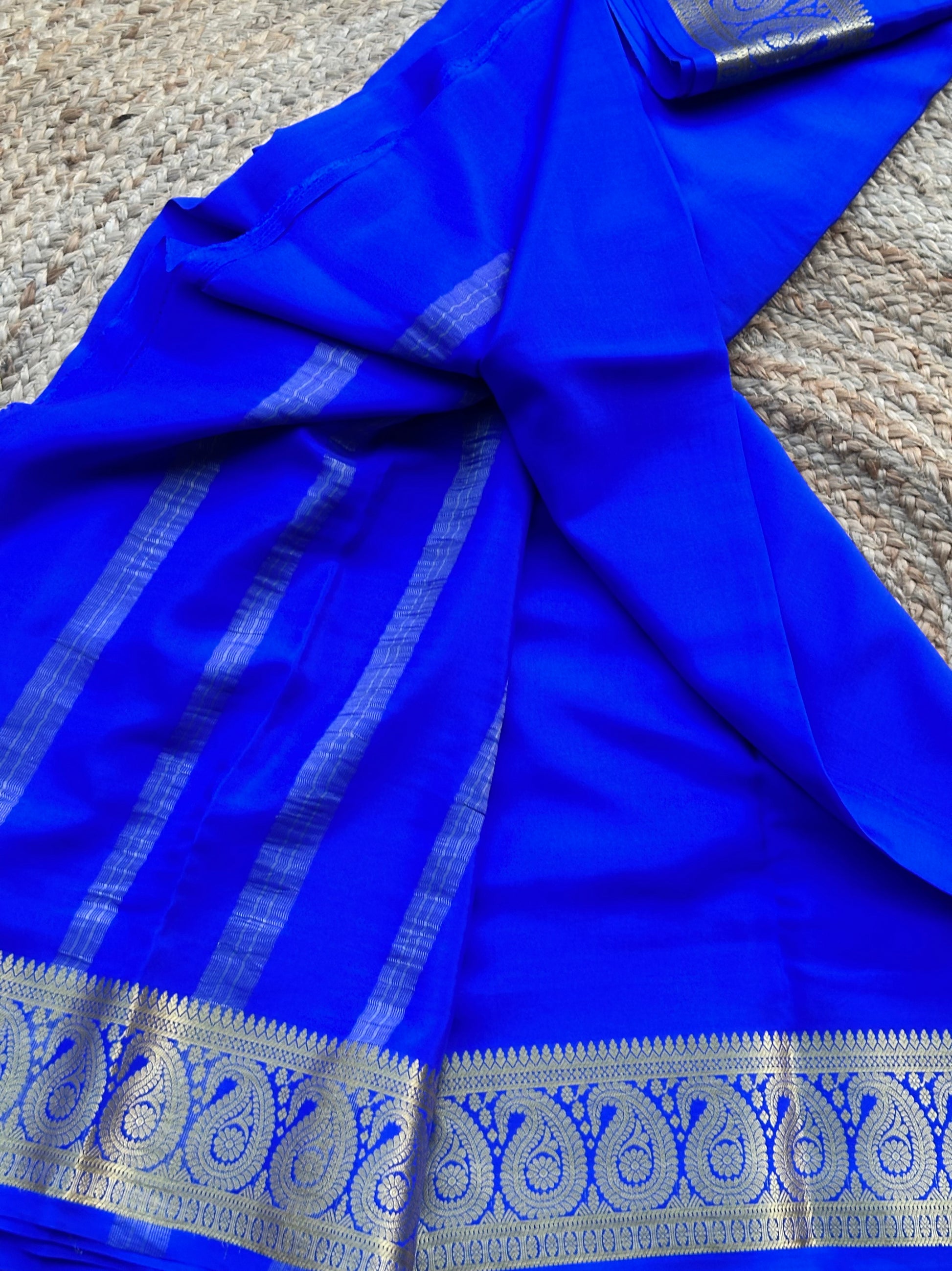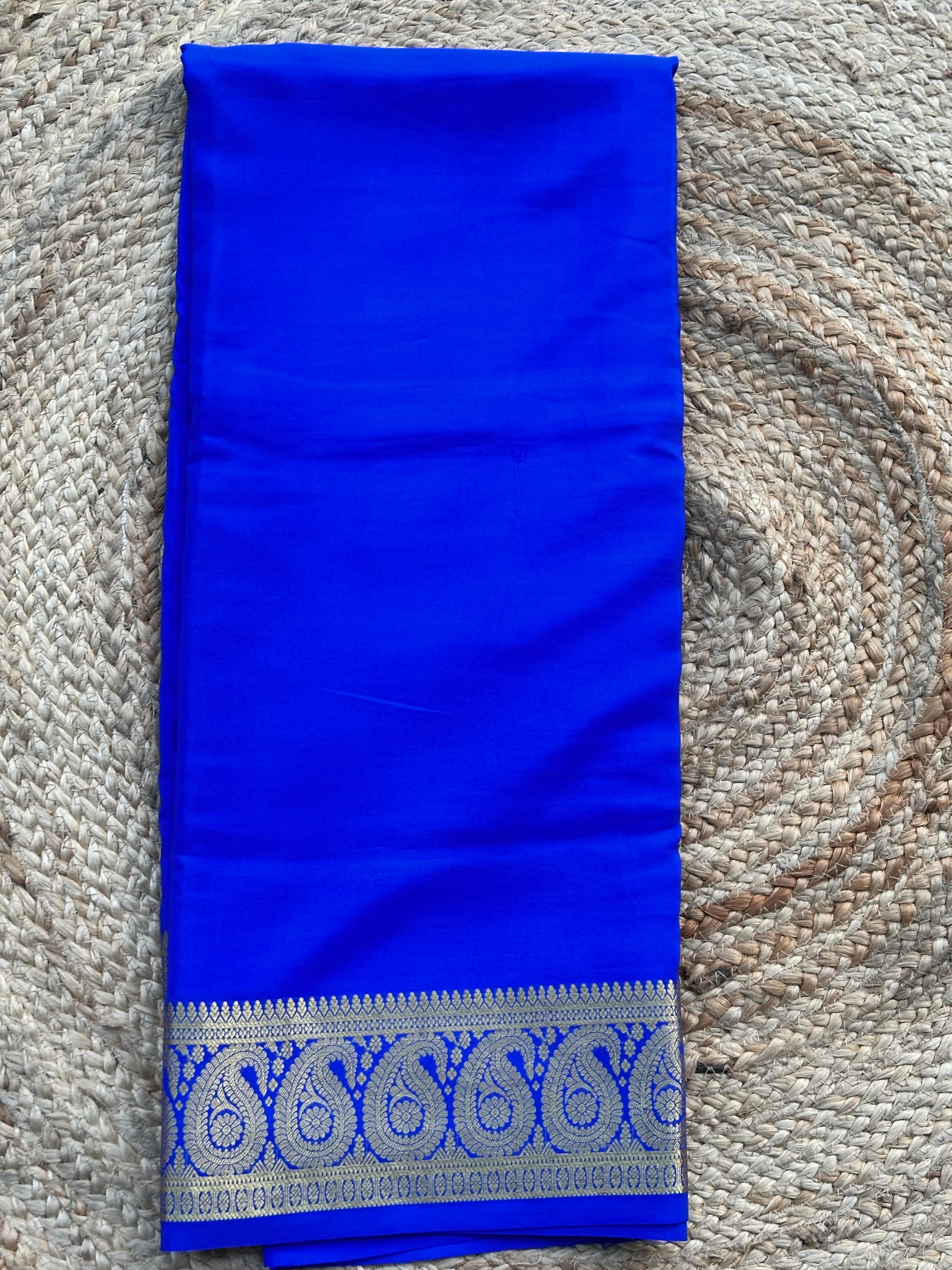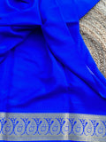 Royal blue Mango border pure crepe Mysore Silk 120 gsm