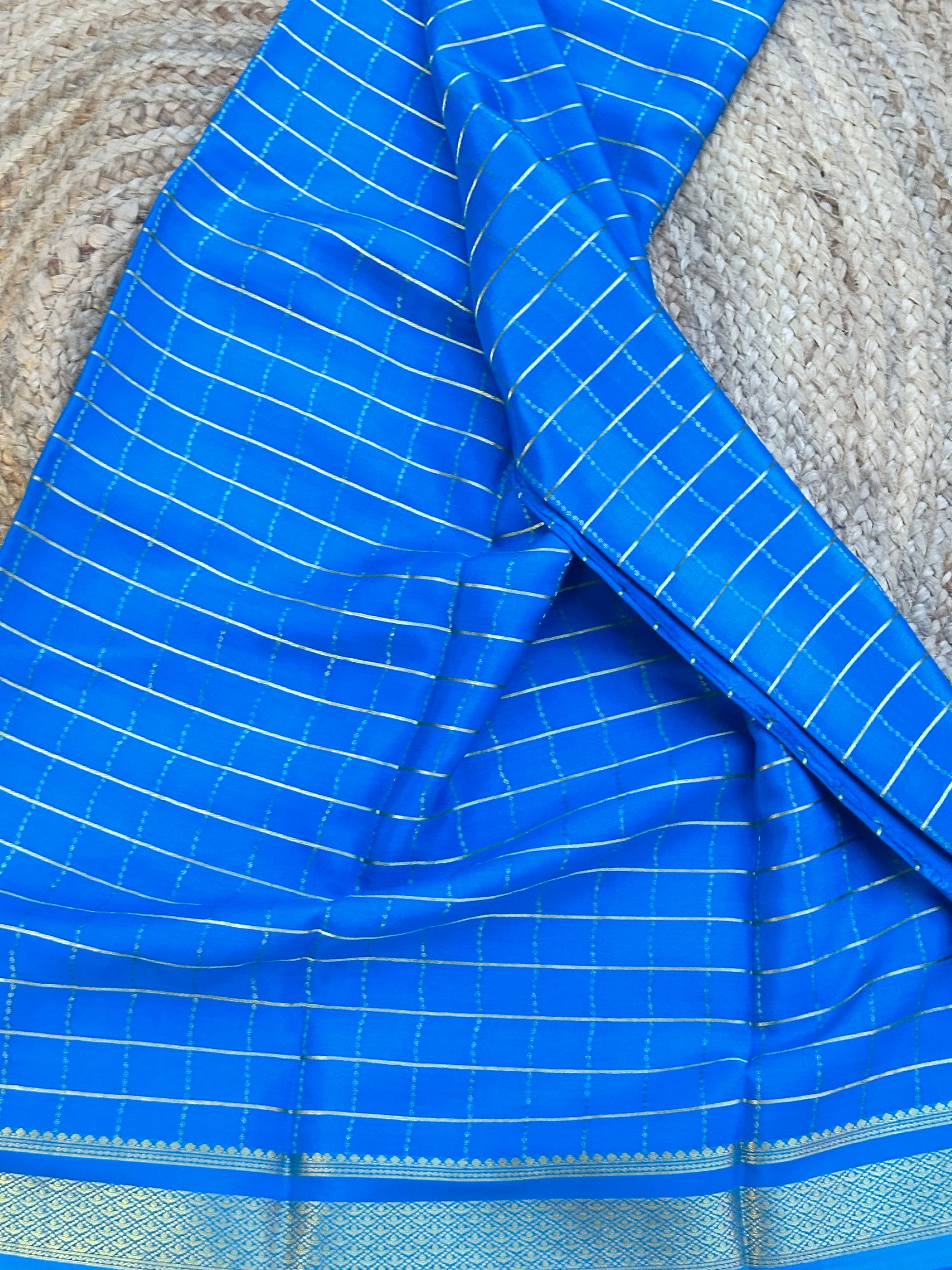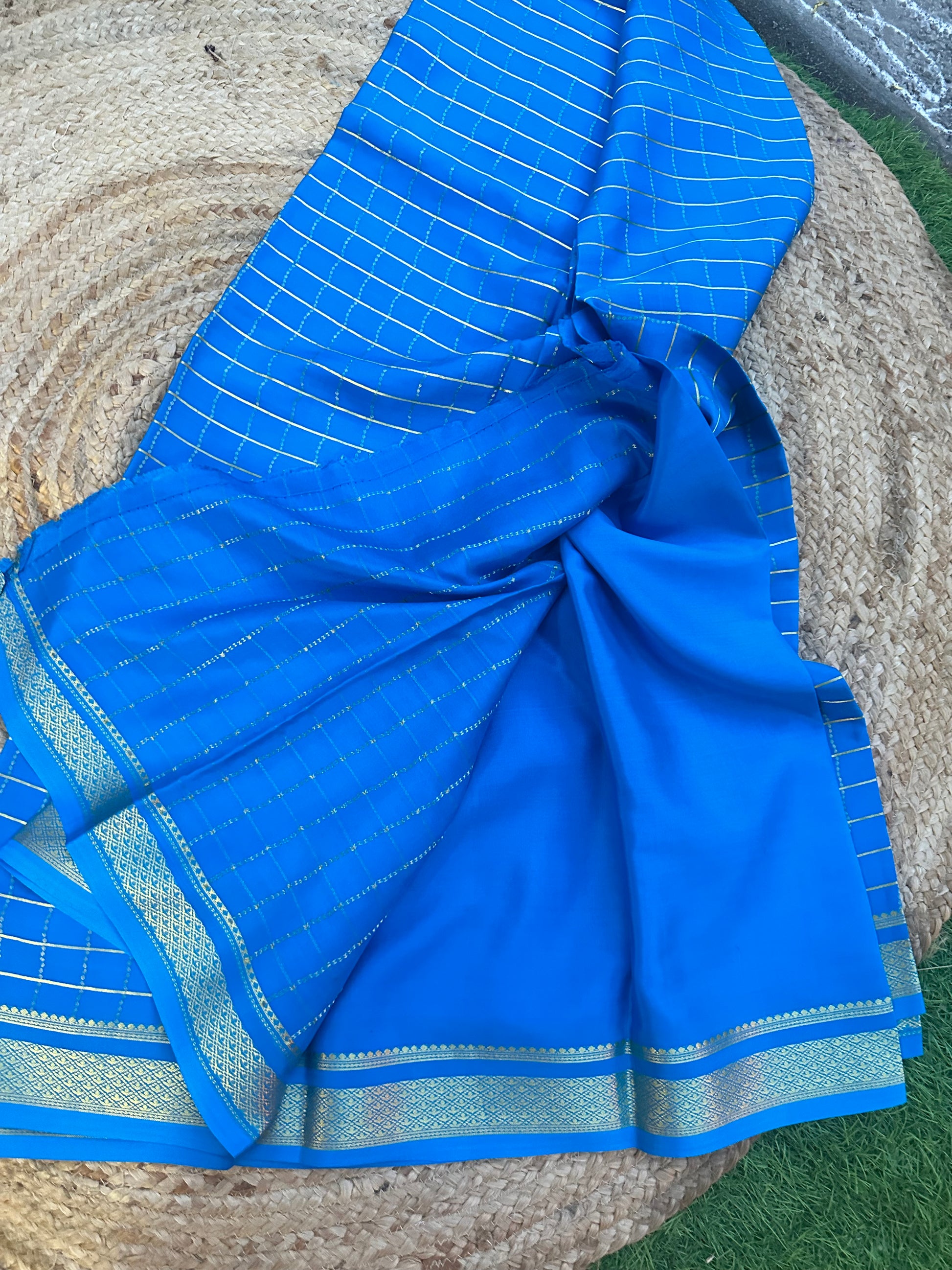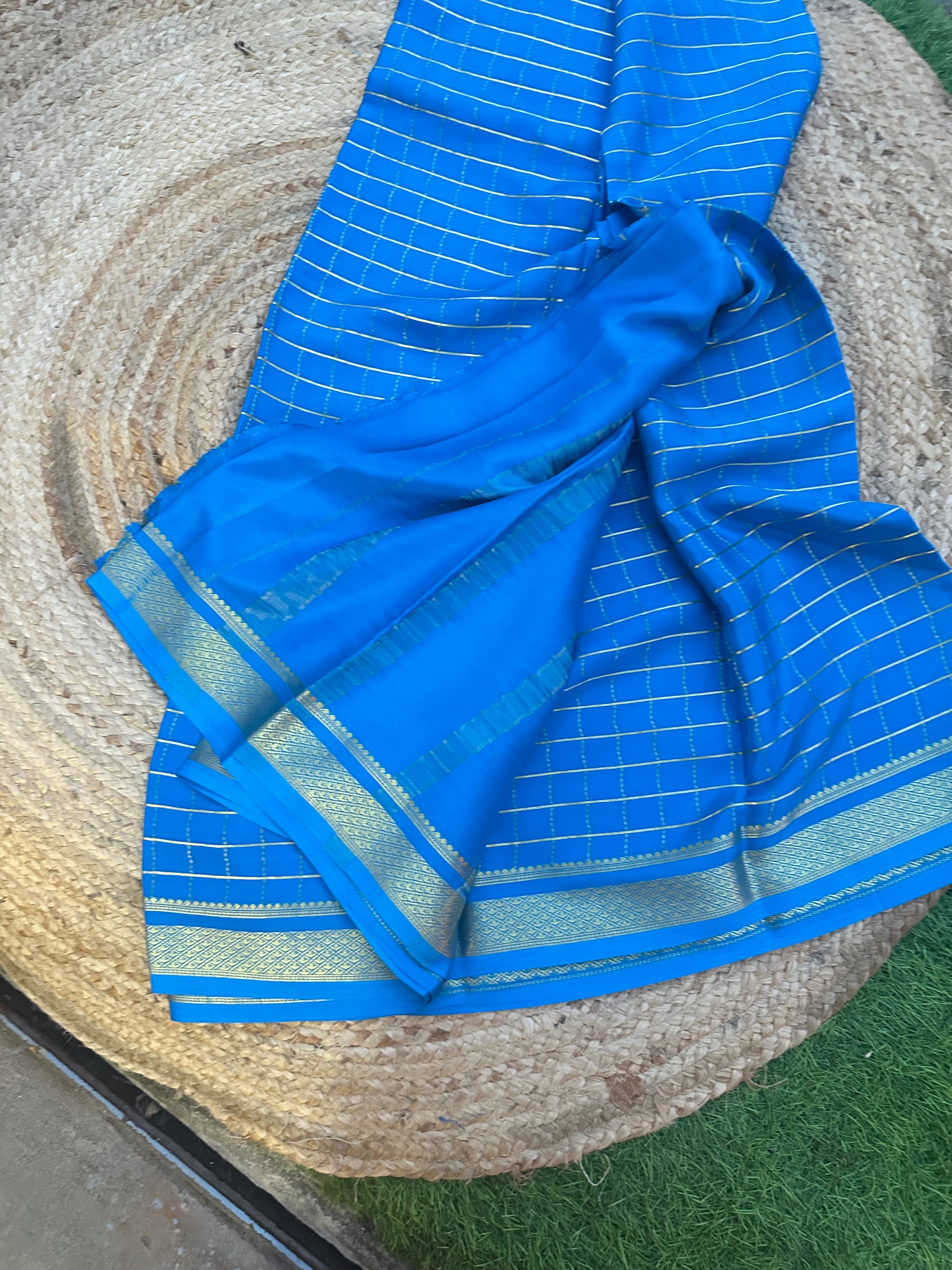 Sky blue checks pattern pure crepe Mysore Silk sarees