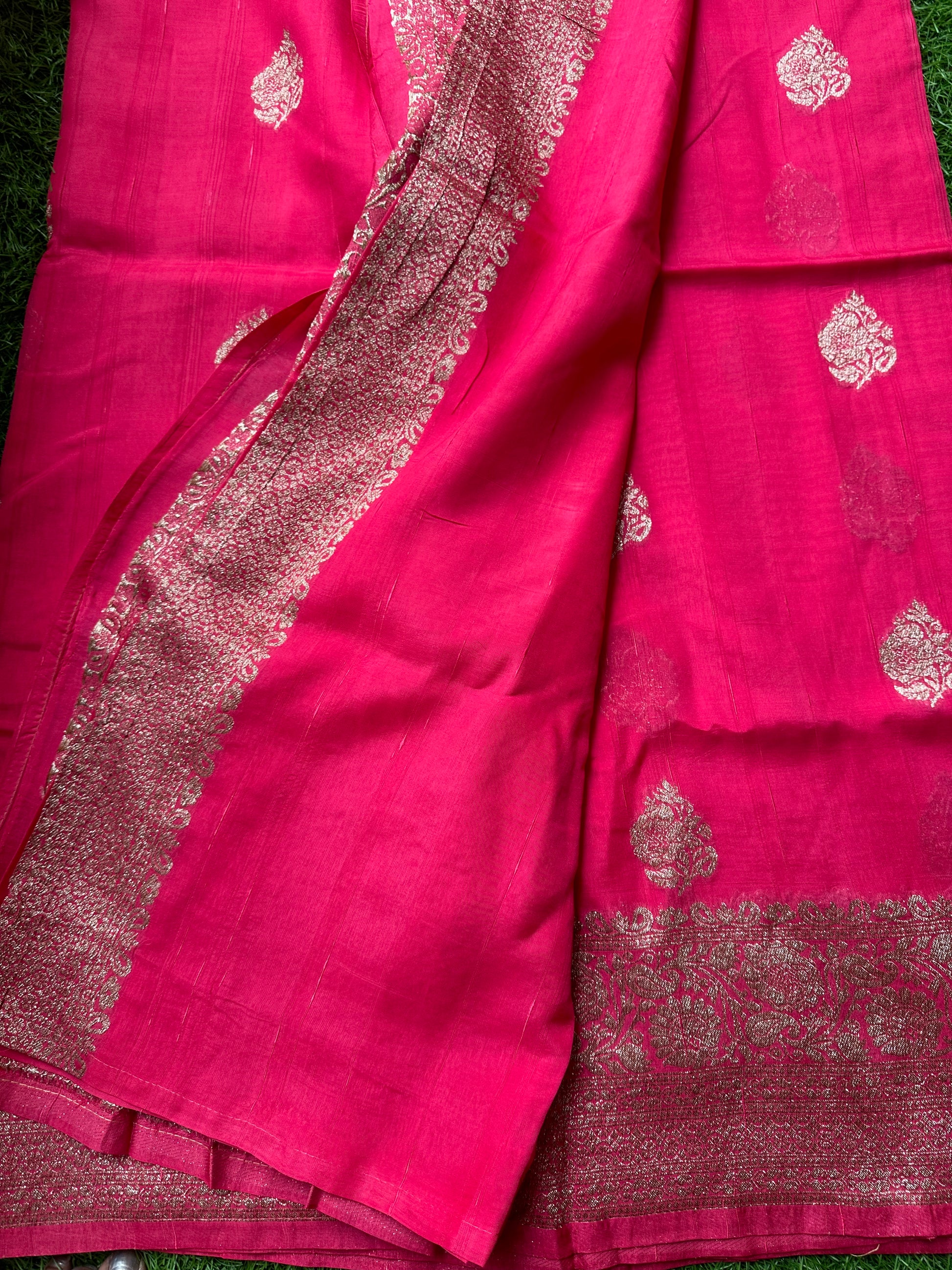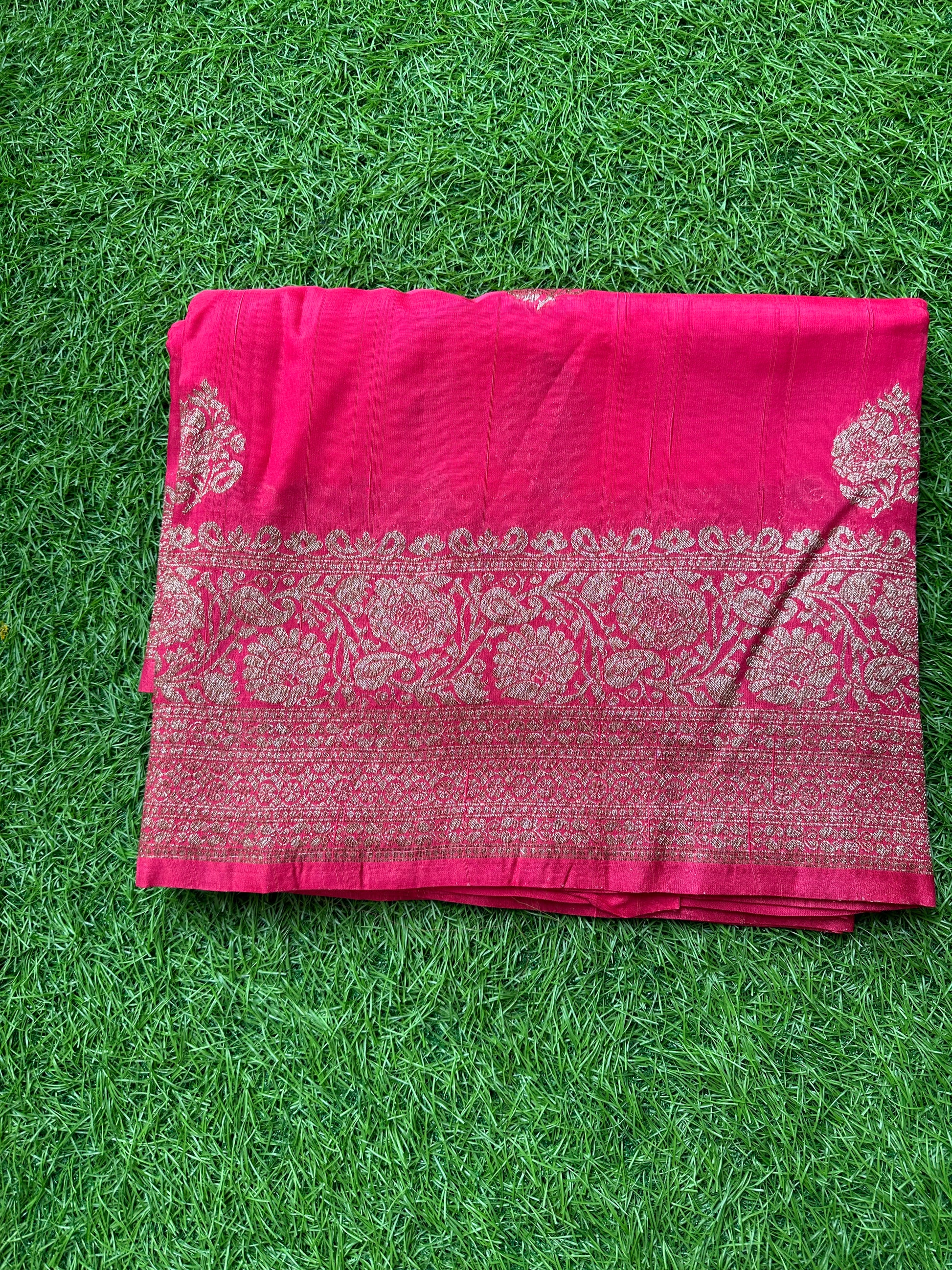 Strawberry pink semi raw silk Banarasi silk.