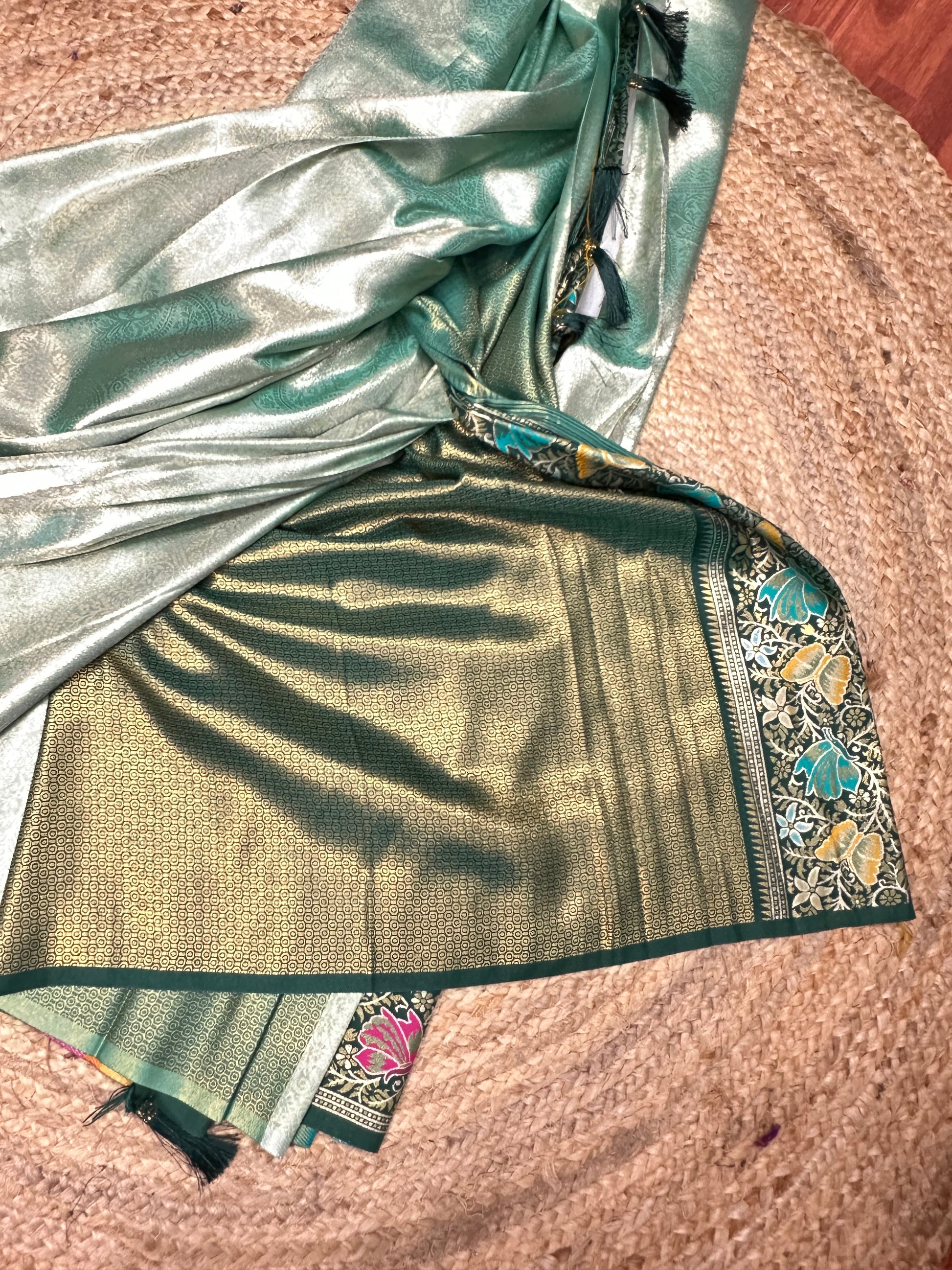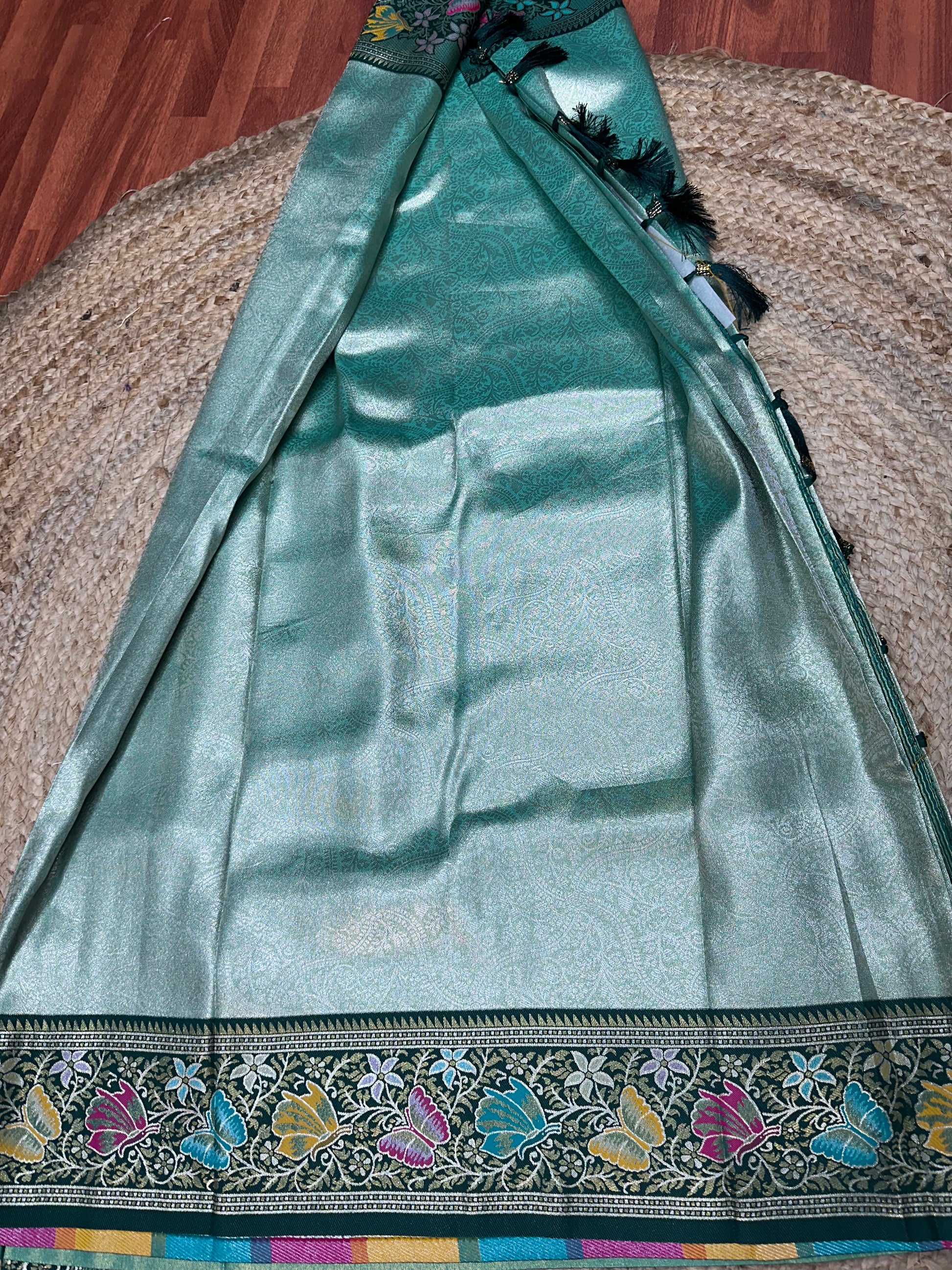 Tissue Paithani sarees for lehenga pastel green