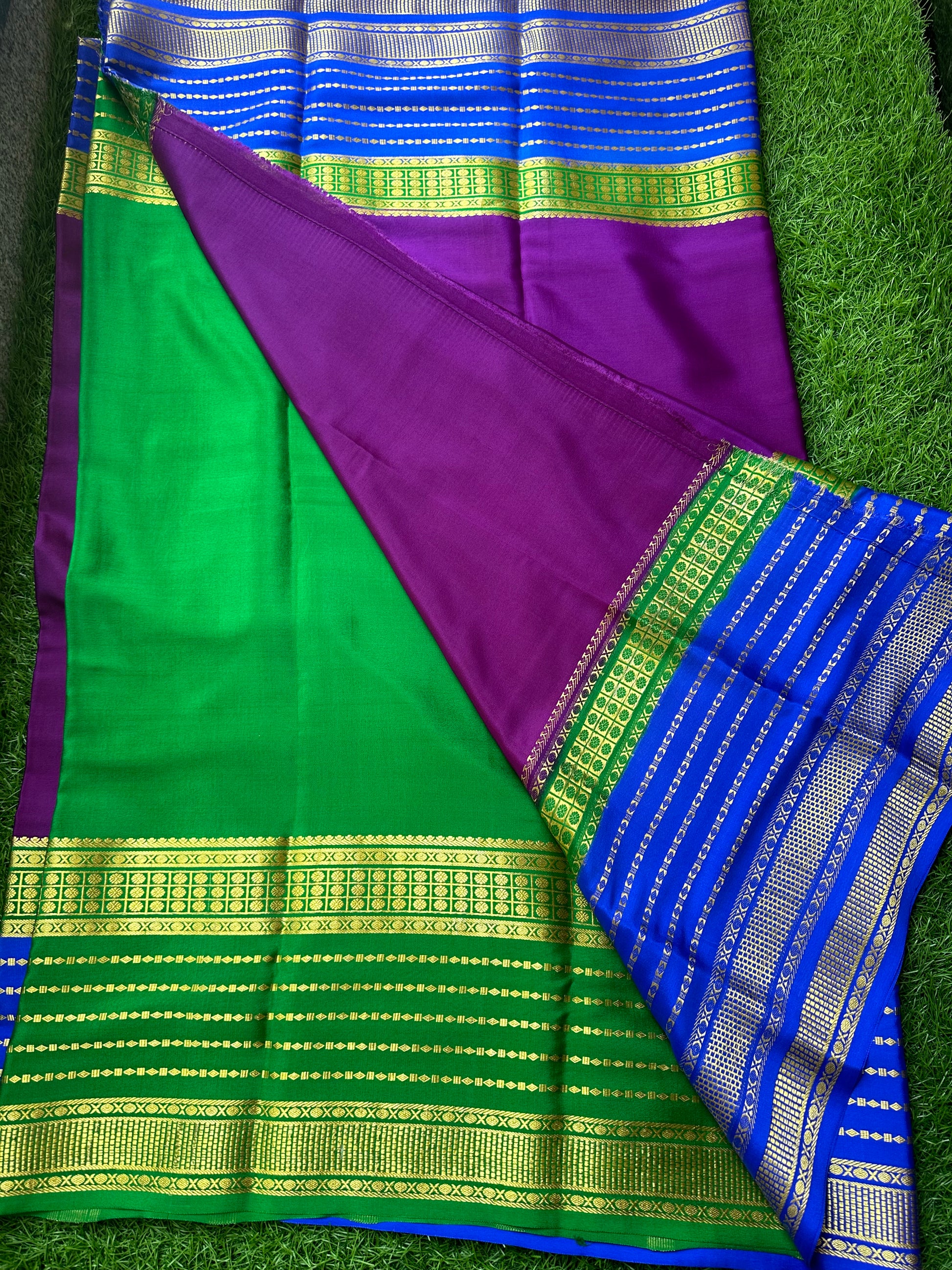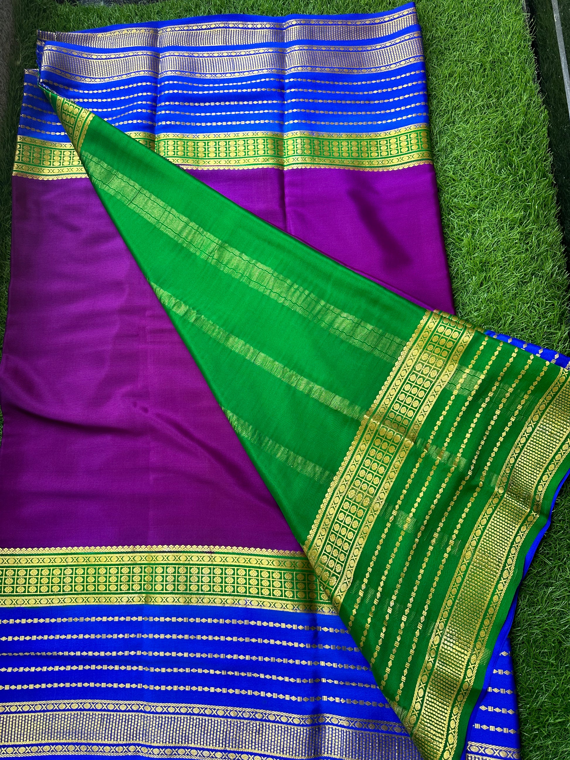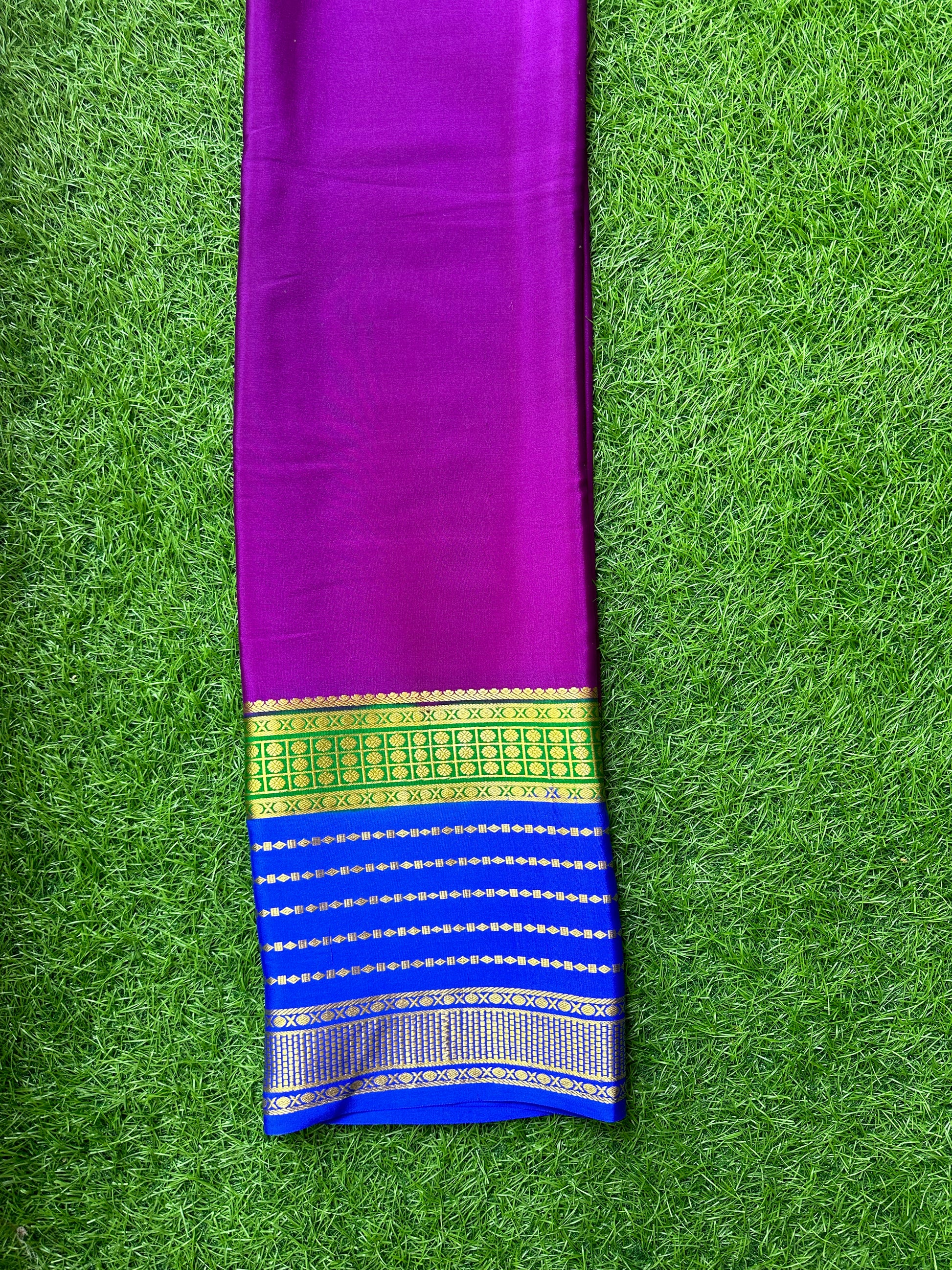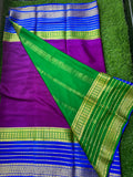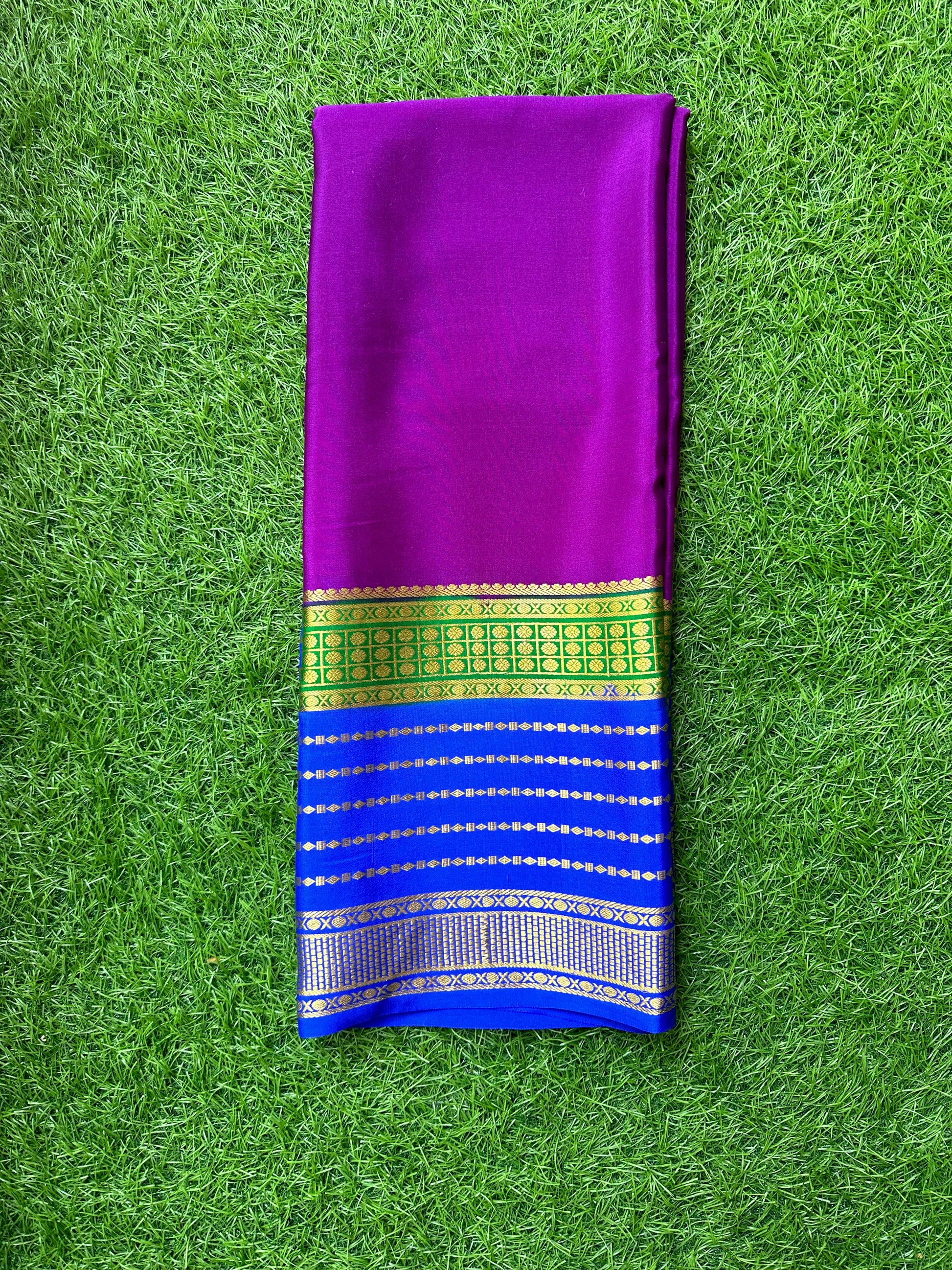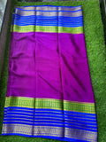 Wine green and blue pure crepe Mysore Silk sarees.