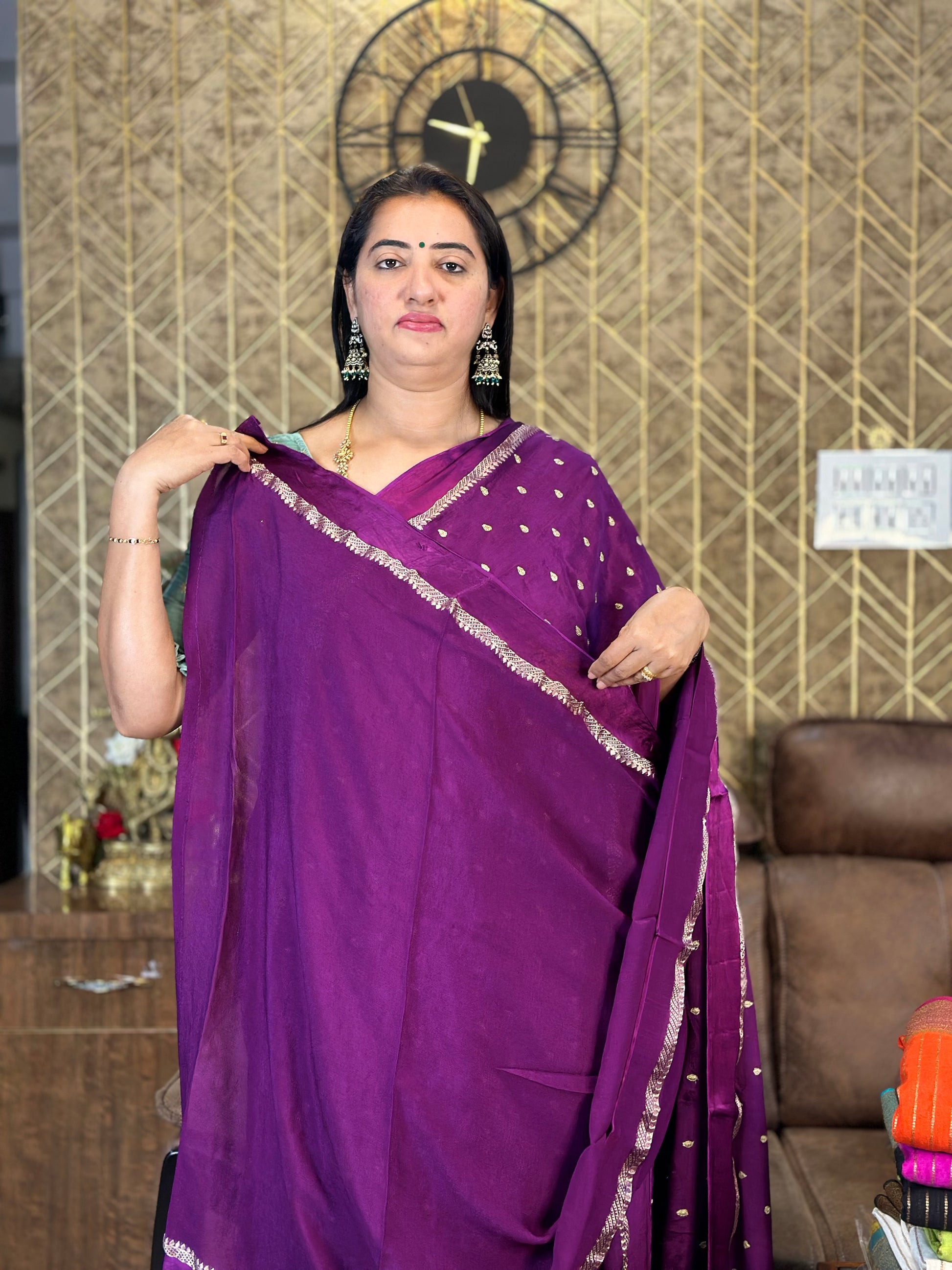 Wine pure chinnon crepe sarees.