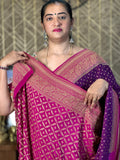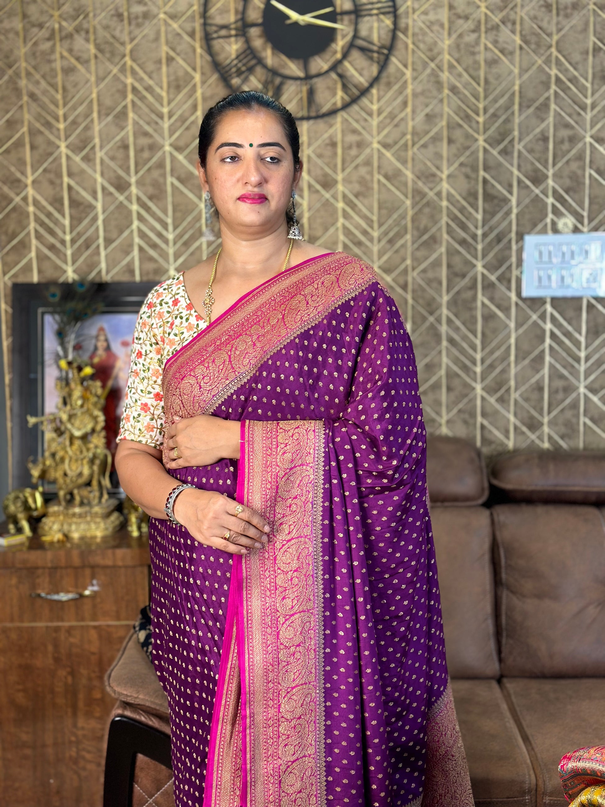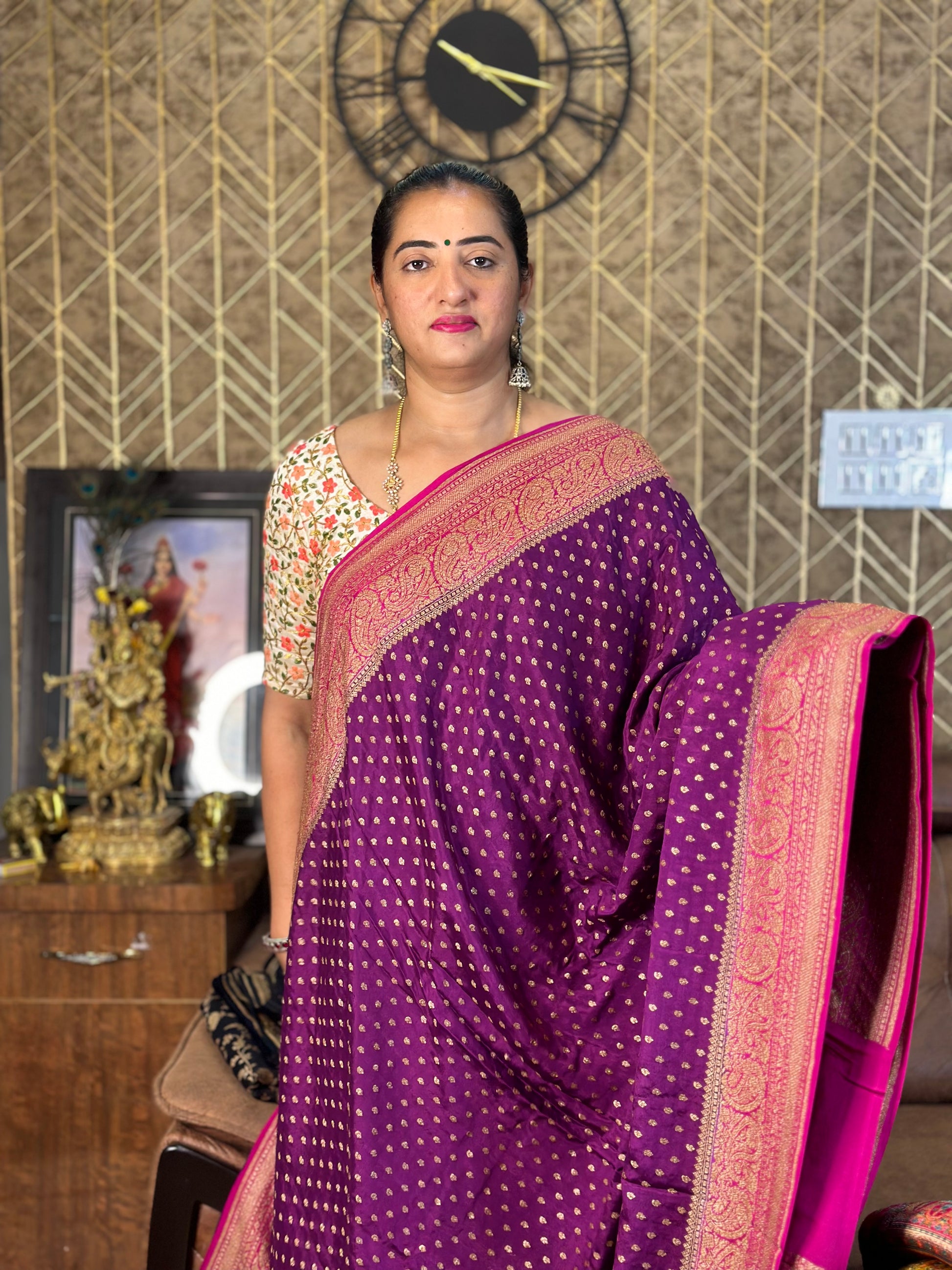 Wine with pink pure crepe Banaras silk handloom saree with brocade blouse
