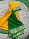 Yellow and green pure crepe Mysore Silk sarees 120 gsm mango border